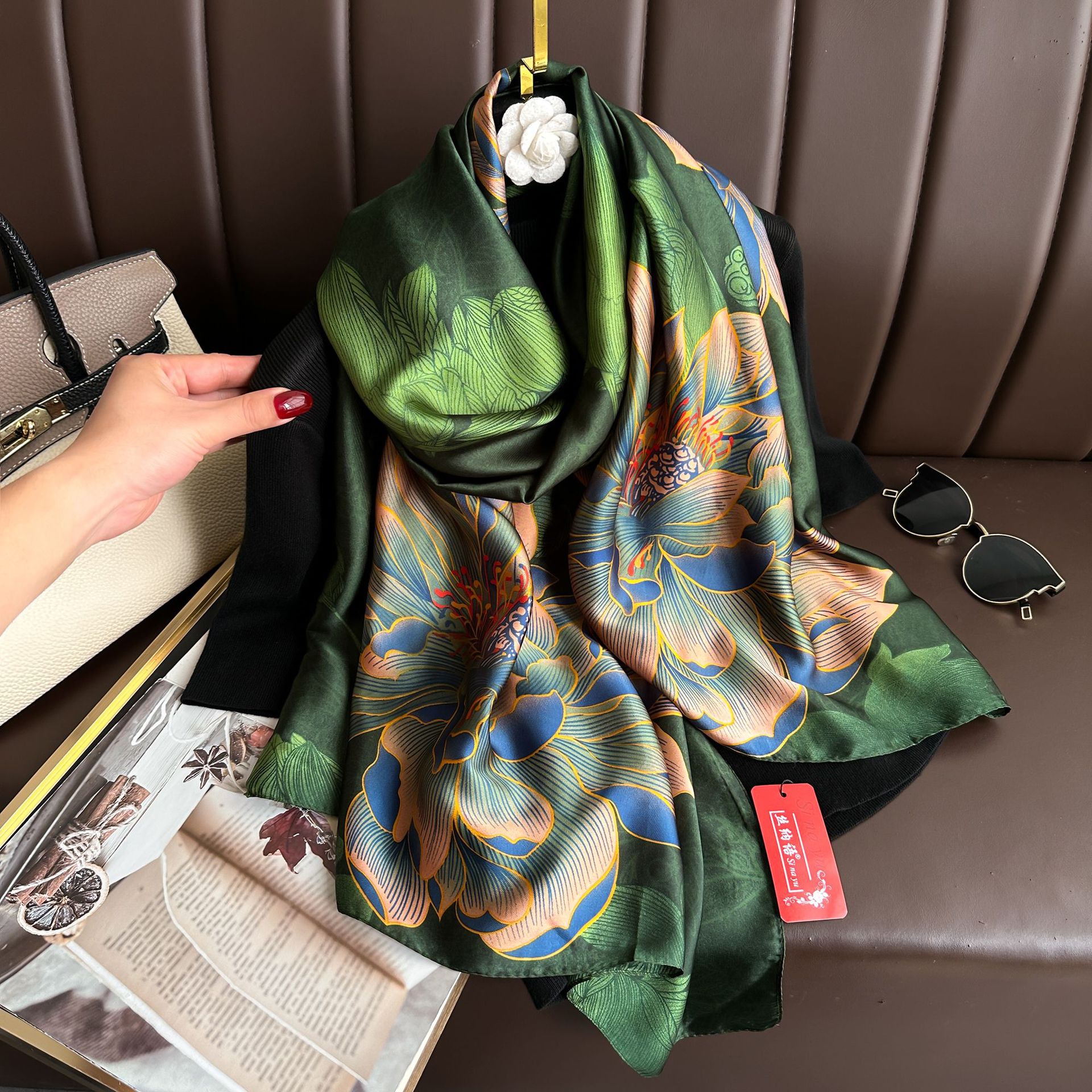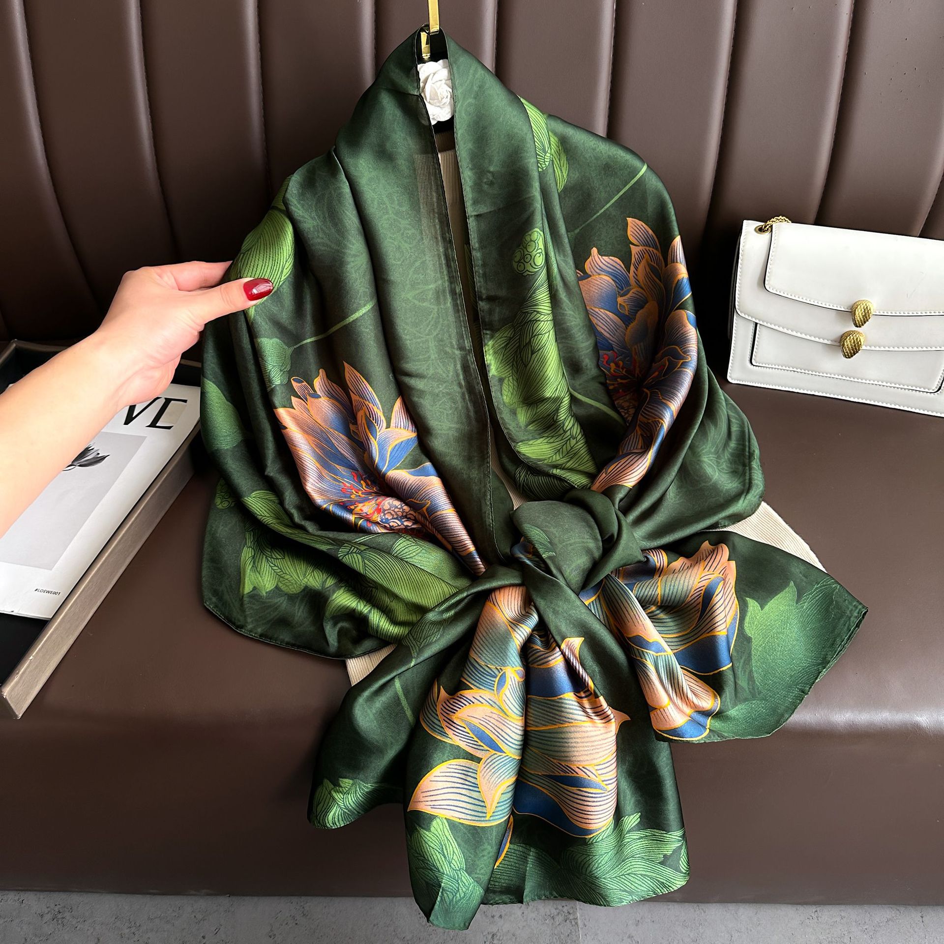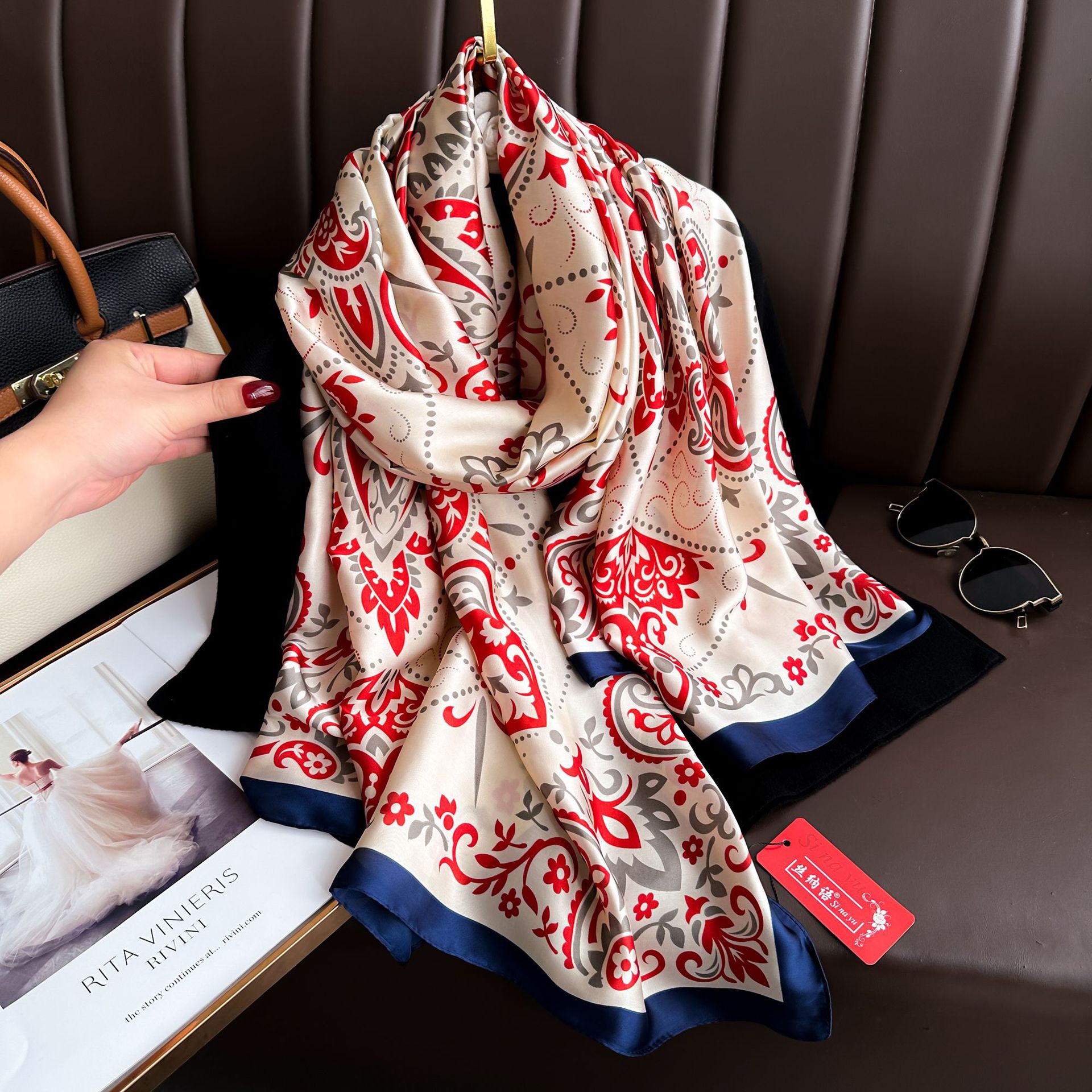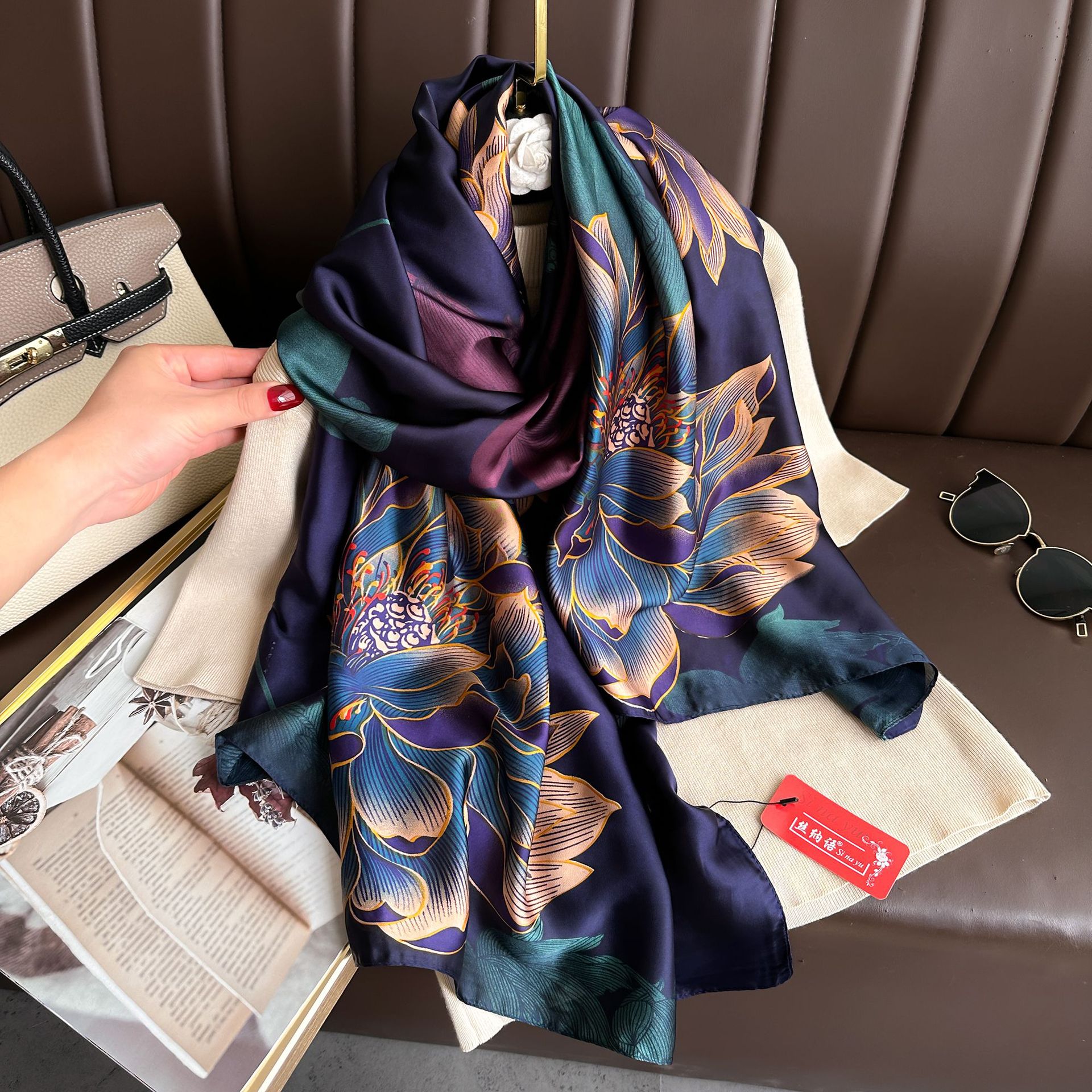 공장 직매 모조 실크 뽕나무 실크 스카프, 인기 인쇄 롱 스카프, 여름용 얇은 자외선 차단 숄스토어 가기