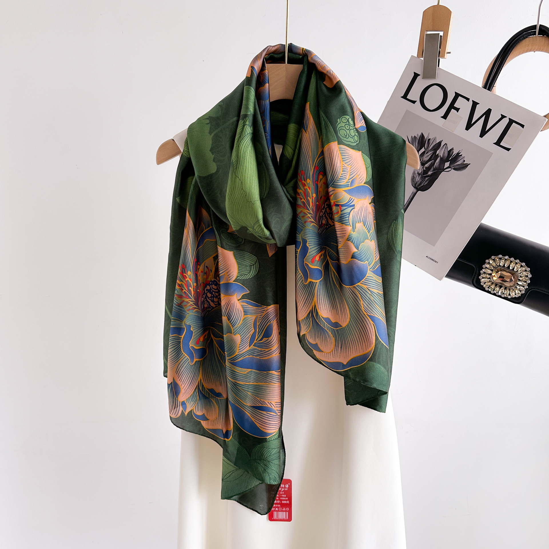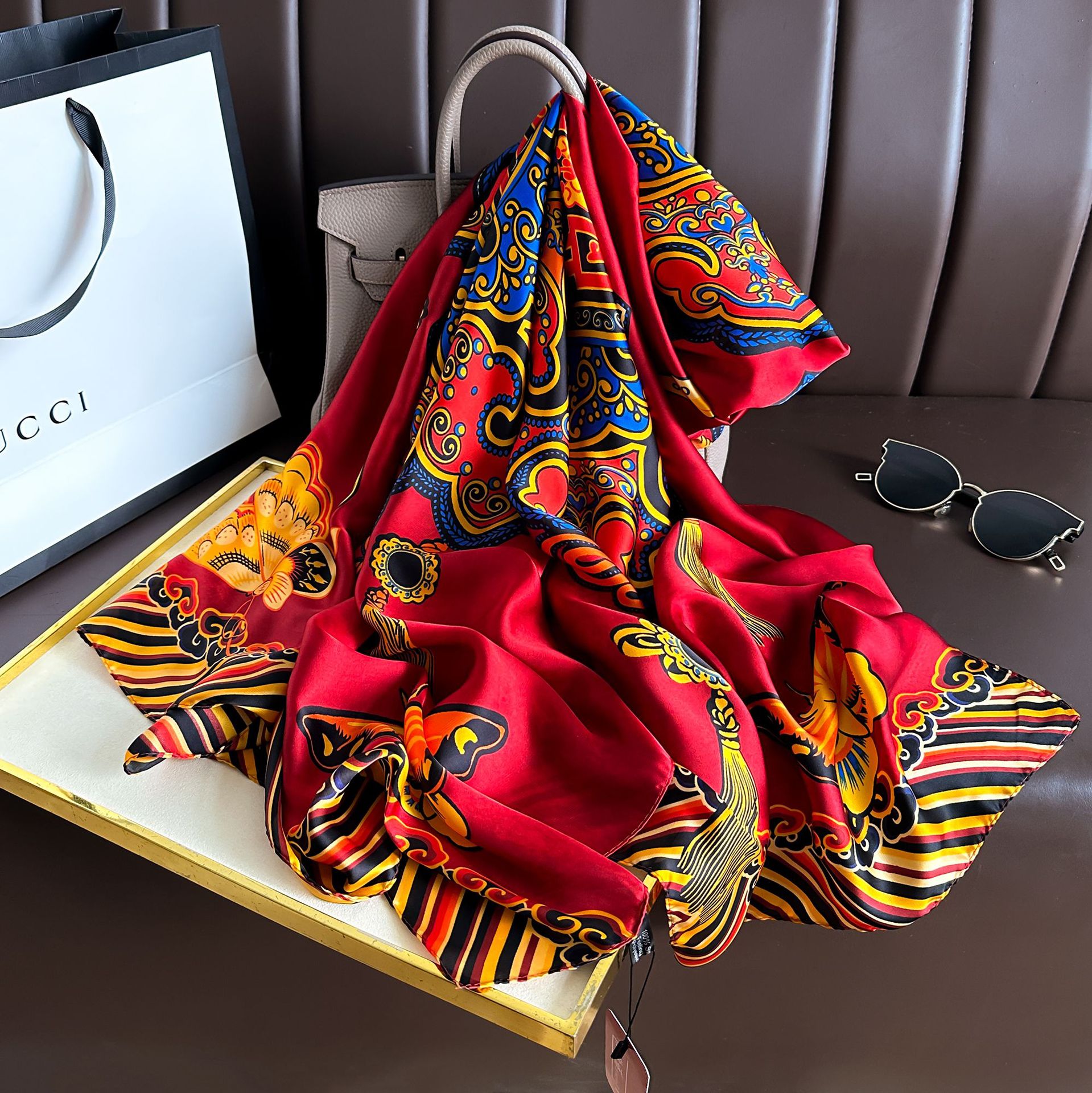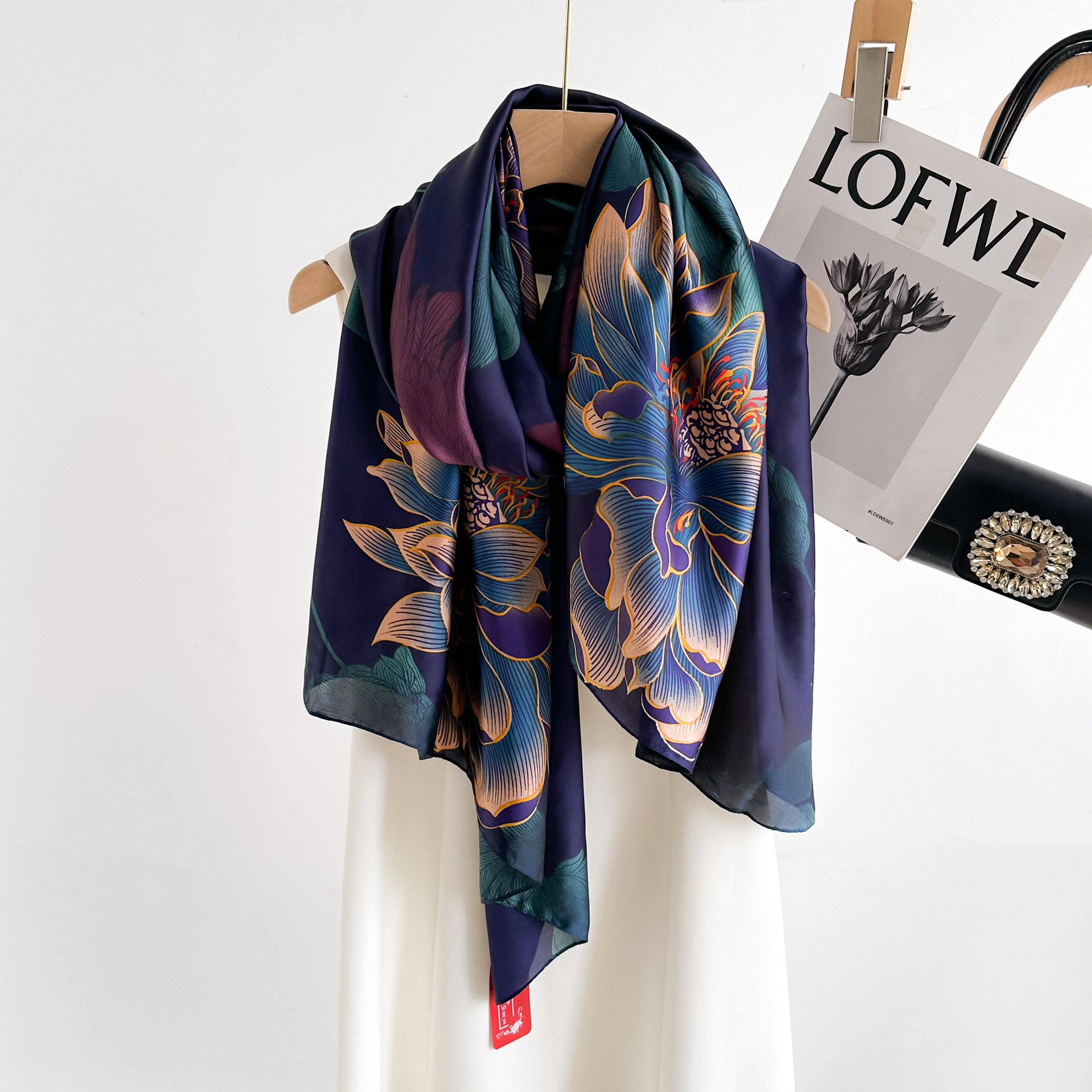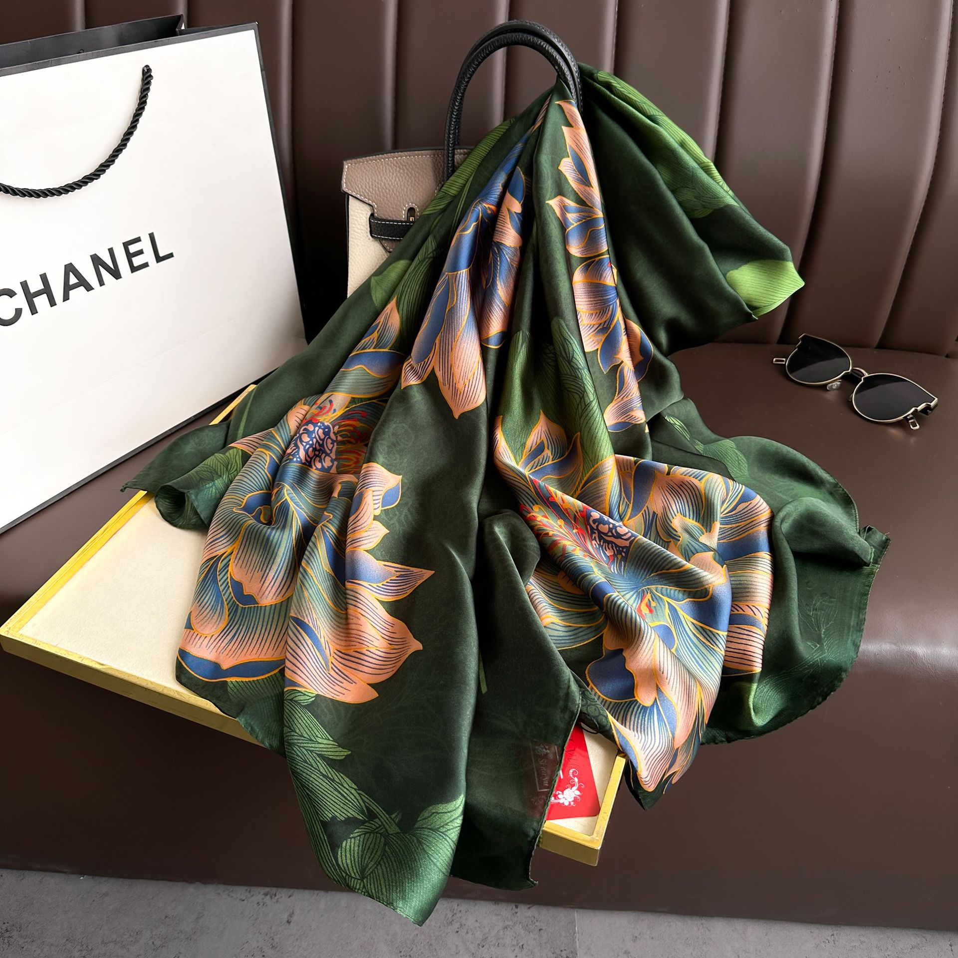 공장 직매 모조 실크 뽕나무 실크 스카프, 인기 인쇄 롱 스카프, 여름용 얇은 자외선 차단 숄스토어 가기