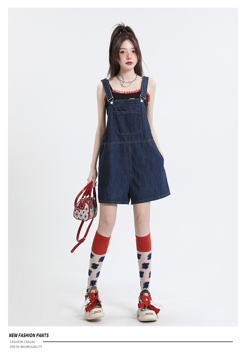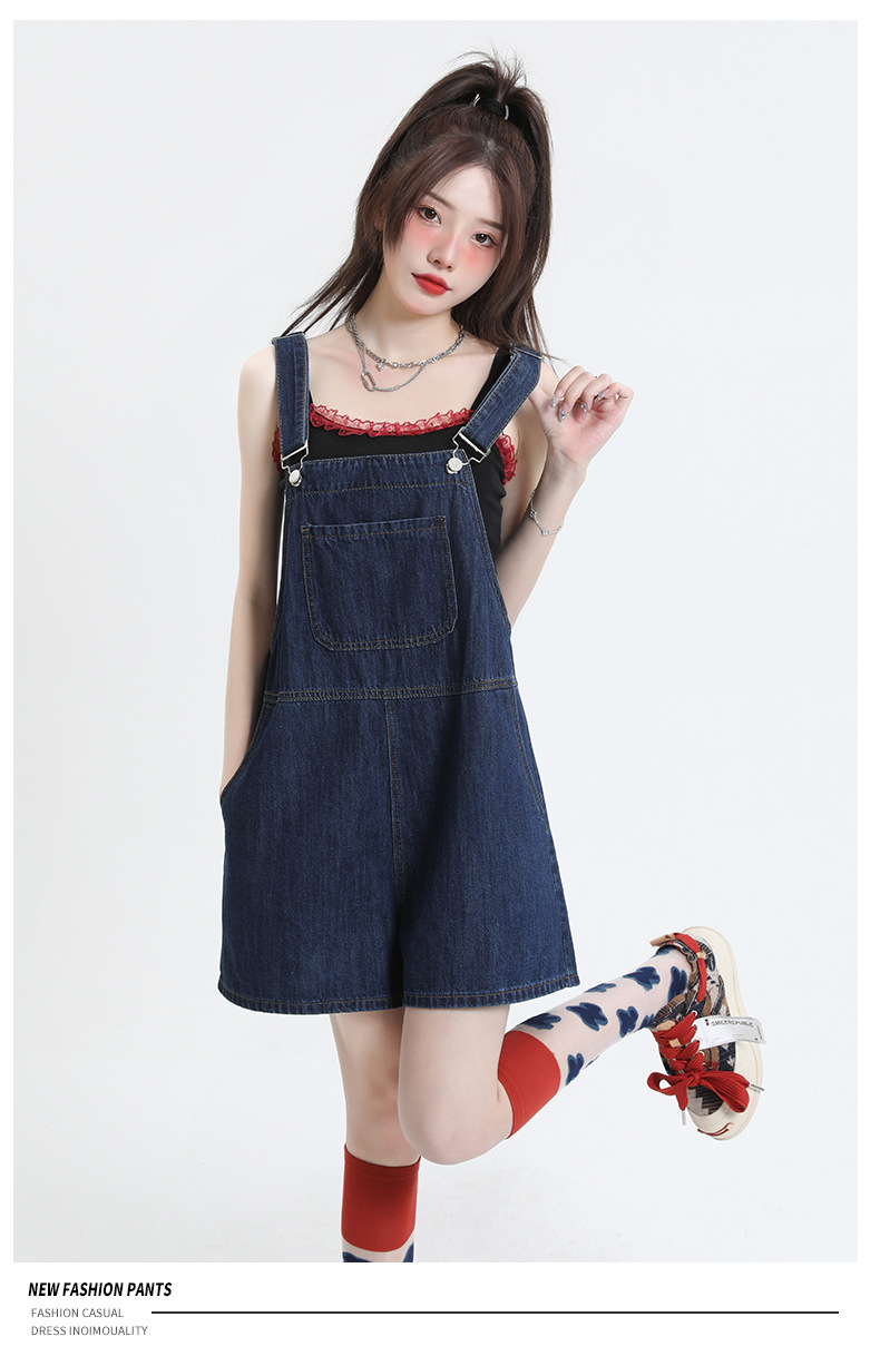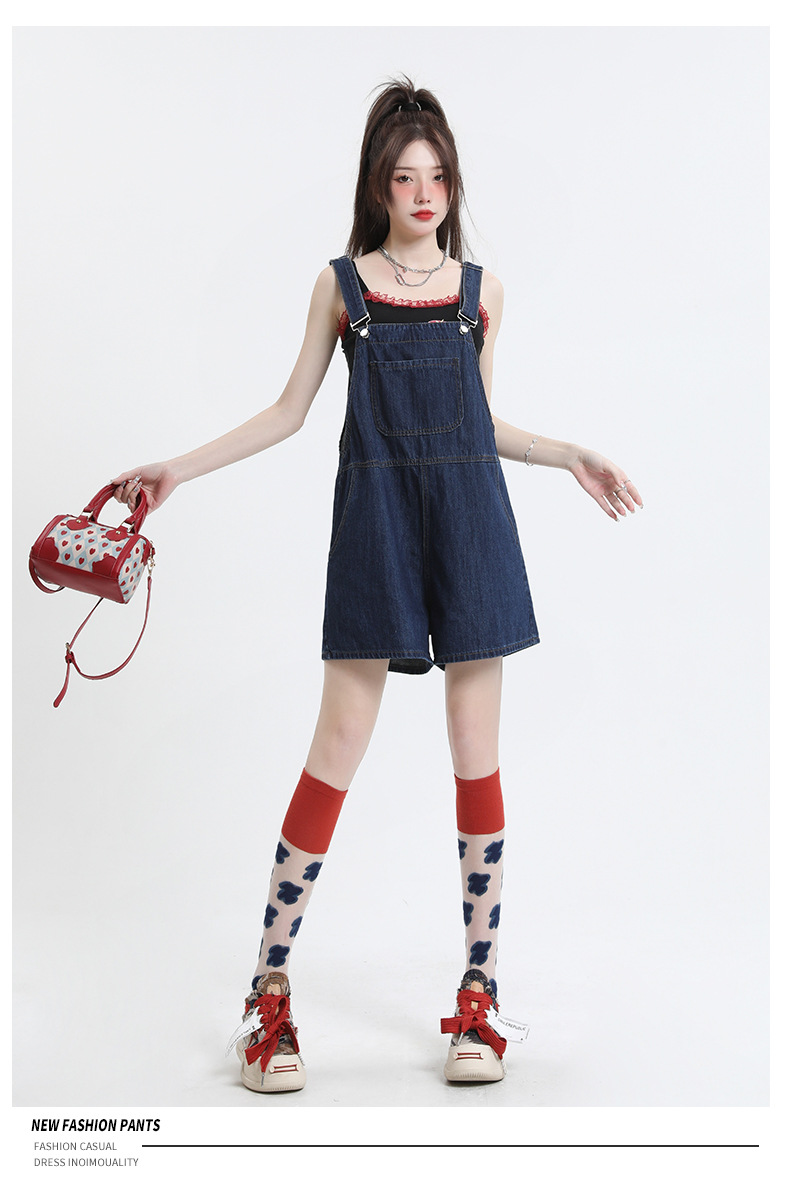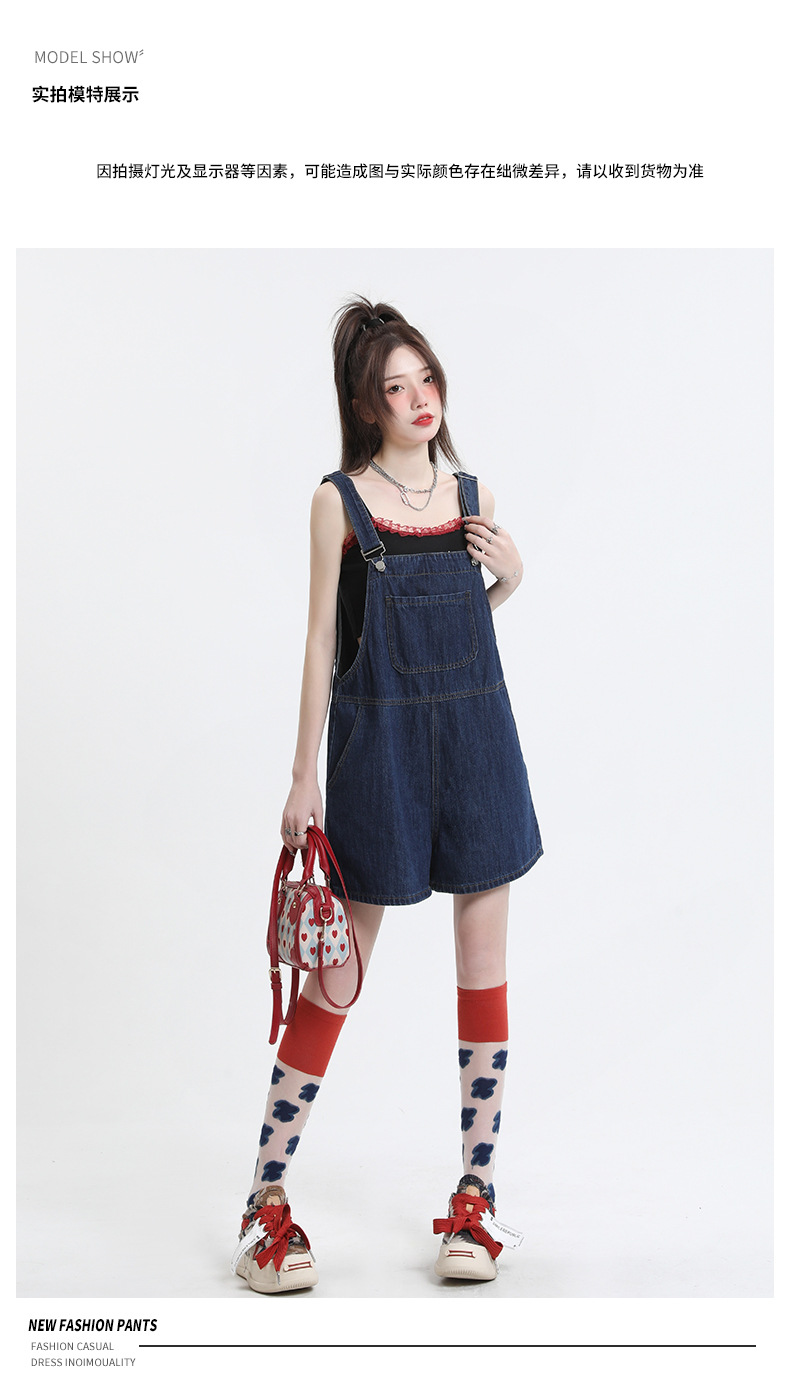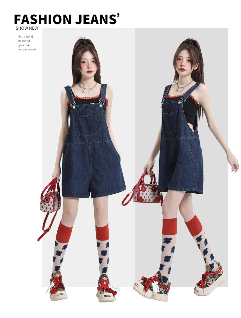 2025년 초봄 여성을 위한 서양식 연령 감소 데님 서스펜더 반바지 새로운 스타일 작은 슬리밍 인터넷 연예인 한국 점프수트 바지