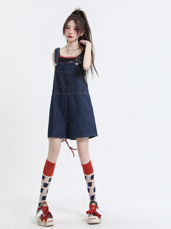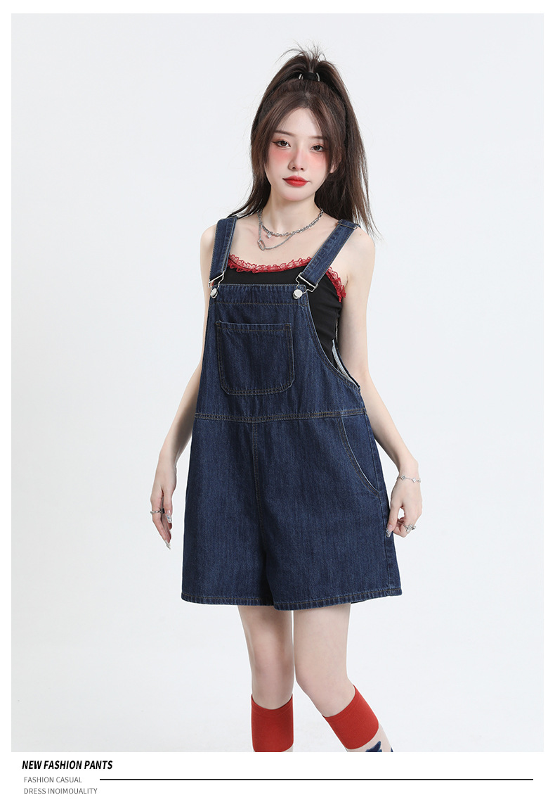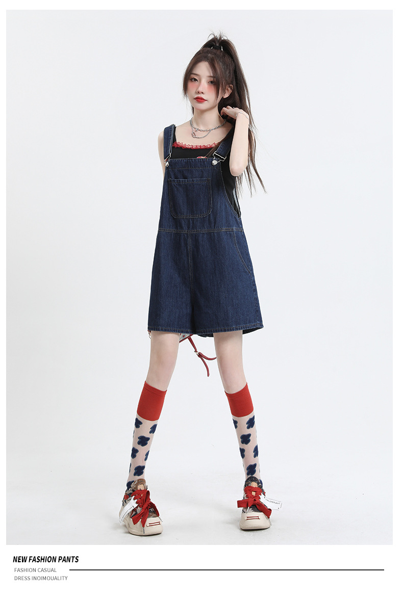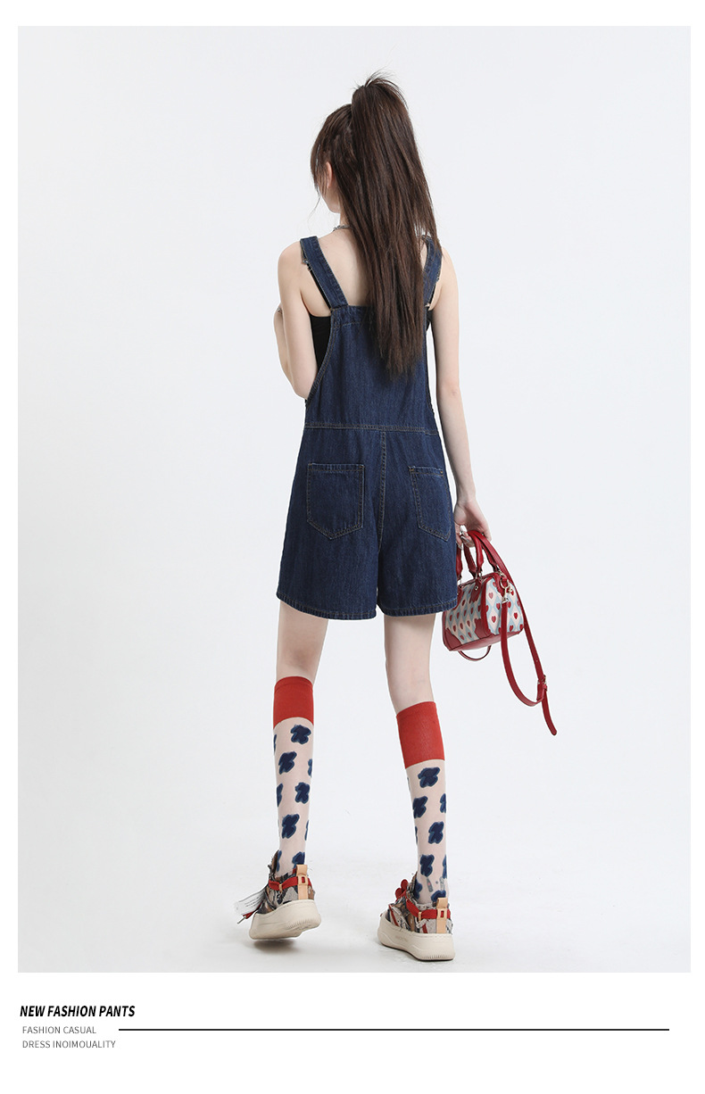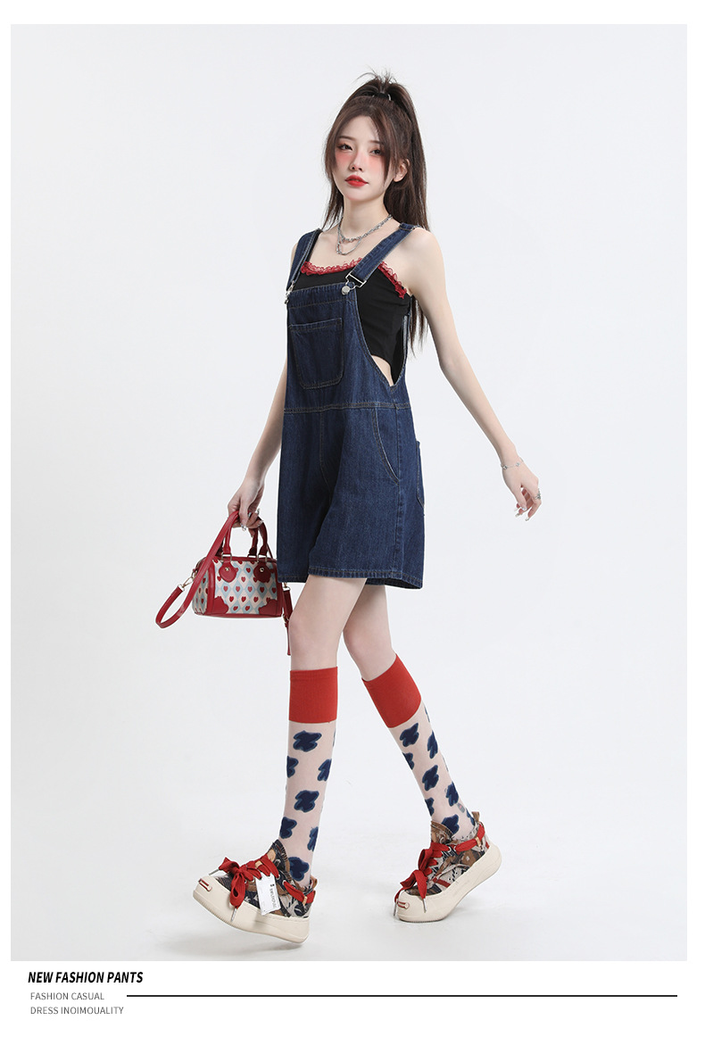 2025년 초봄 여성을 위한 서양식 연령 감소 데님 서스펜더 반바지 새로운 스타일 작은 슬리밍 인터넷 연예인 한국 점프수트 바지