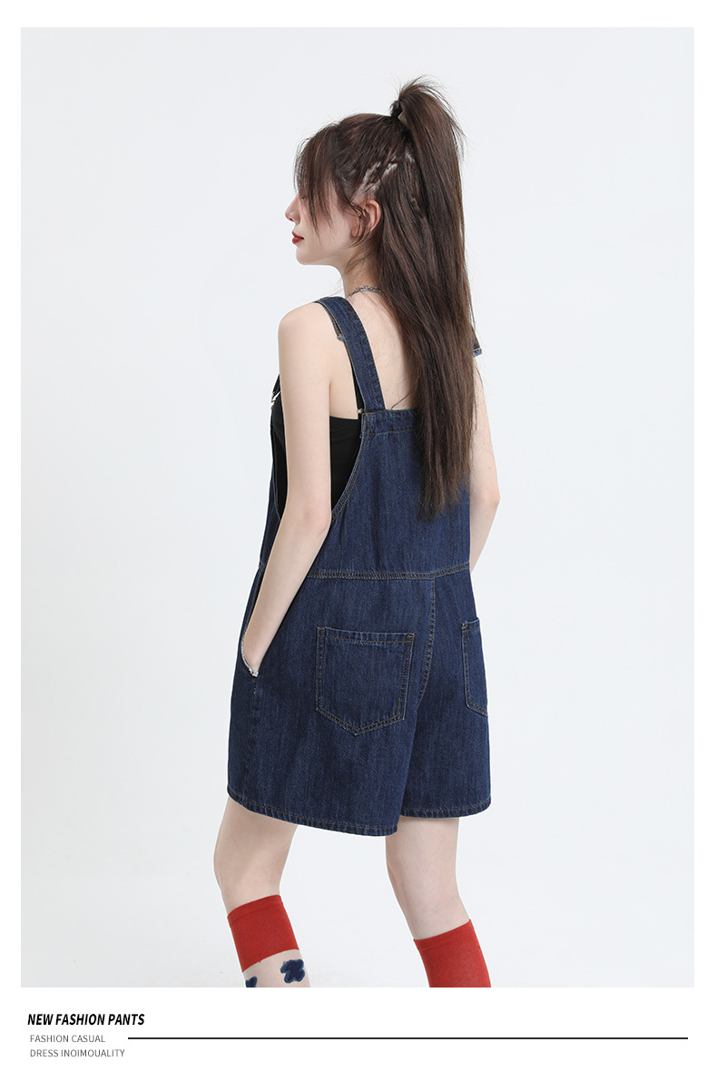 洋气减龄牛仔背带短裤女阔腿