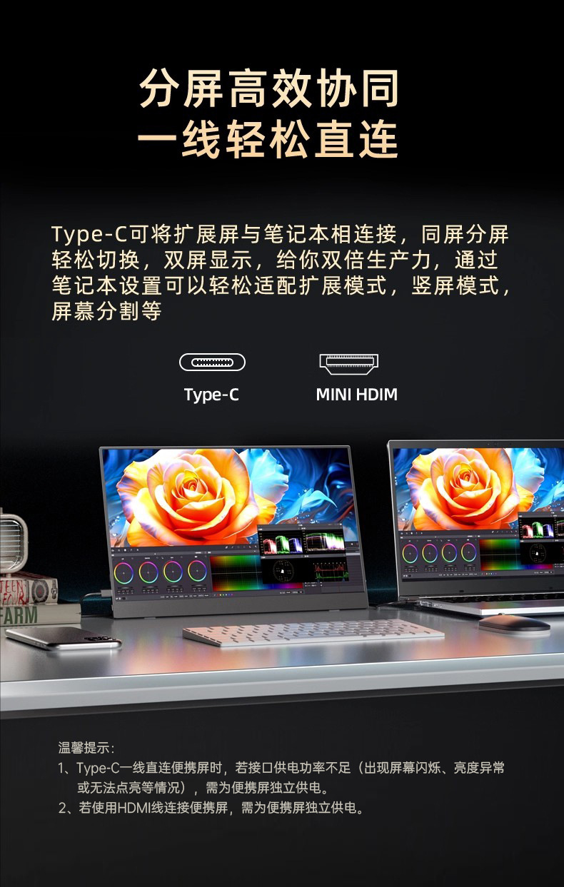 13.3 인치 터치 스크린 4K 휴대용 디스플레이 PS5 휴대 전화 확장 화면 스위치 외부 컴퓨터 서브 스크린