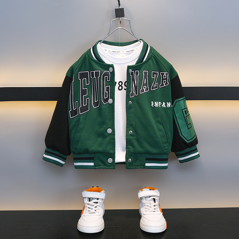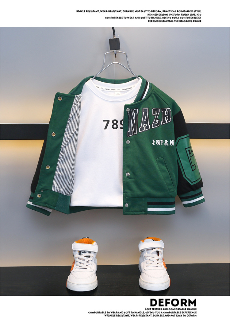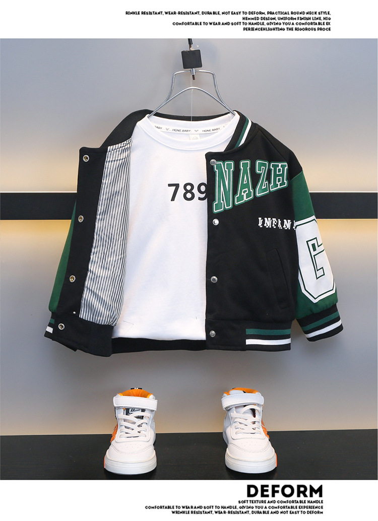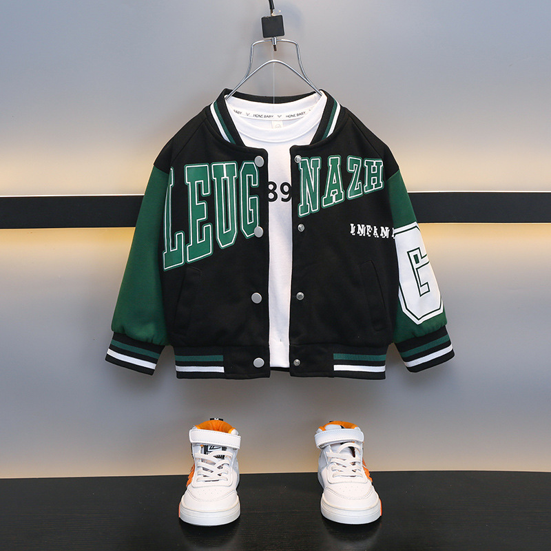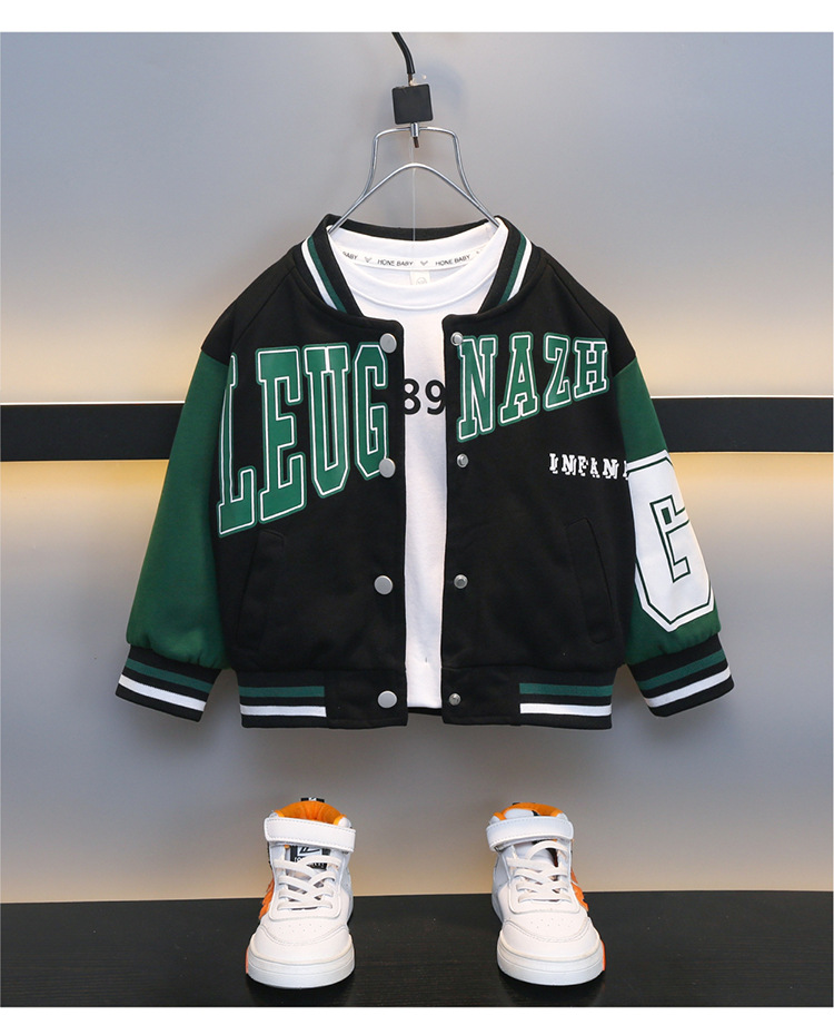 소년 가을 편지 야구 세트 코트 2024 봄과 가을 새로운 어린이 서부 긴 소매 재킷 탑 카디건스토어 가기
