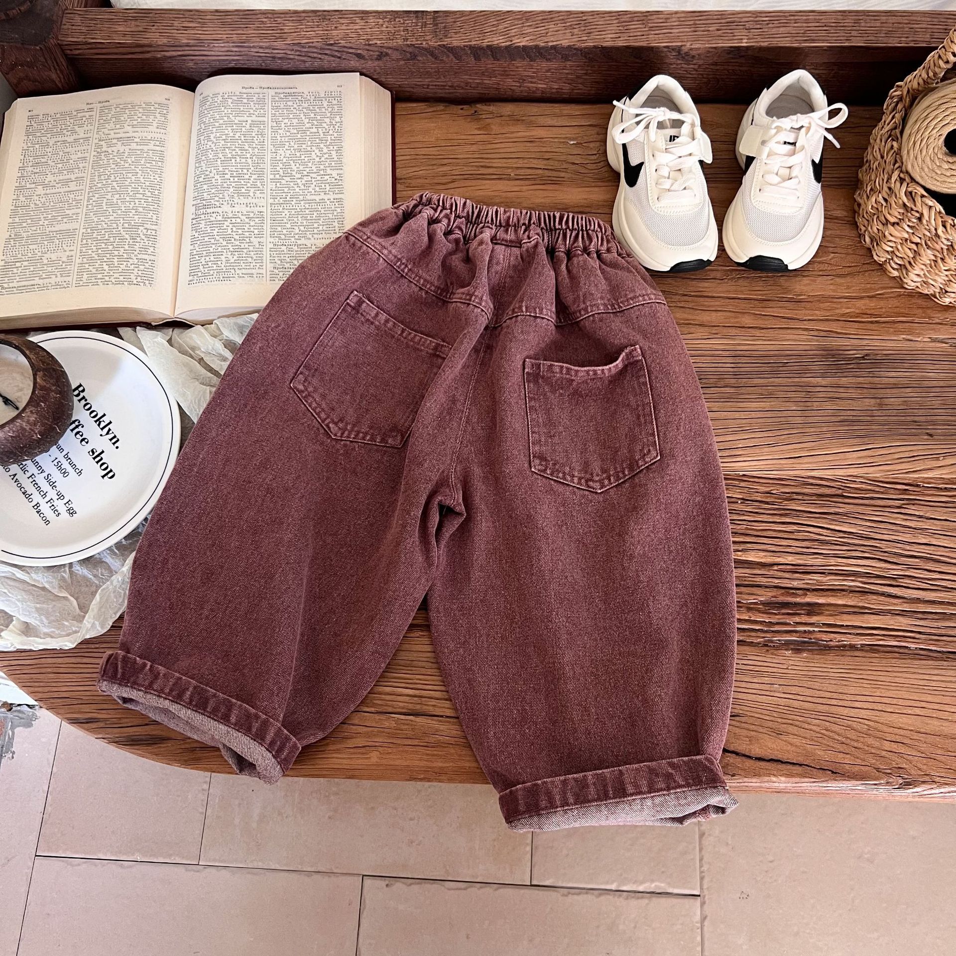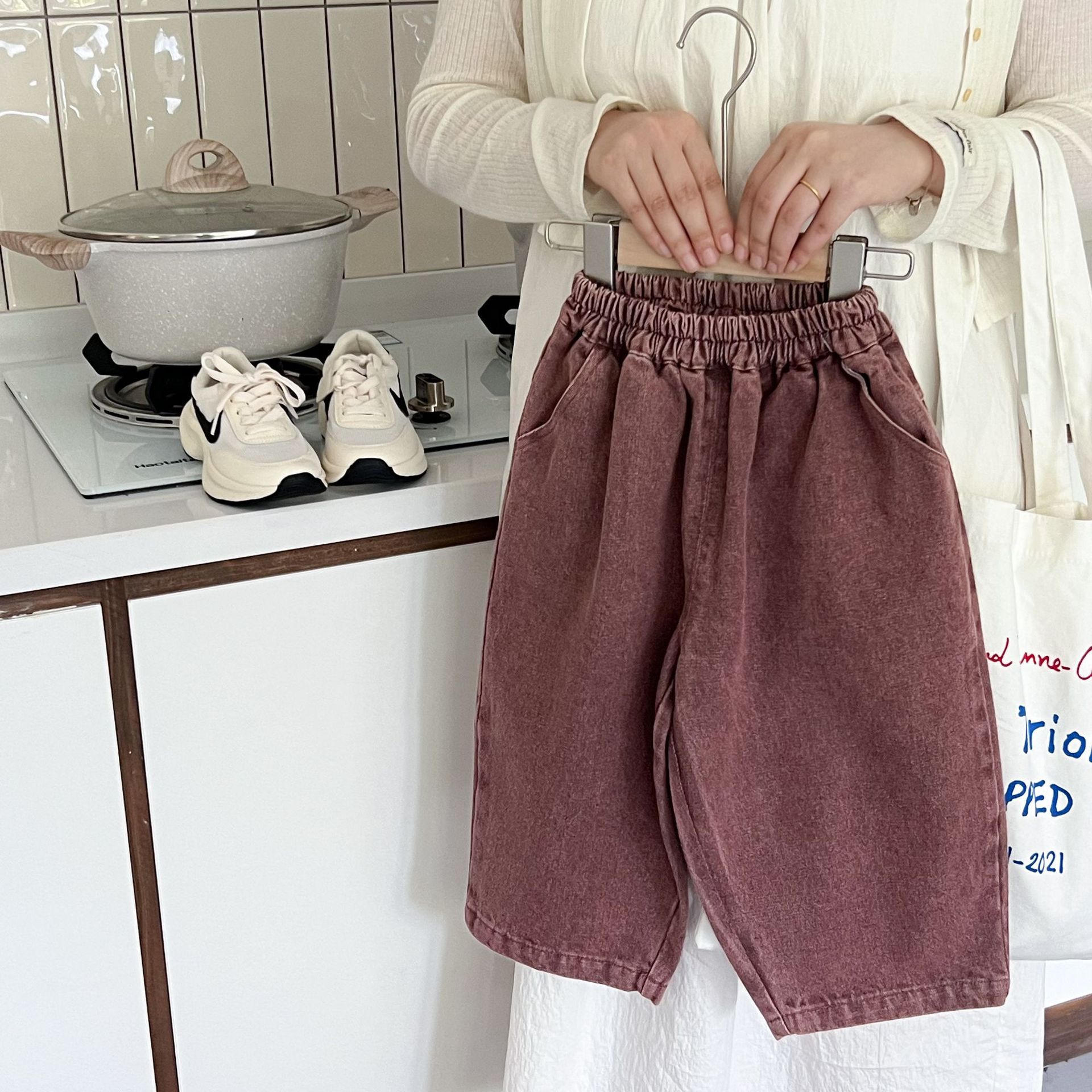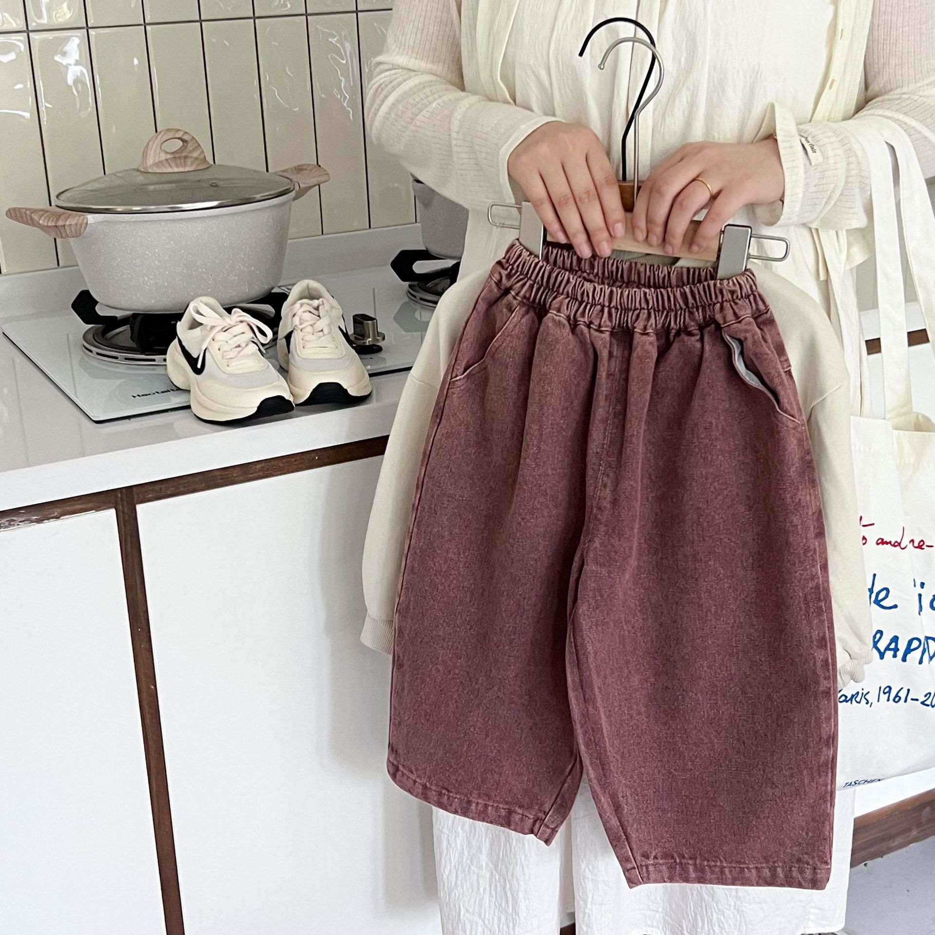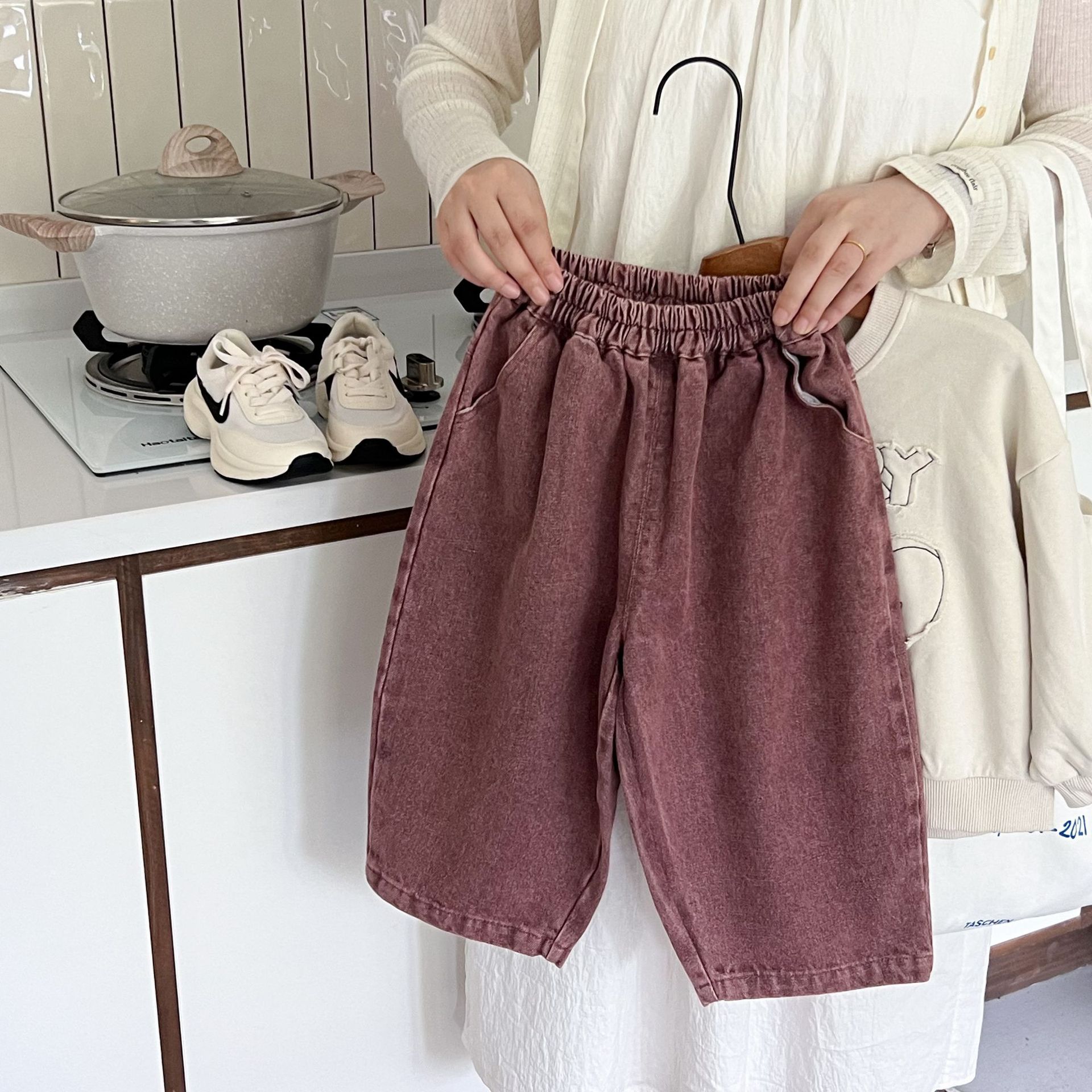 洗旧的红色,不同于常见的蓝色牛仔裤,充满热情与活力,让孩子瞬间成为焦点。比如在集体活动中,孩子能轻松被识别和记住。