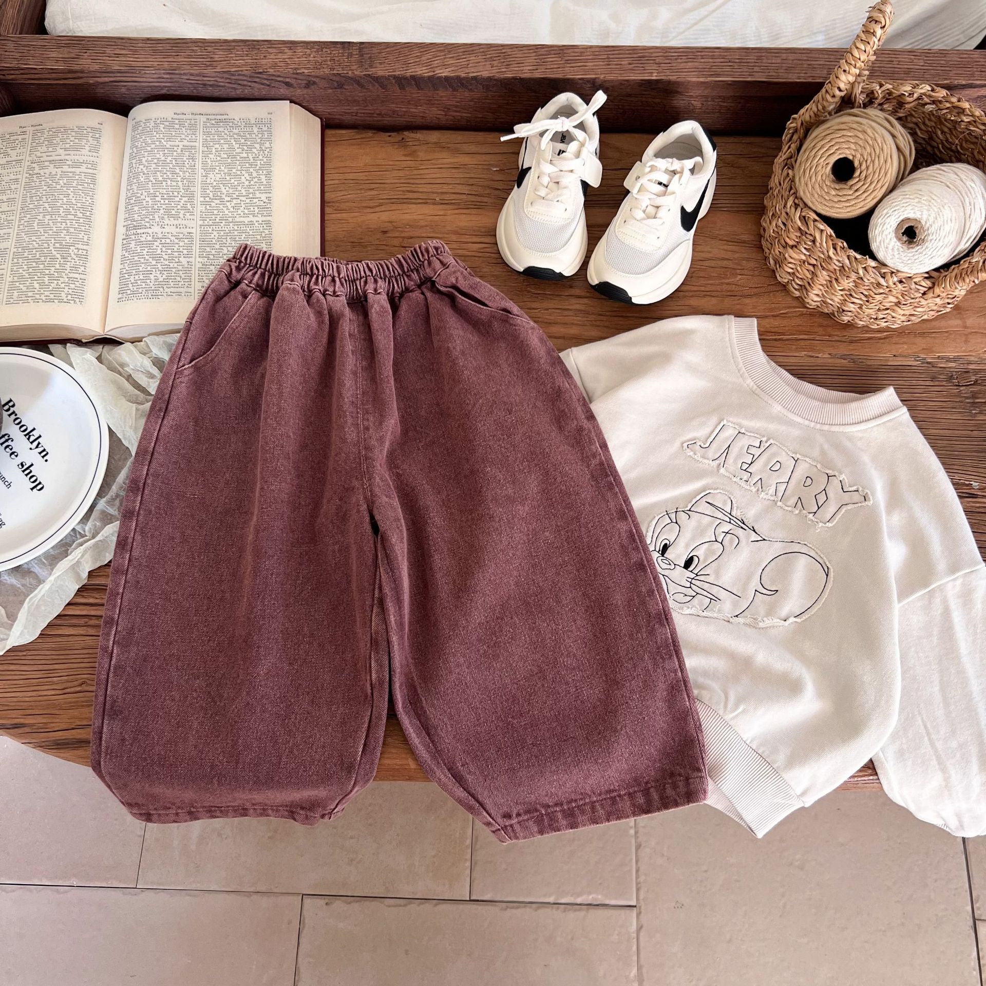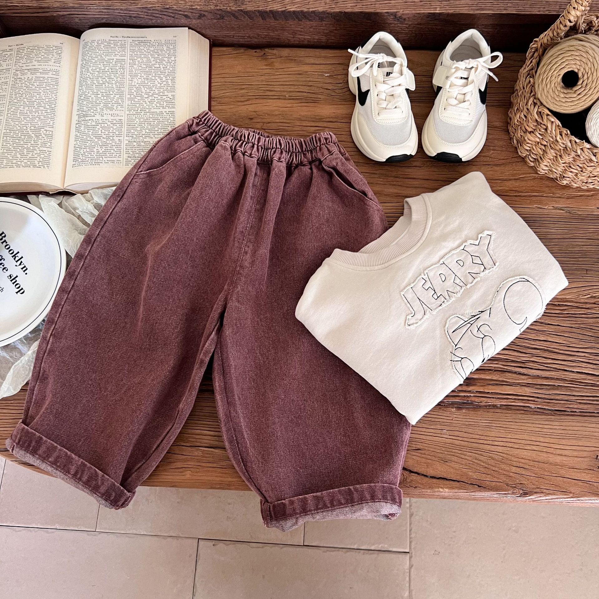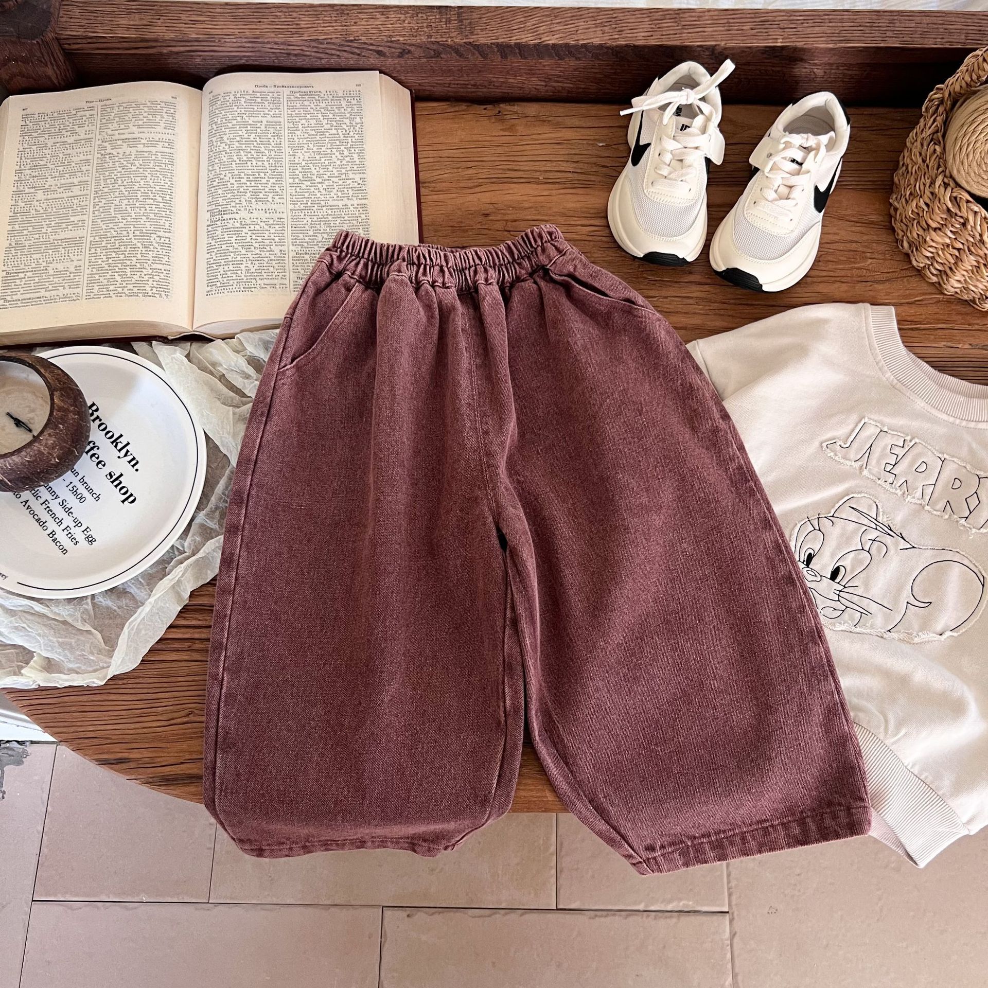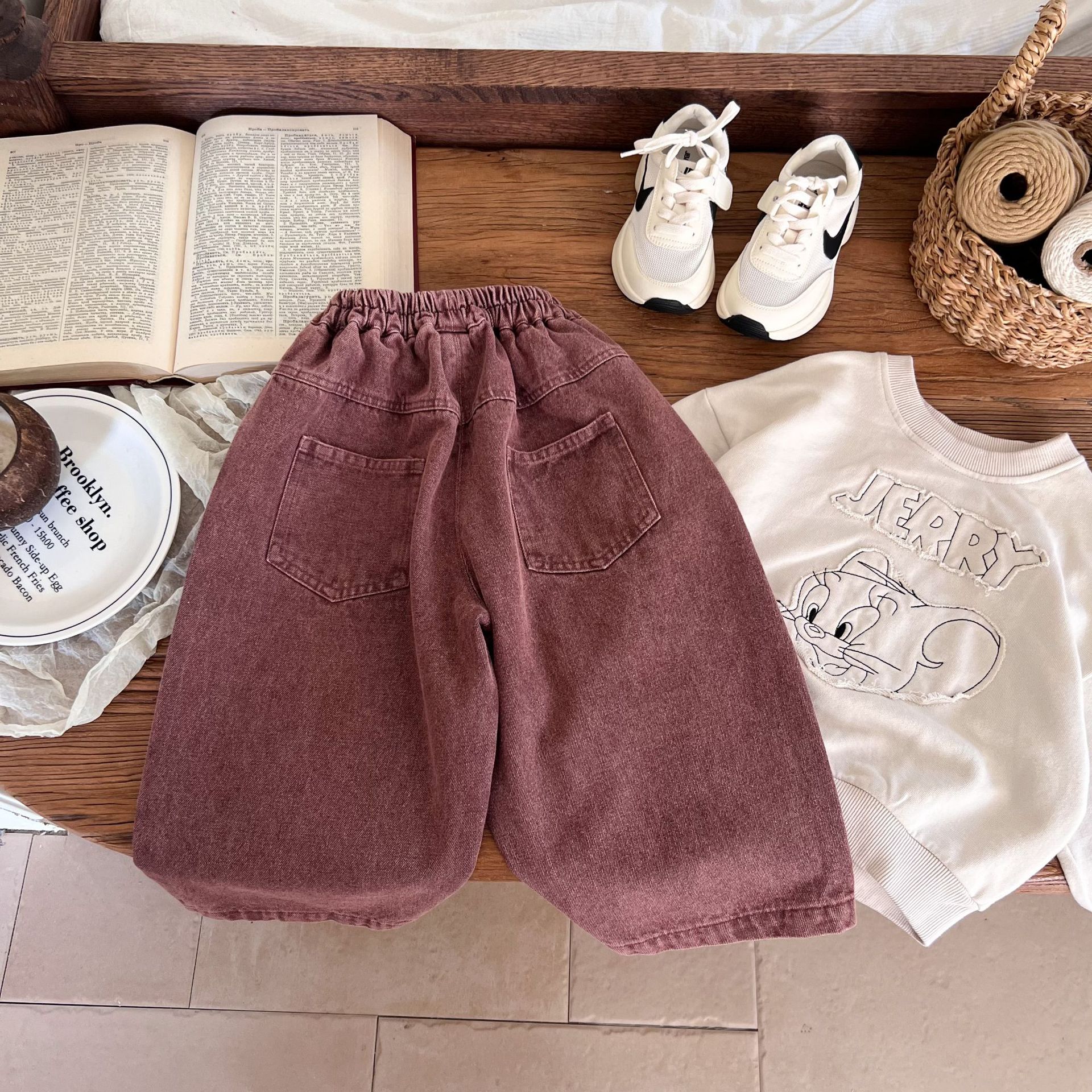 洗旧的红色,不同于常见的蓝色牛仔裤,充满热情与活力,让孩子瞬间成为焦点。比如在集体活动中,孩子能轻松被识别和记住。
