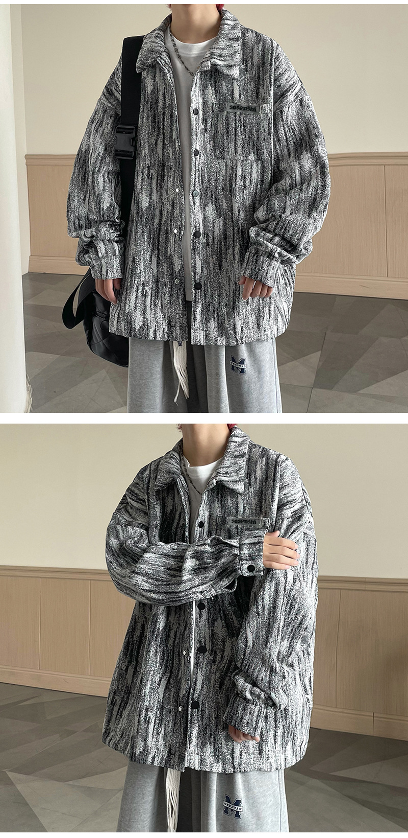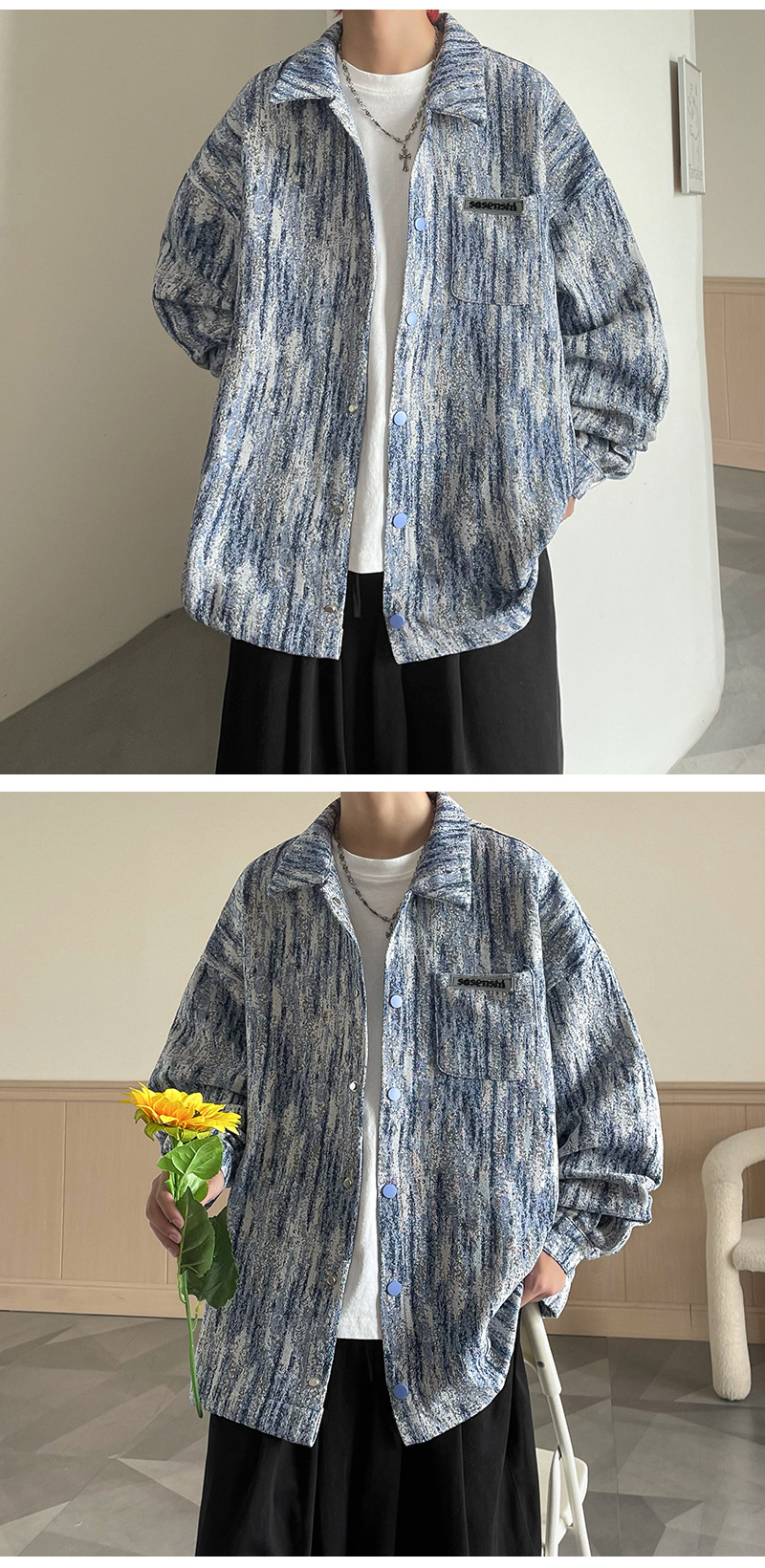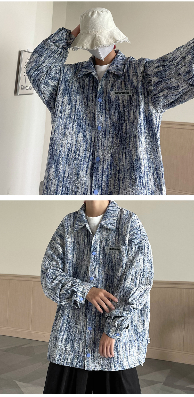 넥타이 염색 데님 재킷 남자의 봄과 가을 새로운 미국식 하이 스트리트 바이브 핸섬 청소년 캐주얼 루즈 재킷스토어 가기