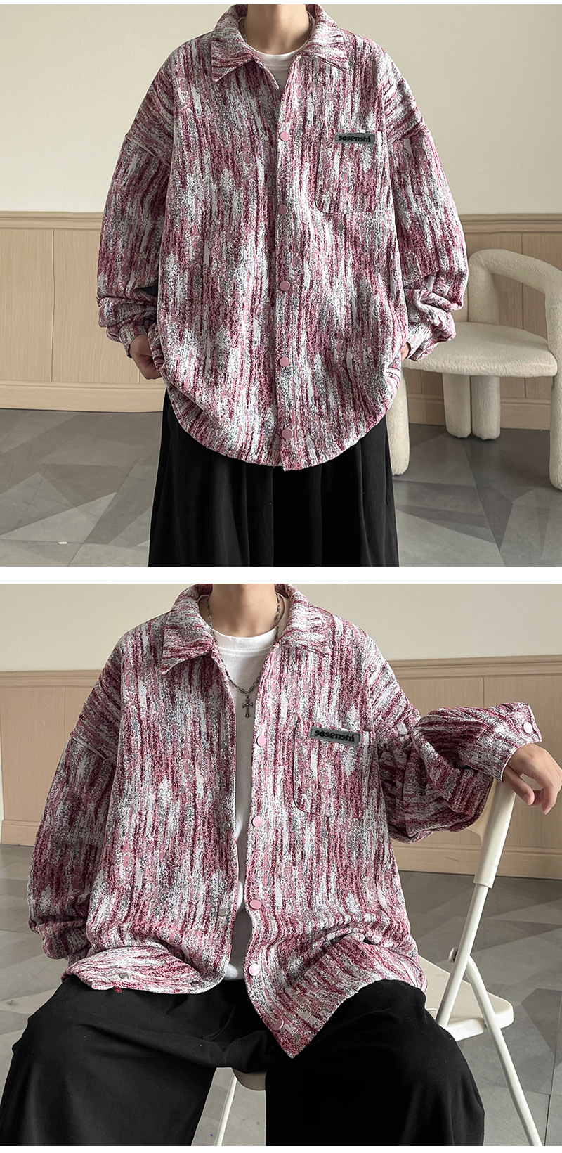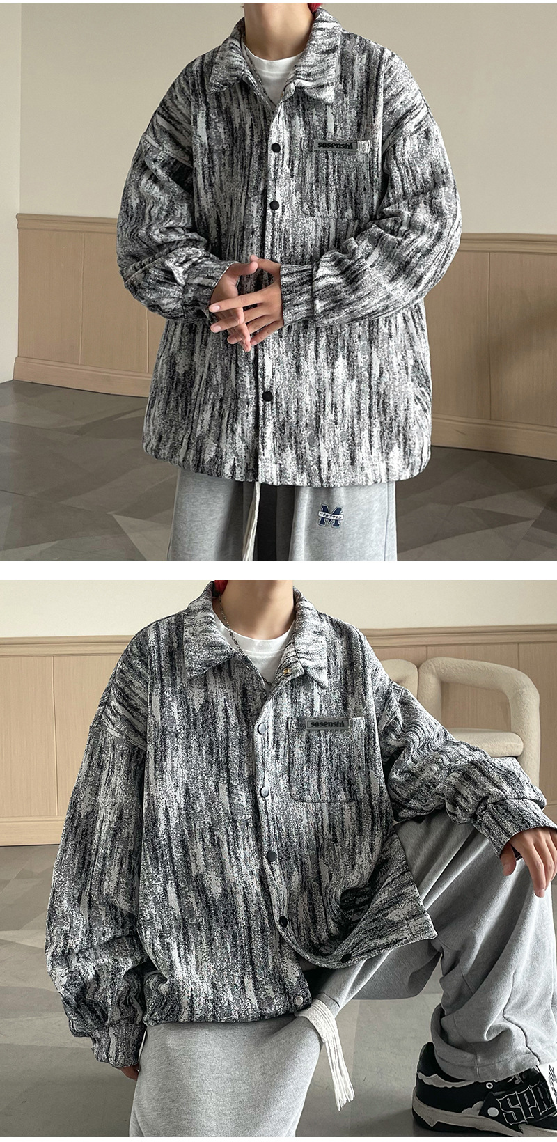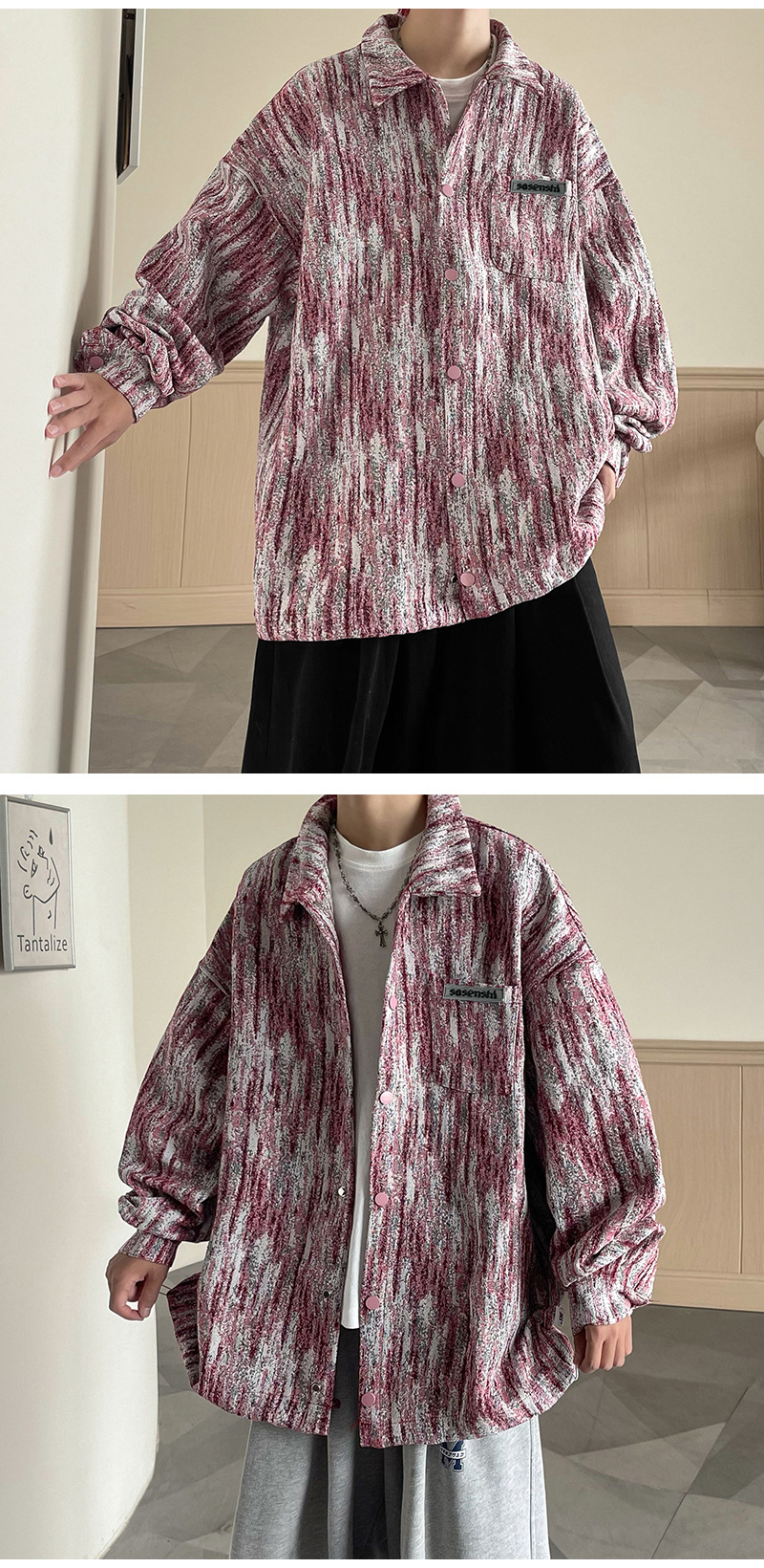 넥타이 염색 데님 재킷 남자의 봄과 가을 새로운 미국식 하이 스트리트 바이브 핸섬 청소년 캐주얼 루즈 재킷스토어 가기