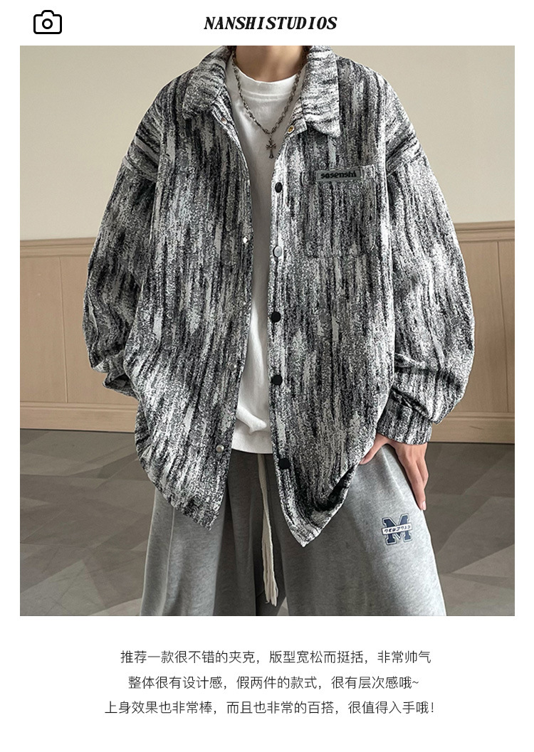 넥타이 염색 데님 재킷 남자의 봄과 가을 새로운 미국식 하이 스트리트 바이브 핸섬 청소년 캐주얼 루즈 재킷