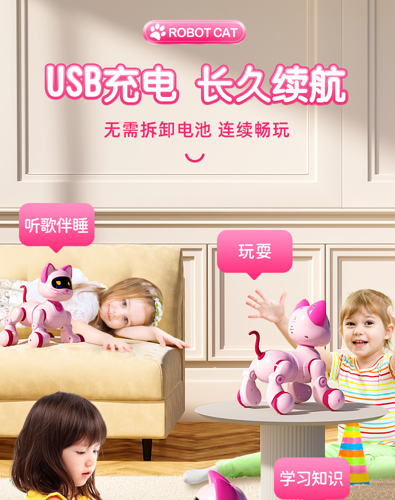 어린이 원격 제어 터치 센서 로봇 고양이 지능형 조기 교육 음성 로봇 개 원격 제어 프로그래밍 소년 장난감스토어 가기