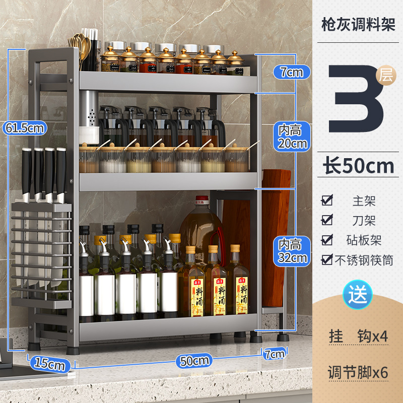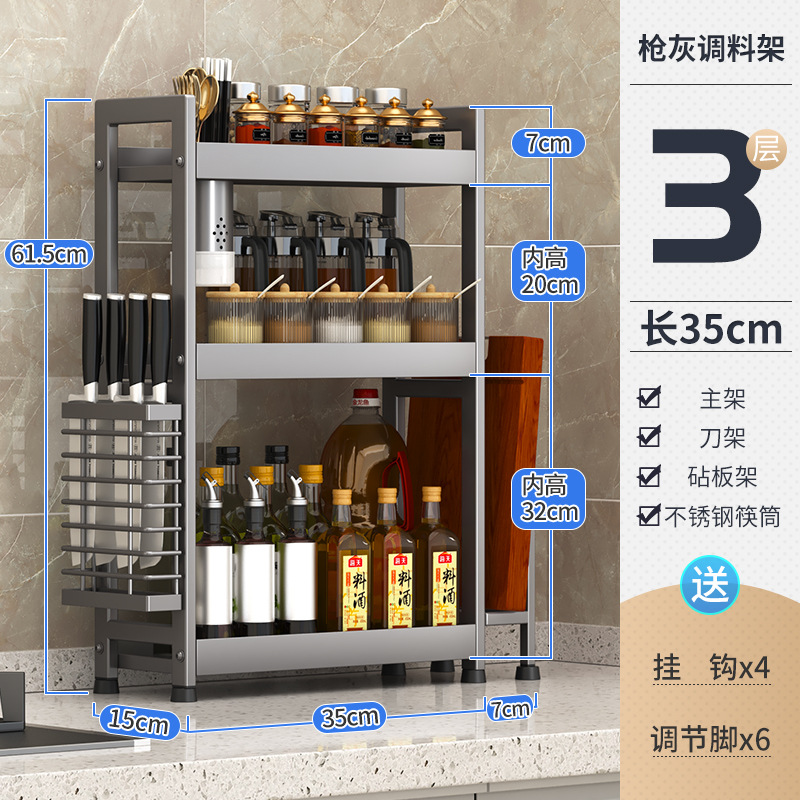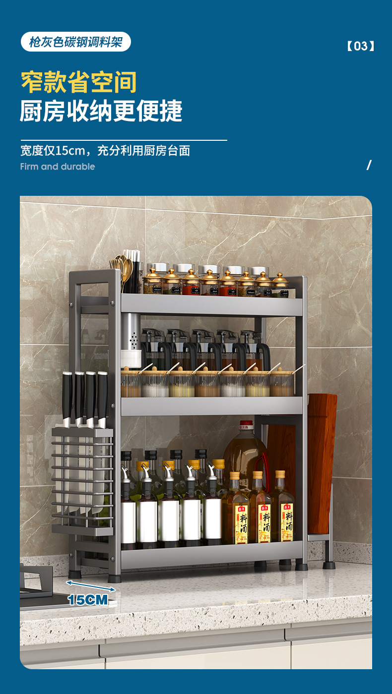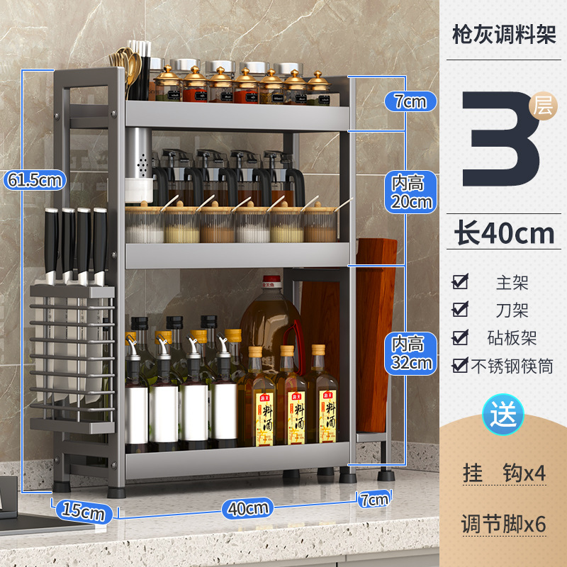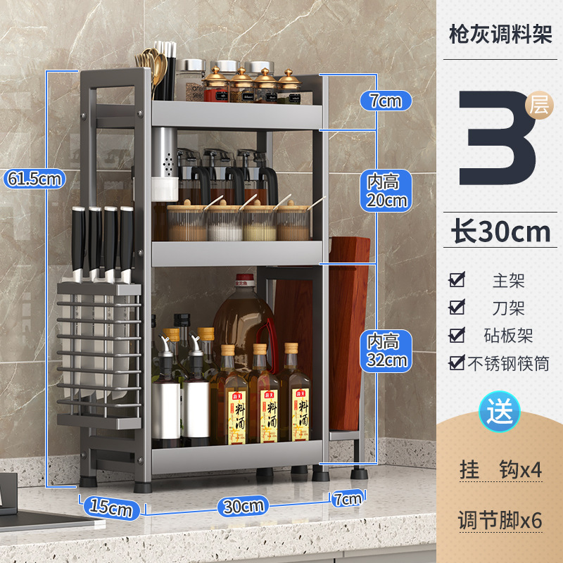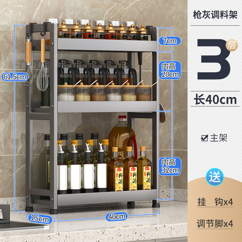 주방 조미료 보관 랙 건 그레이 좁은 다기능 양념 선반 테이블 탑 오일 소금 소스 식초 보관 랙 박스스토어 가기