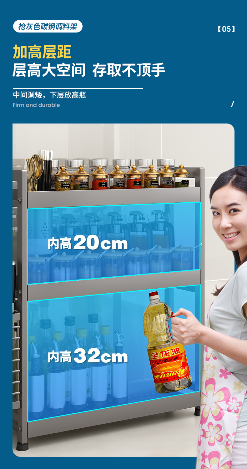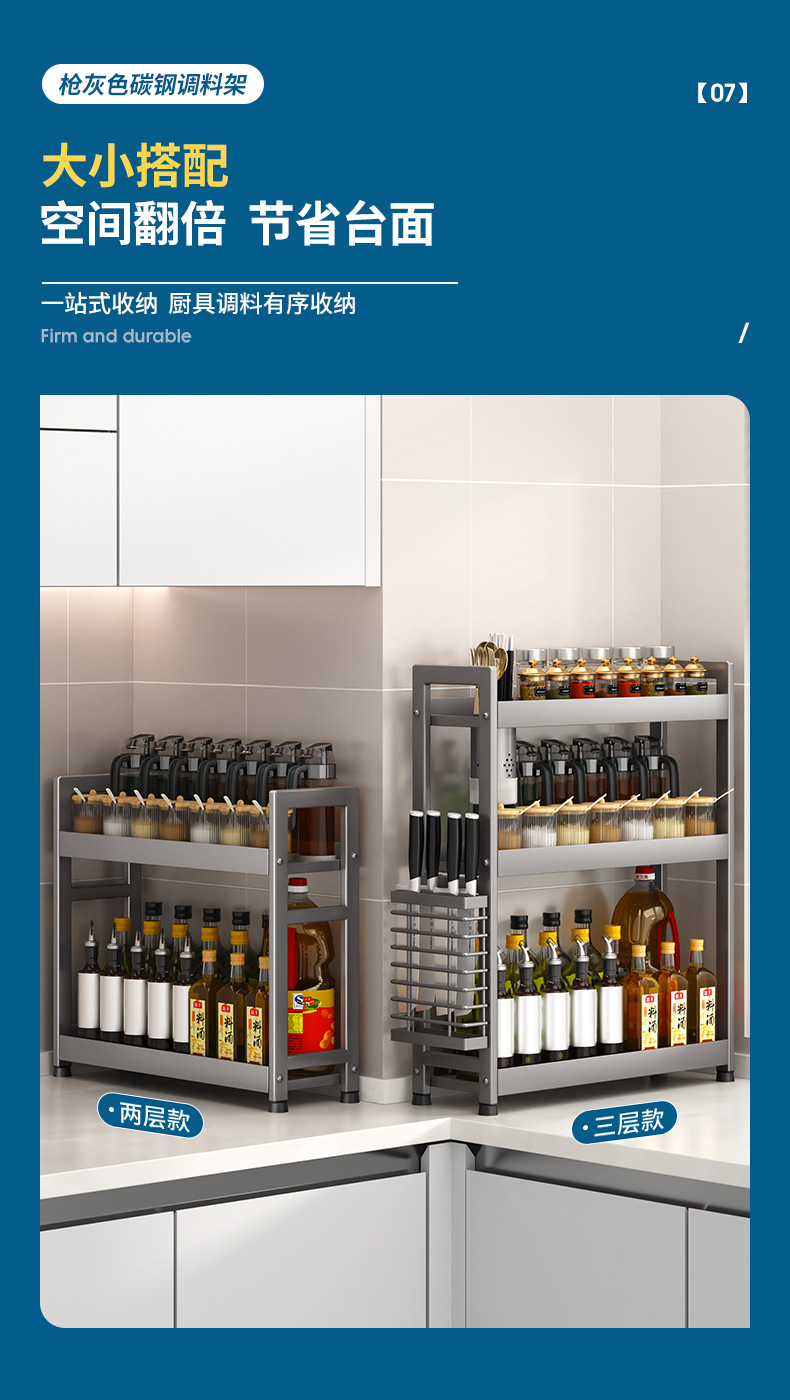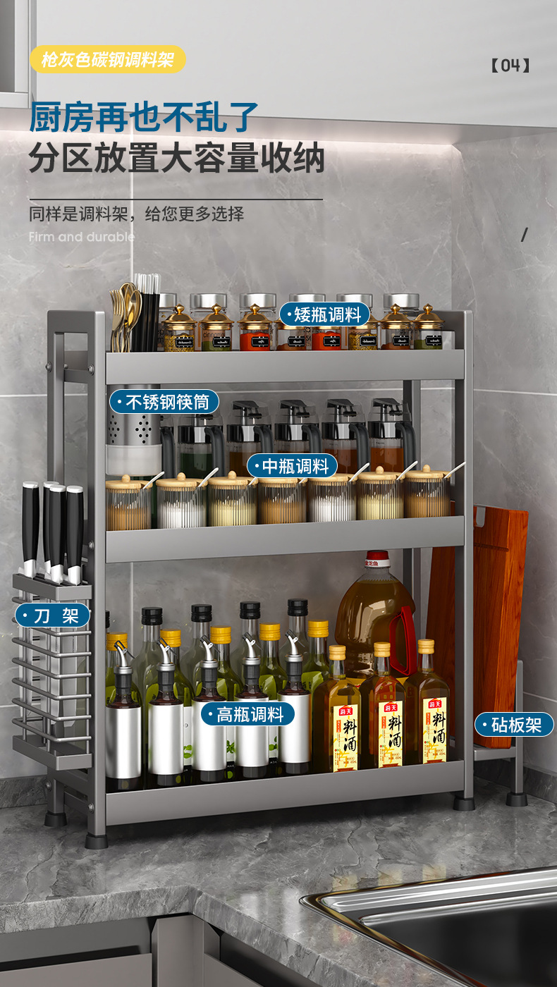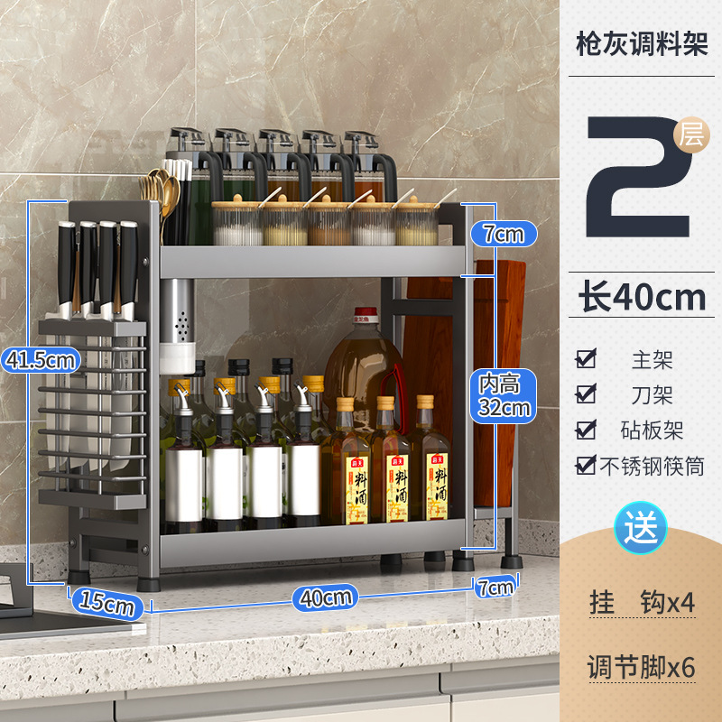 주방 조미료 보관 랙 건 그레이 좁은 다기능 양념 선반 테이블 탑 오일 소금 소스 식초 보관 랙 박스스토어 가기