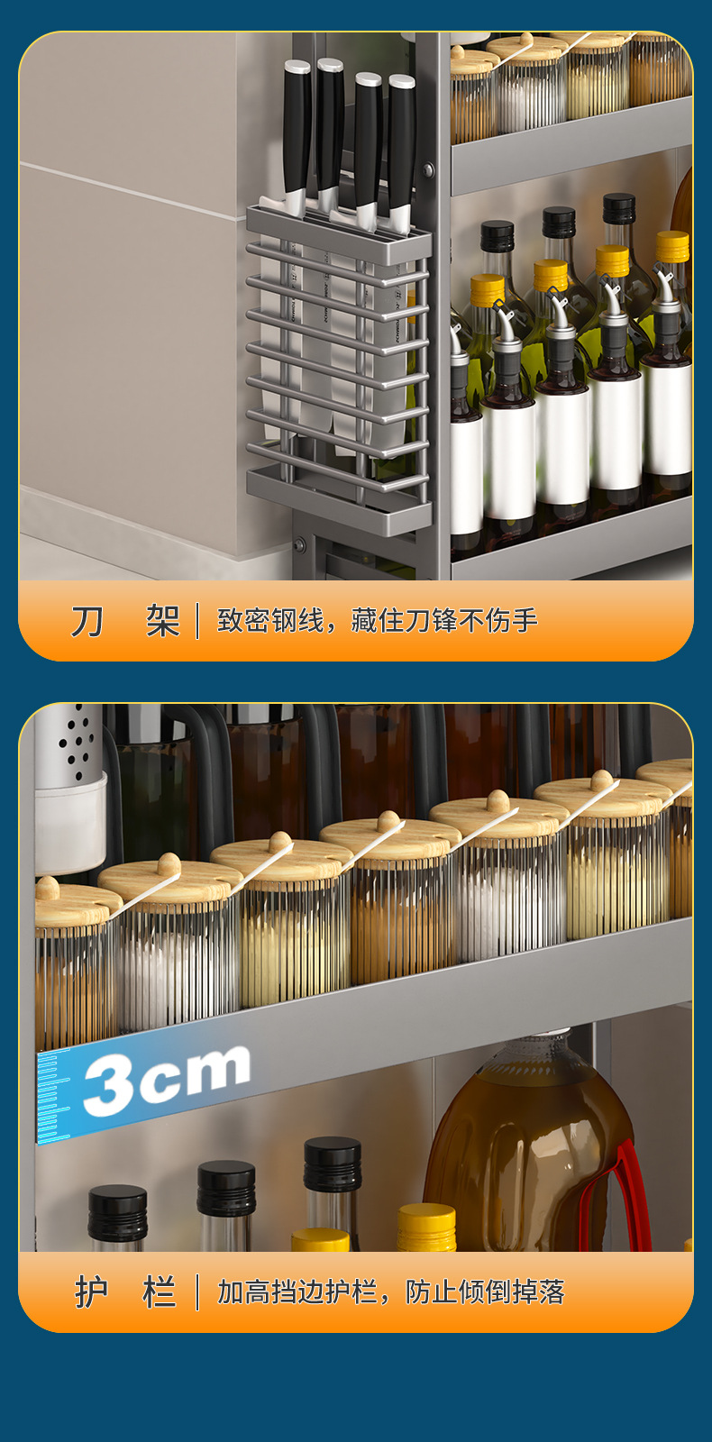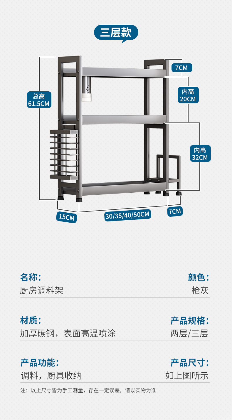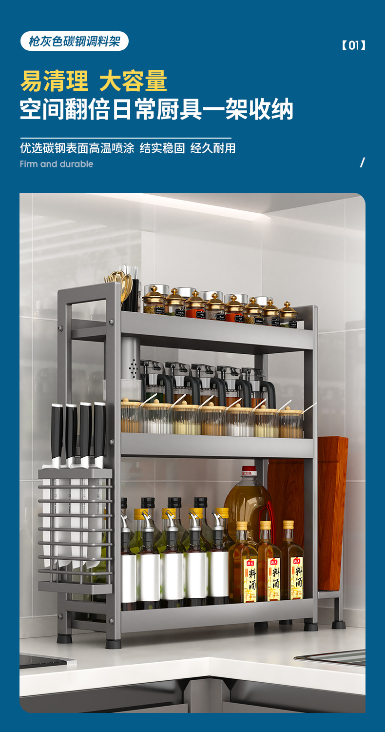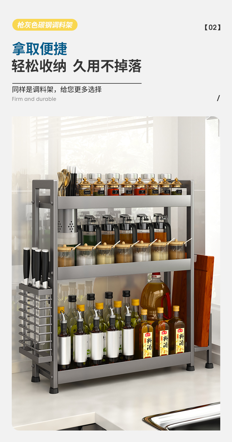 주방 조미료 보관 랙 건 그레이 좁은 다기능 양념 선반 테이블 탑 오일 소금 소스 식초 보관 랙 박스