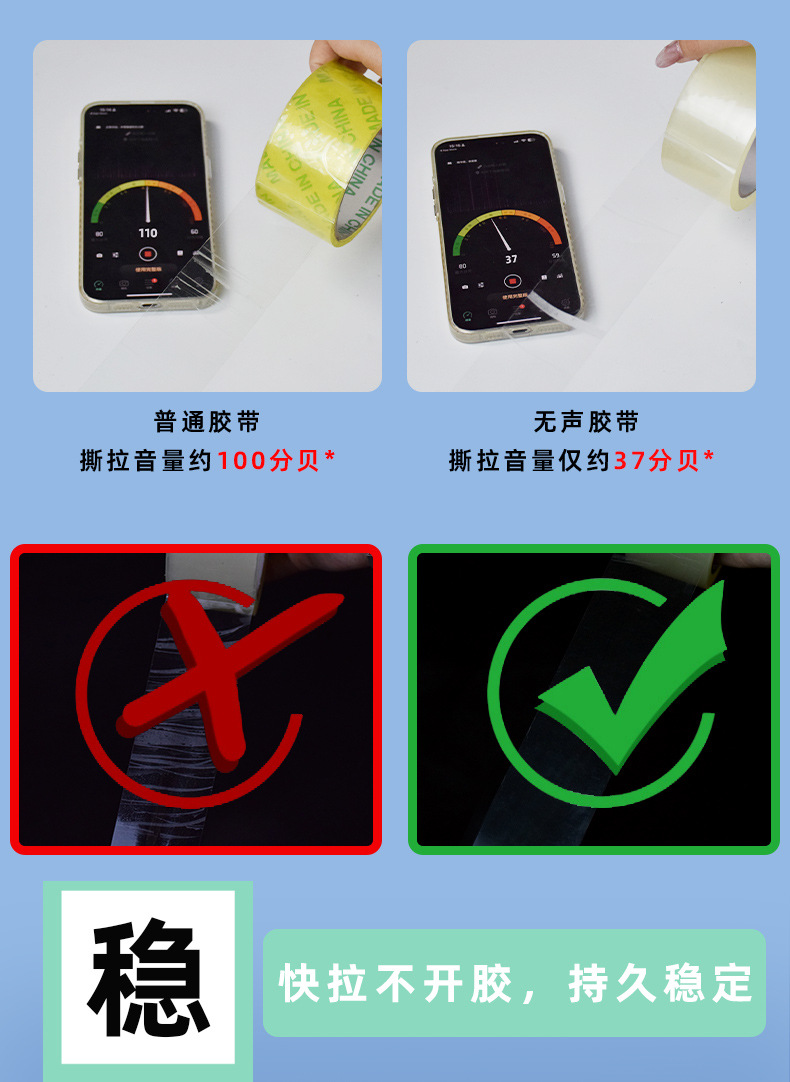 도매 침묵 테이프 높은 점도 침묵 소음 감소 투명 물류 포장 테이프 밀봉 저소음스토어 가기