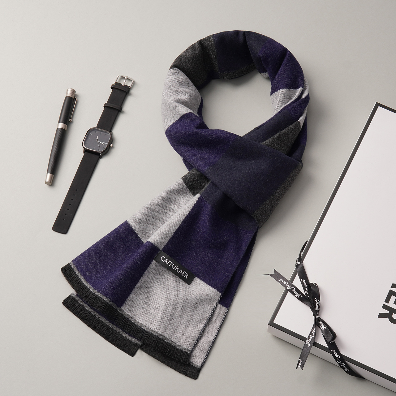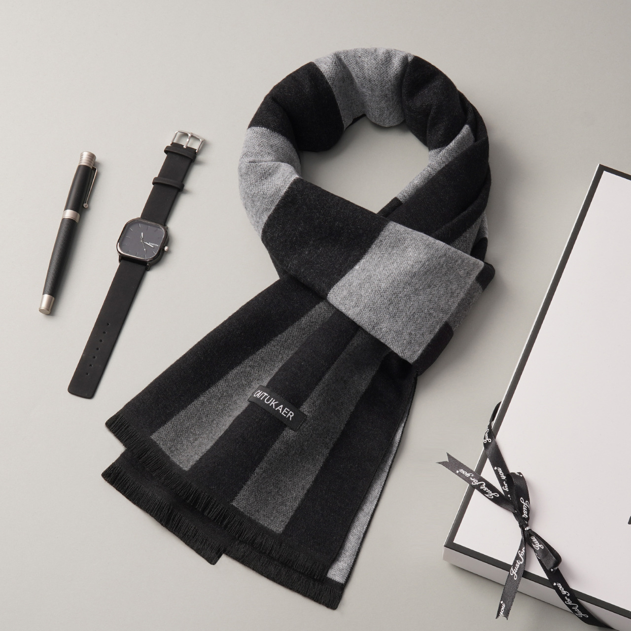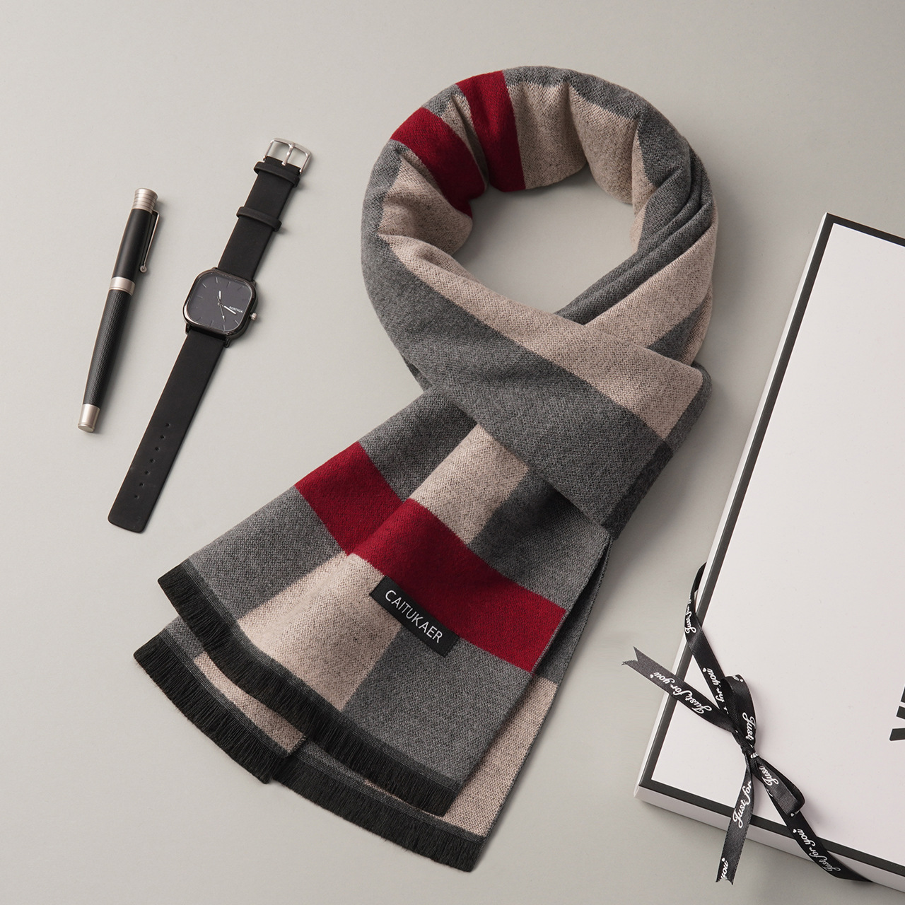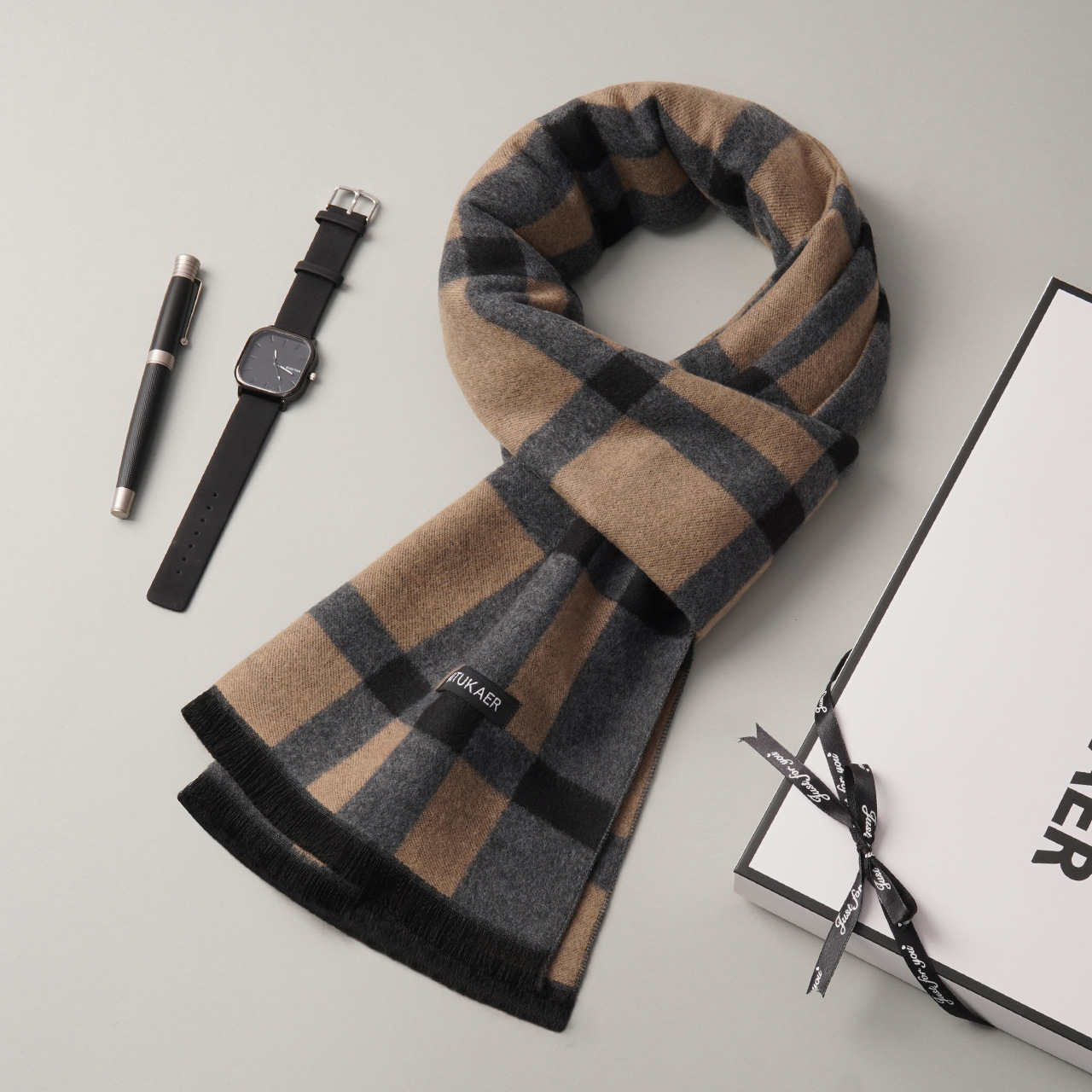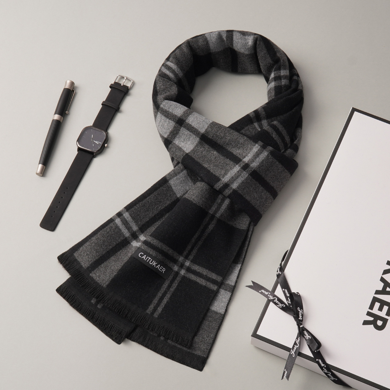 가을과 겨울 얇은 비즈니스 남성 스카프 청소년 모든 경기 패션 격자 무늬 따뜻한 캐주얼 스카프 선물 상자