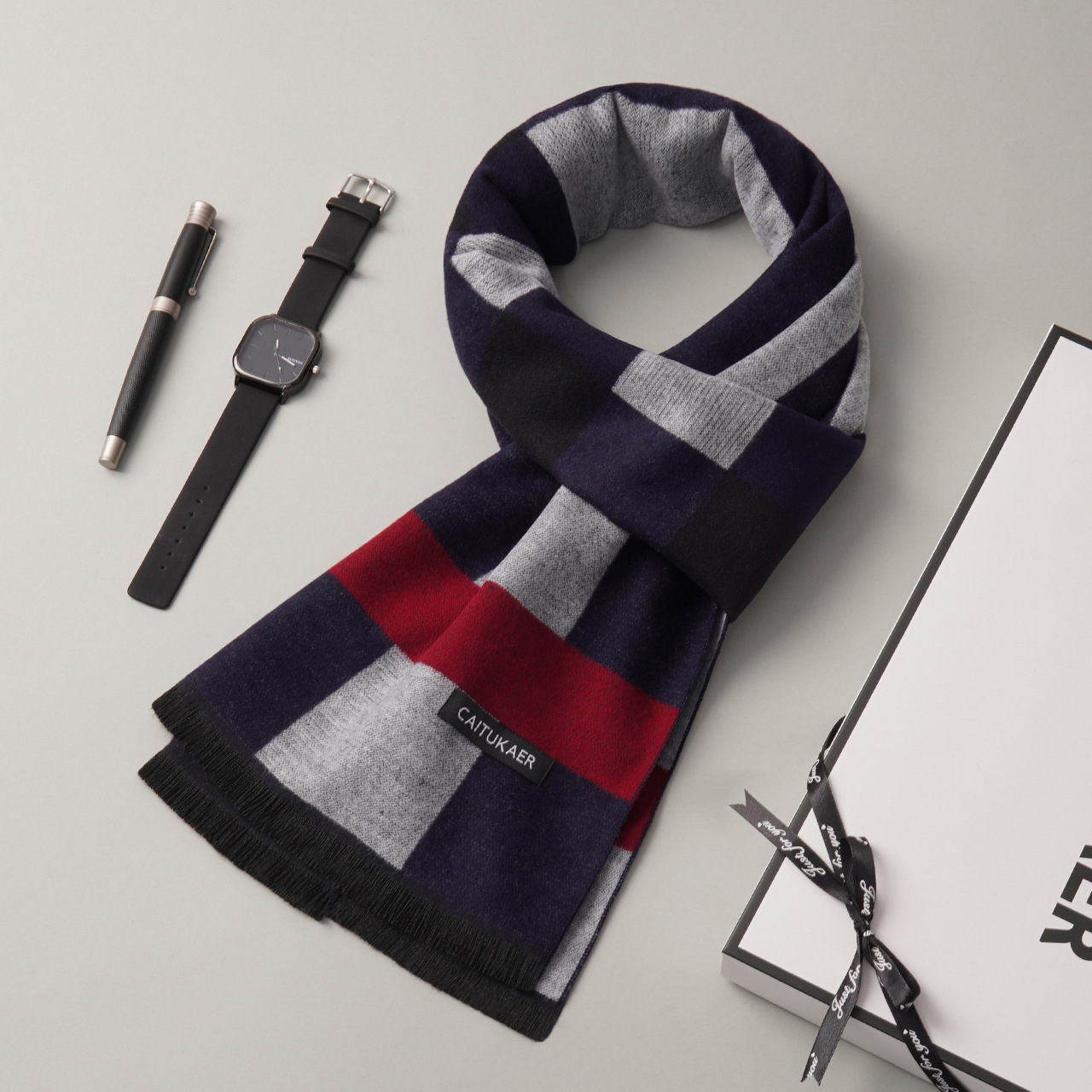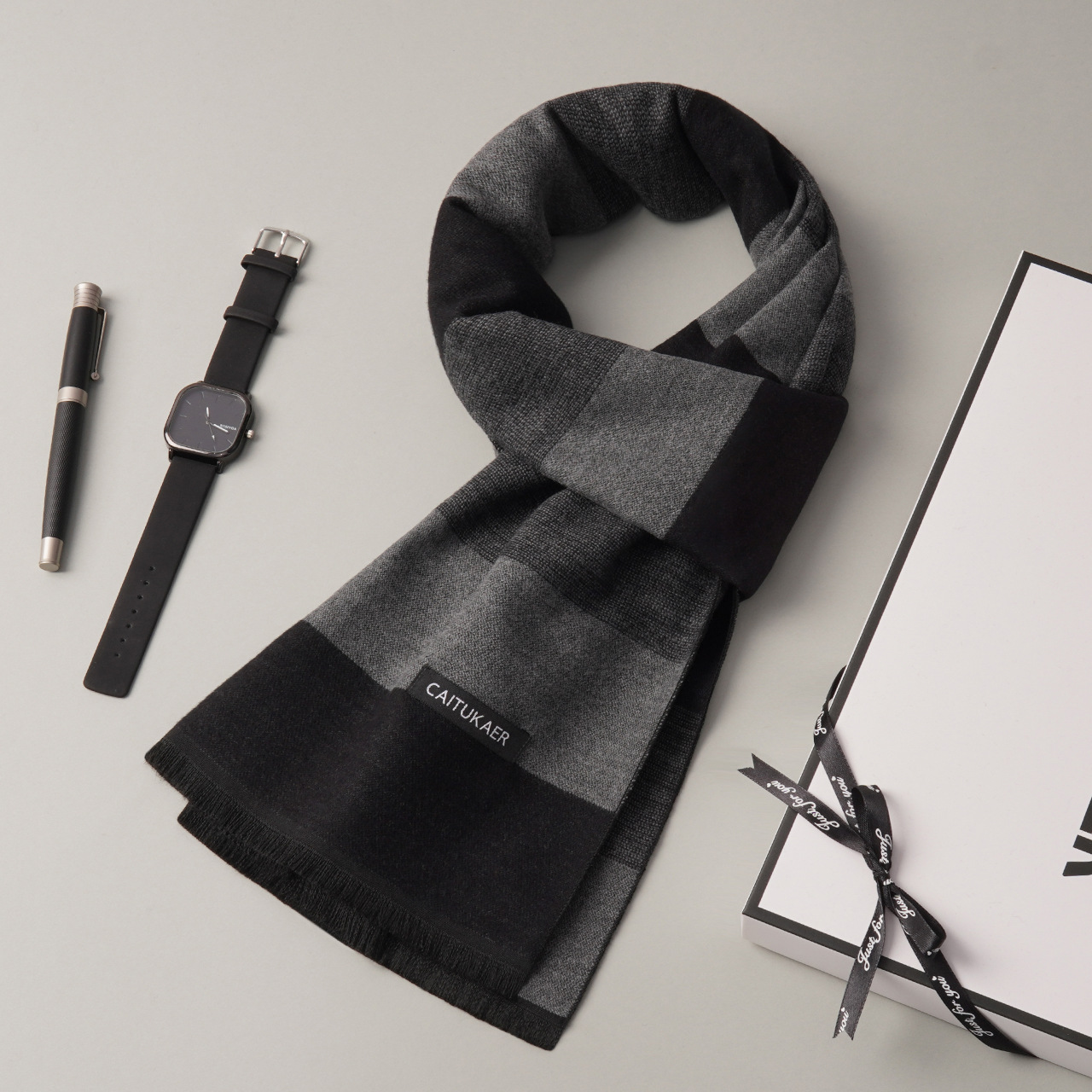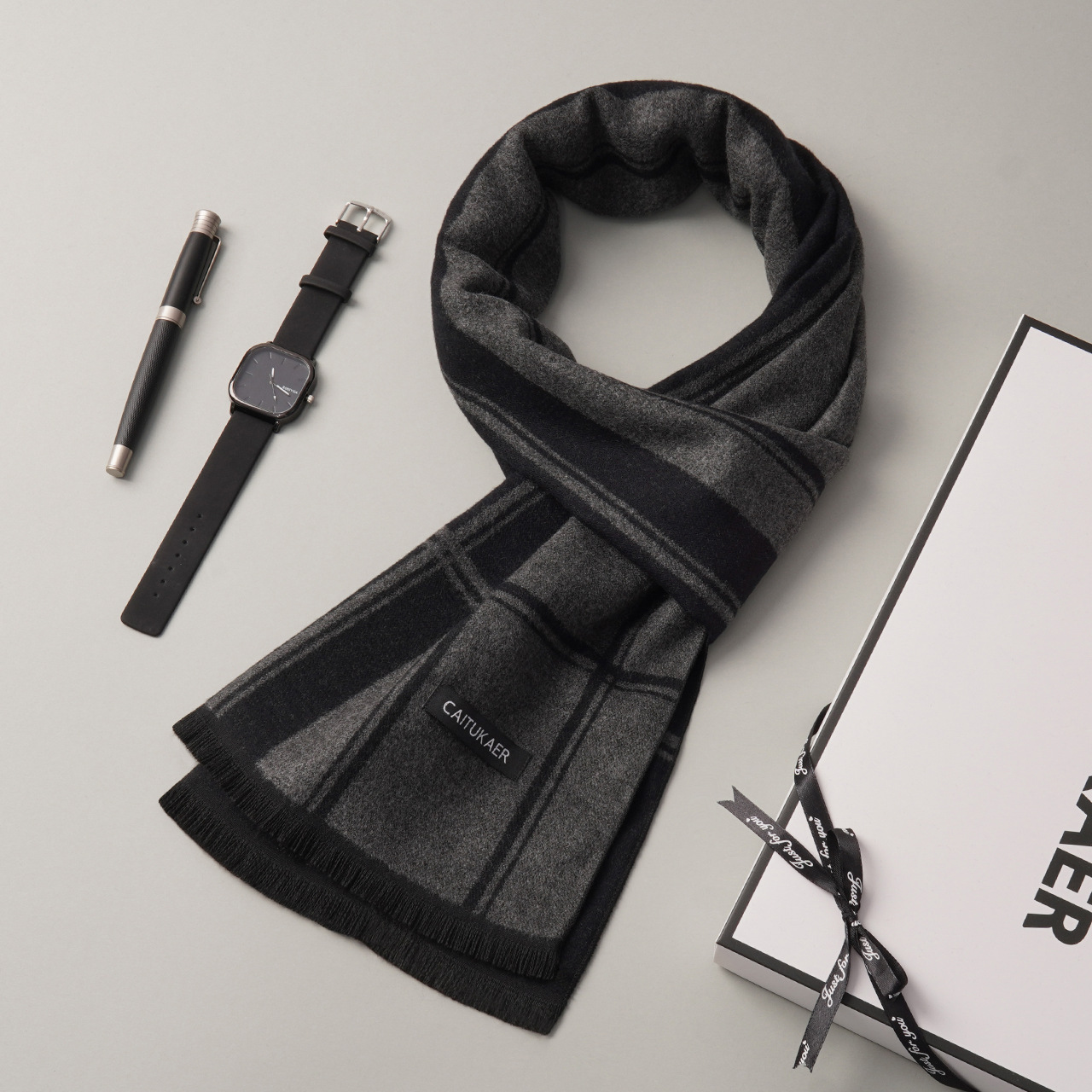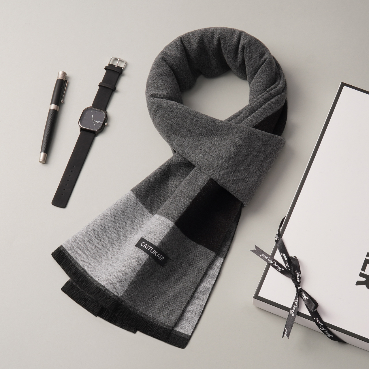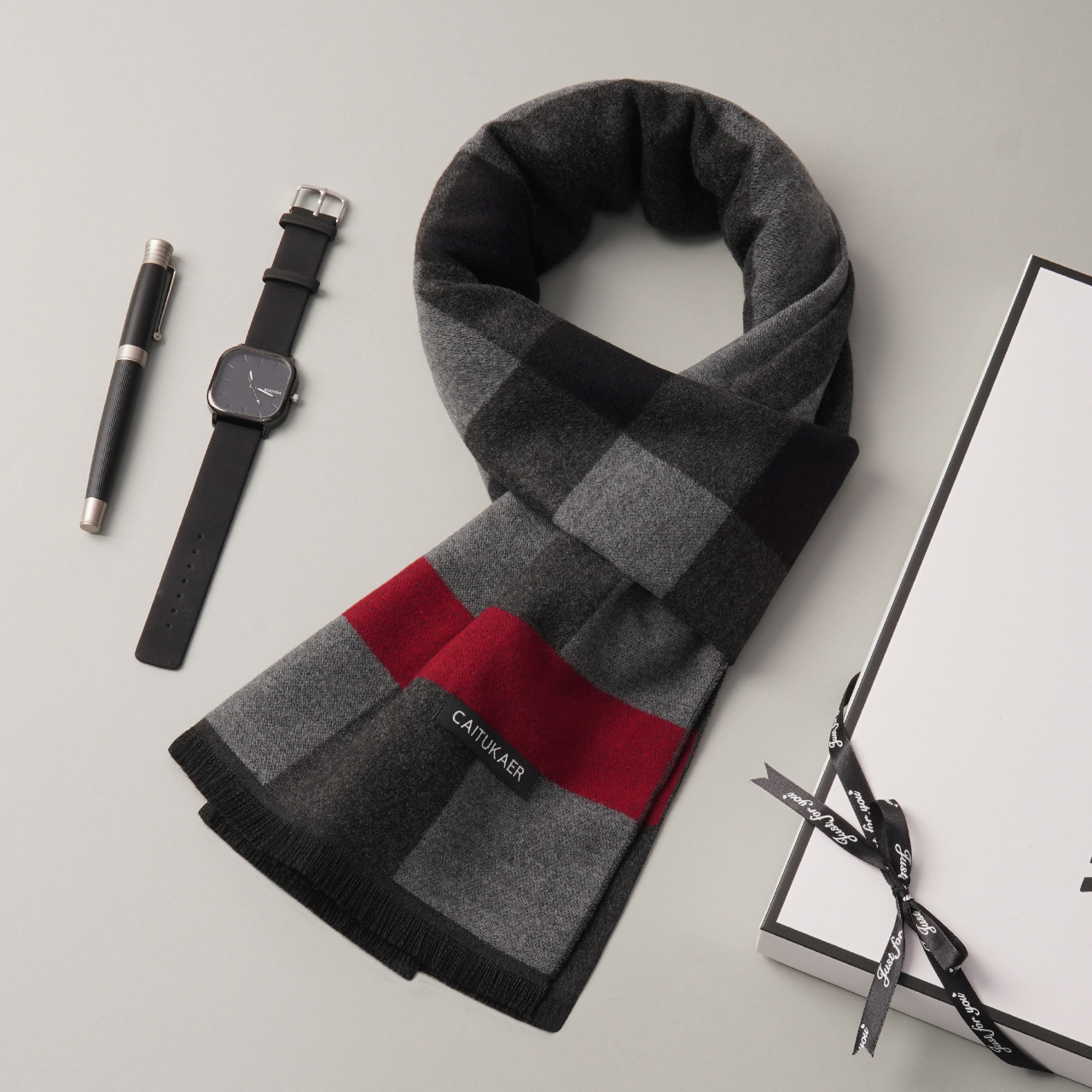 가을과 겨울 얇은 비즈니스 남성 스카프 청소년 모든 경기 패션 격자 무늬 따뜻한 캐주얼 스카프 선물 상자