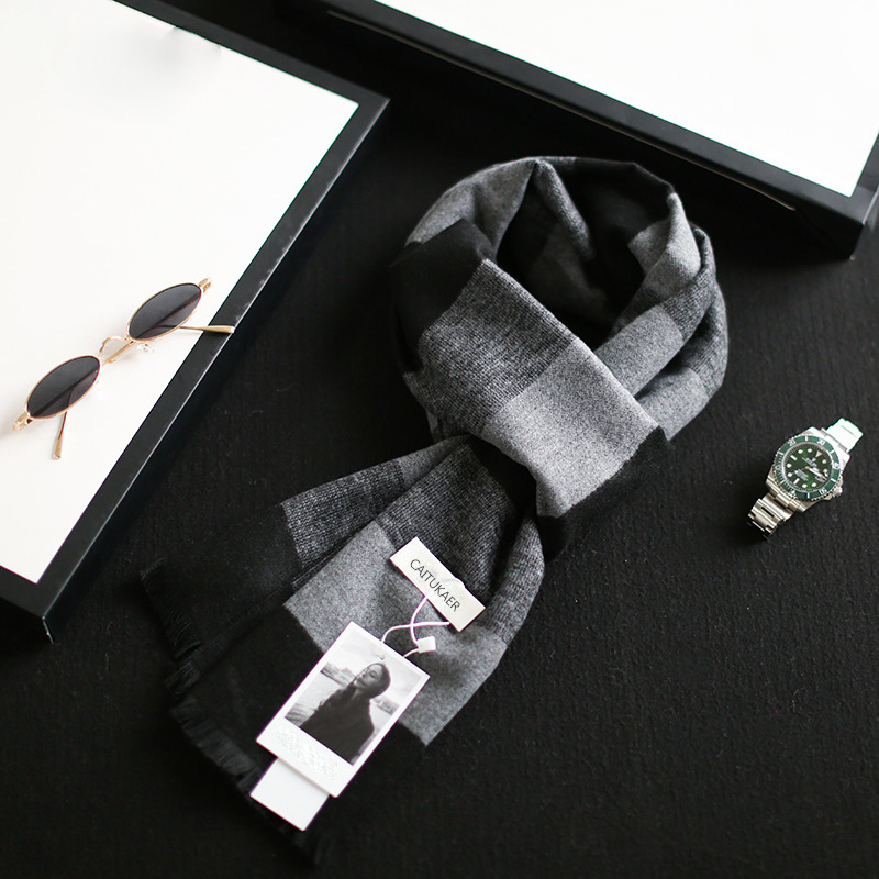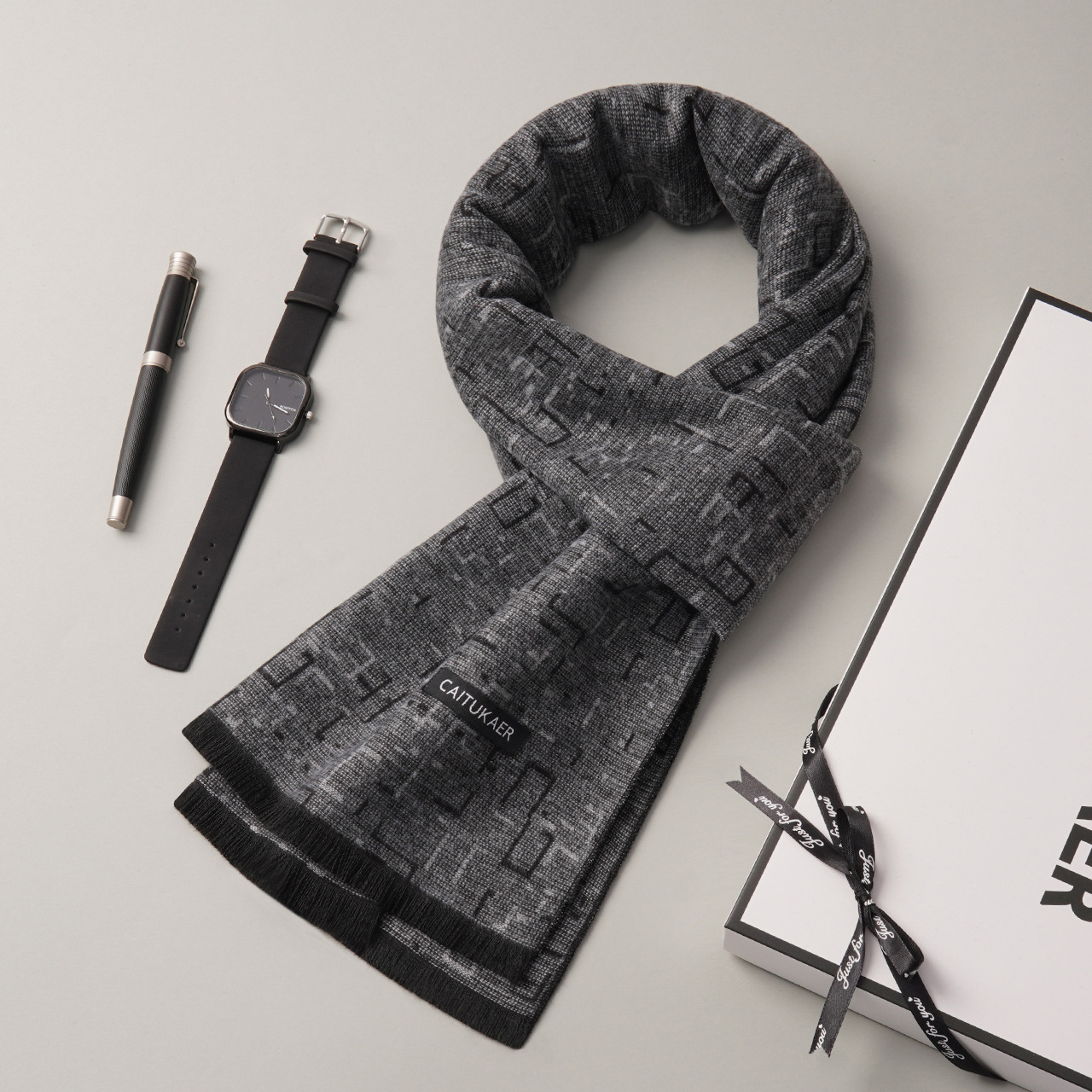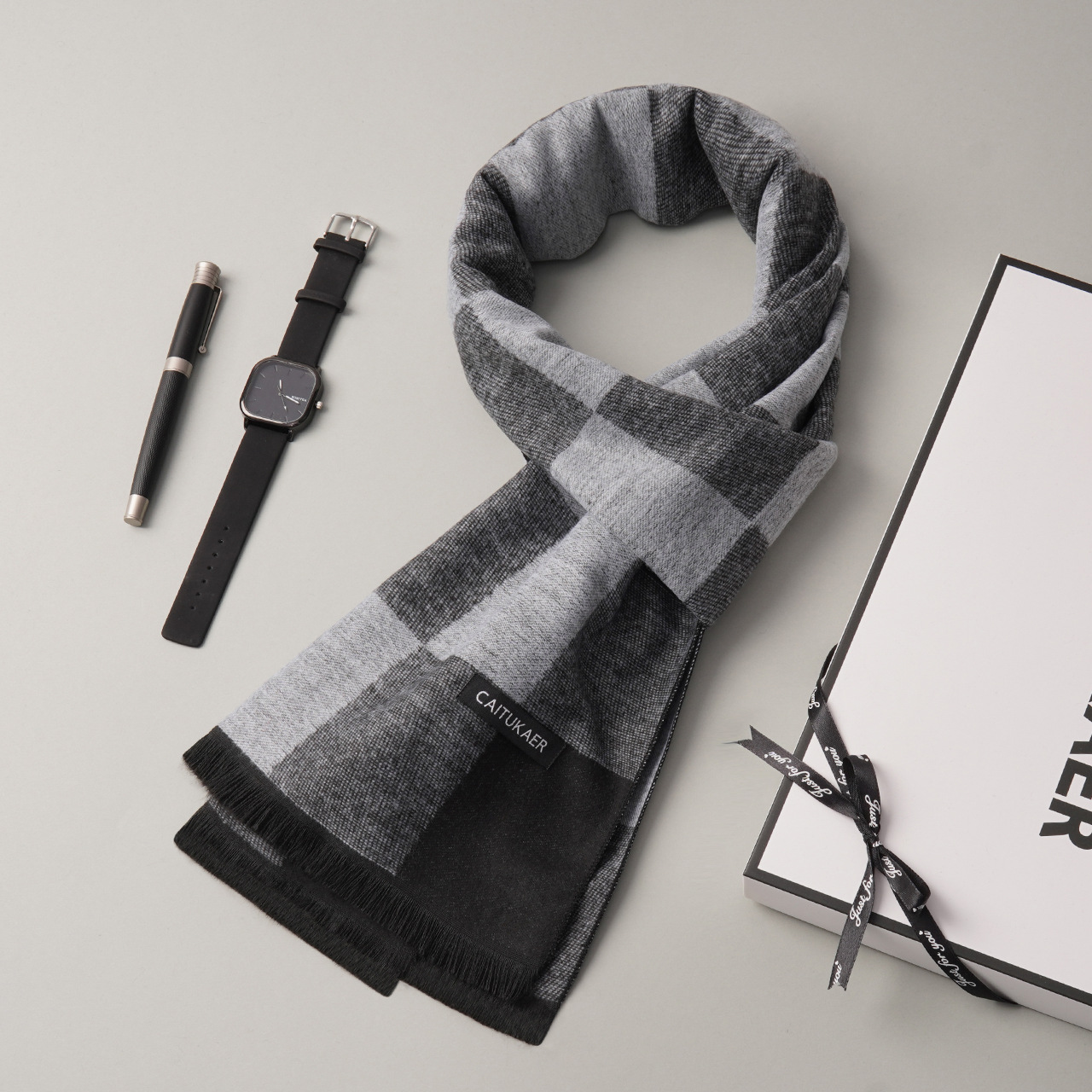 가을과 겨울 얇은 비즈니스 남성 스카프 청소년 모든 경기 패션 격자 무늬 따뜻한 캐주얼 스카프 선물 상자스토어 가기