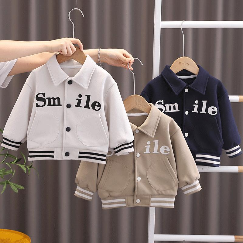 1-5 세 아기 소년 가을 새 소년 옷깃 편지 프린트 긴 소매 카디건 재킷 어린이 캐주얼 코트