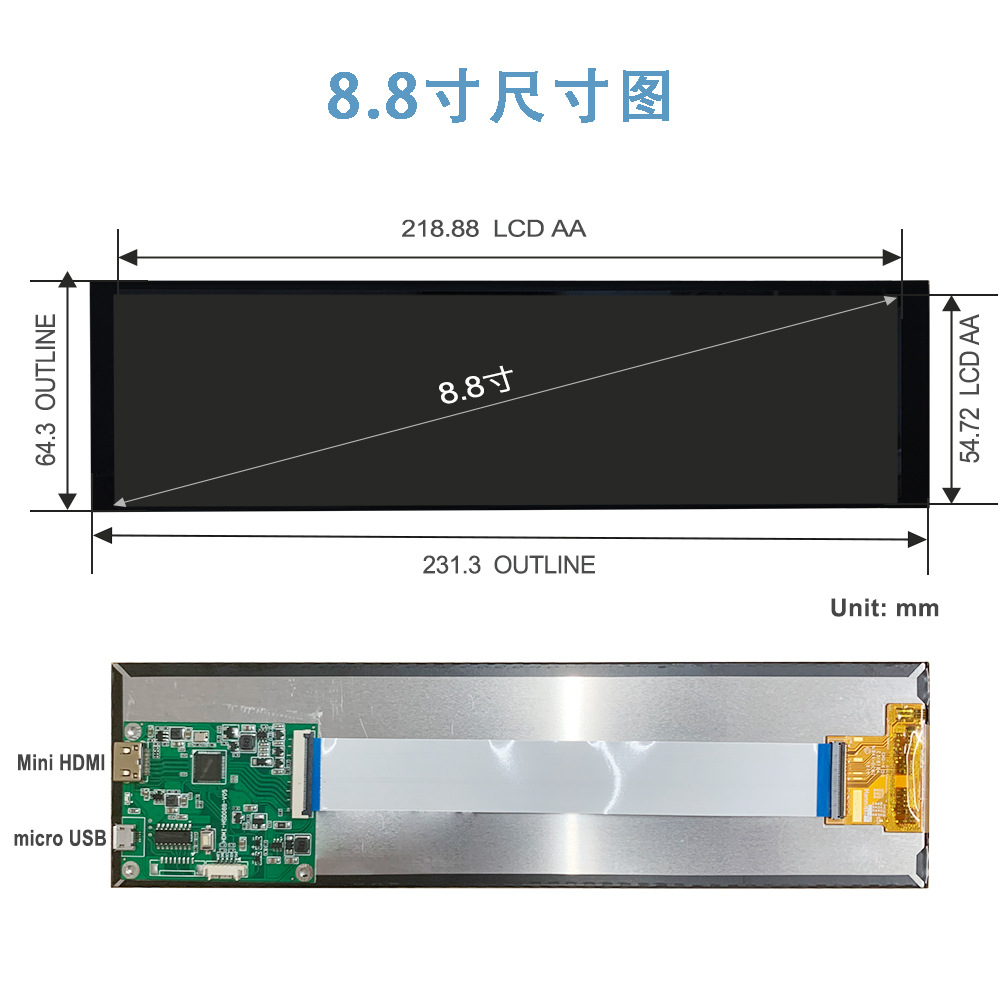 • 8.8inch 베어 스크린 + 드라이버 보드
