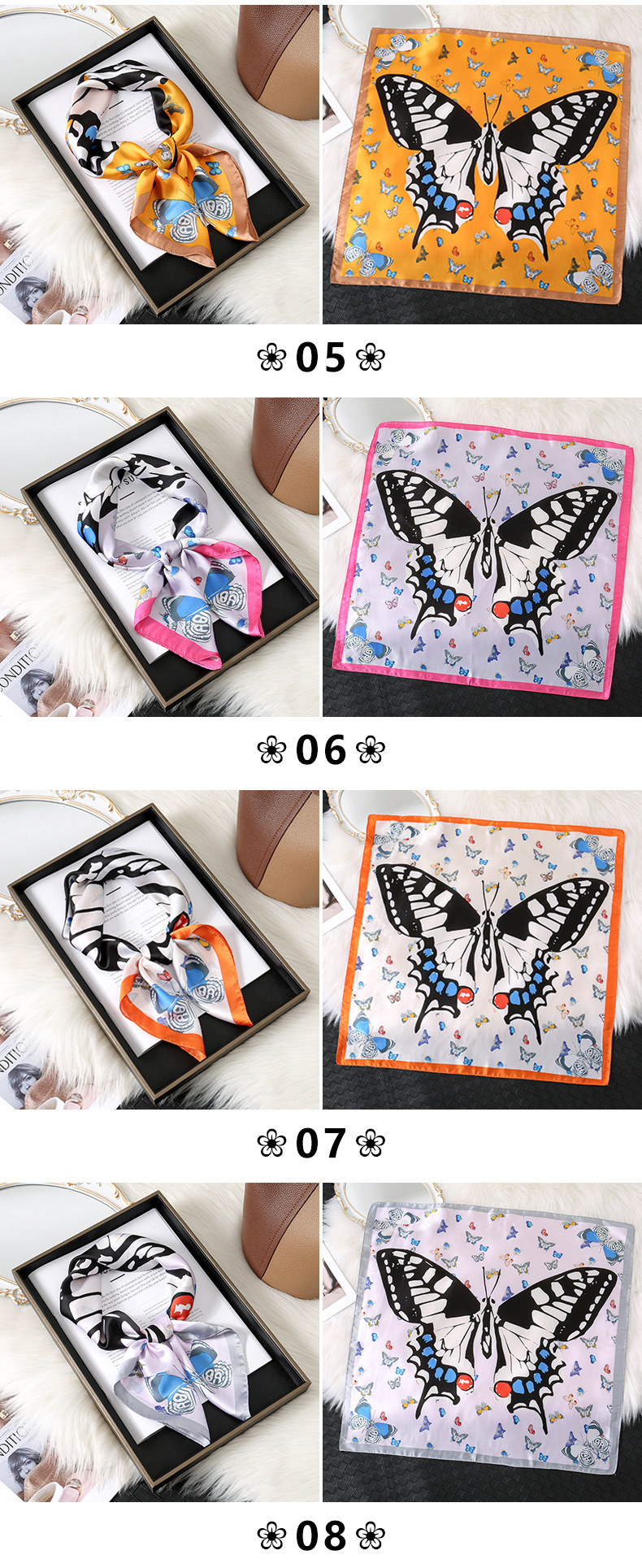 소주-항주 실크 꽃 나비 트렌드 스카프 고급 감각 방지 조커 복고풍 얇은 기질 스퀘어 목도리 도매스토어 가기