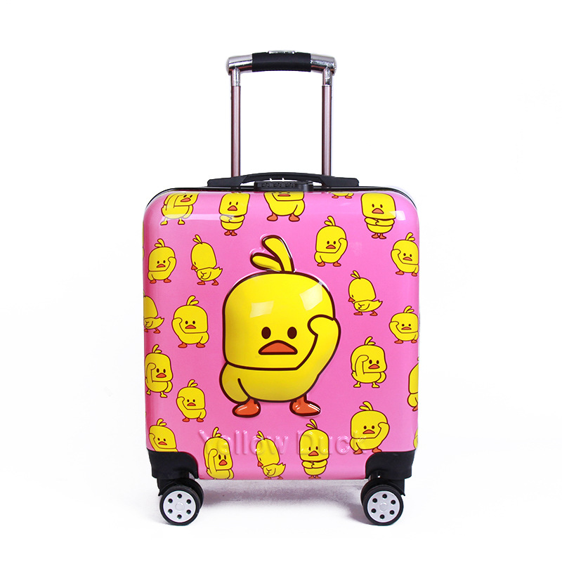 공장 도매 20inch 어린이 탑승 케이스 만화 작은 노란색 오리 가방 비밀번호 잠금 인쇄 가능한 패턴 인쇄 단어스토어 가기