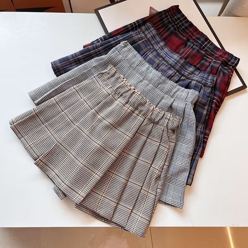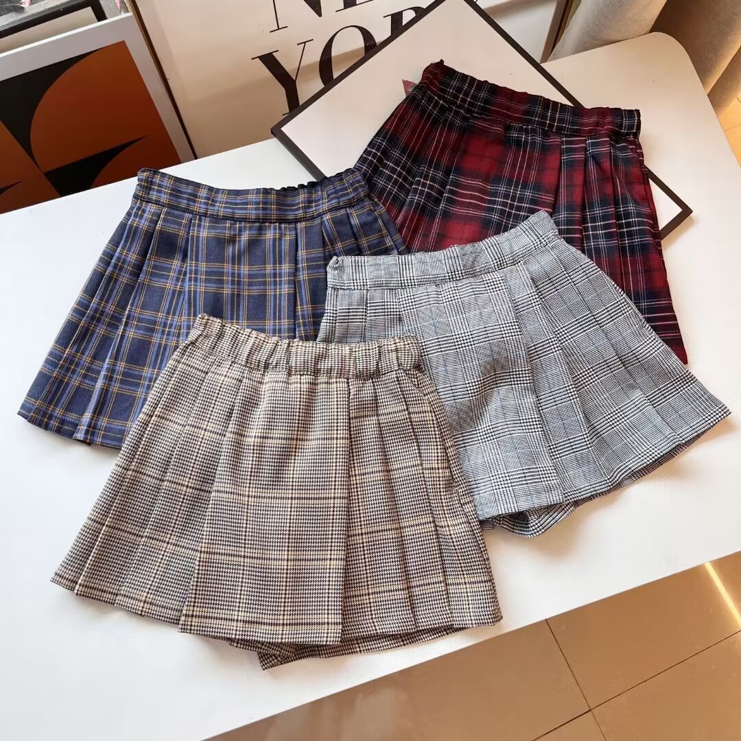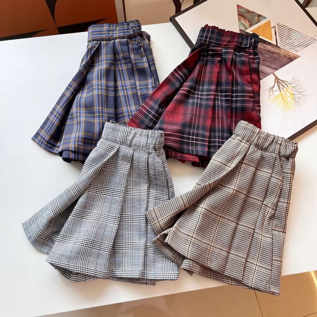 어린이 의류 소녀 격자 무늬 미니 퀼로트/탄성 허리 학생 스커트 주름 바지 스커트 스커트 472151/472706