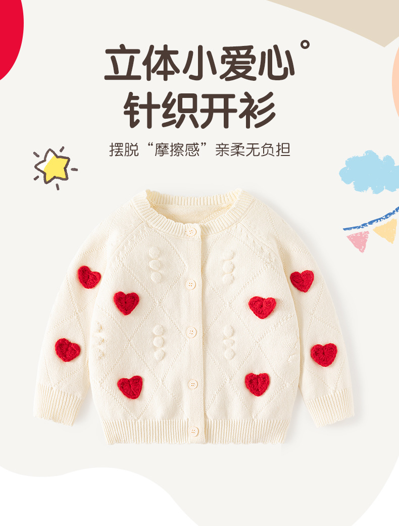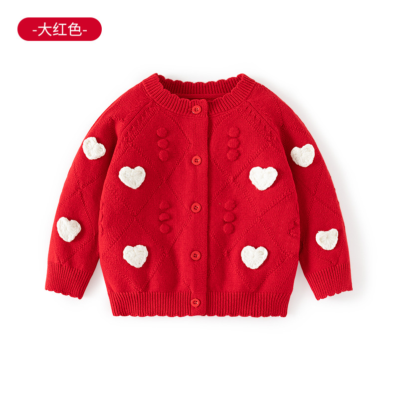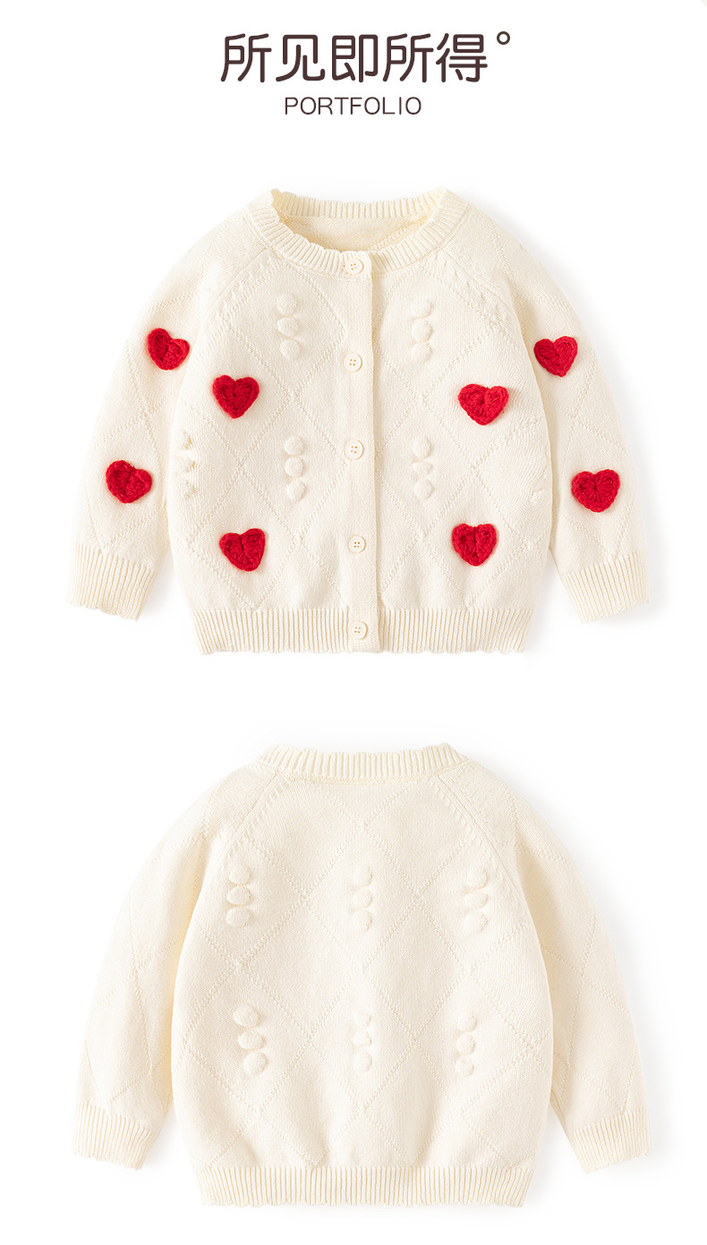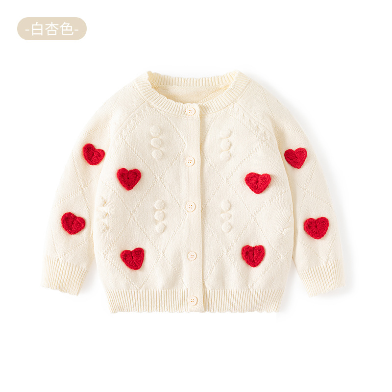 작은 하트 자수 니트 여아 가디건 스웨터 순면 A급 유아 스웨터 봄 가을 여아 상의 코트