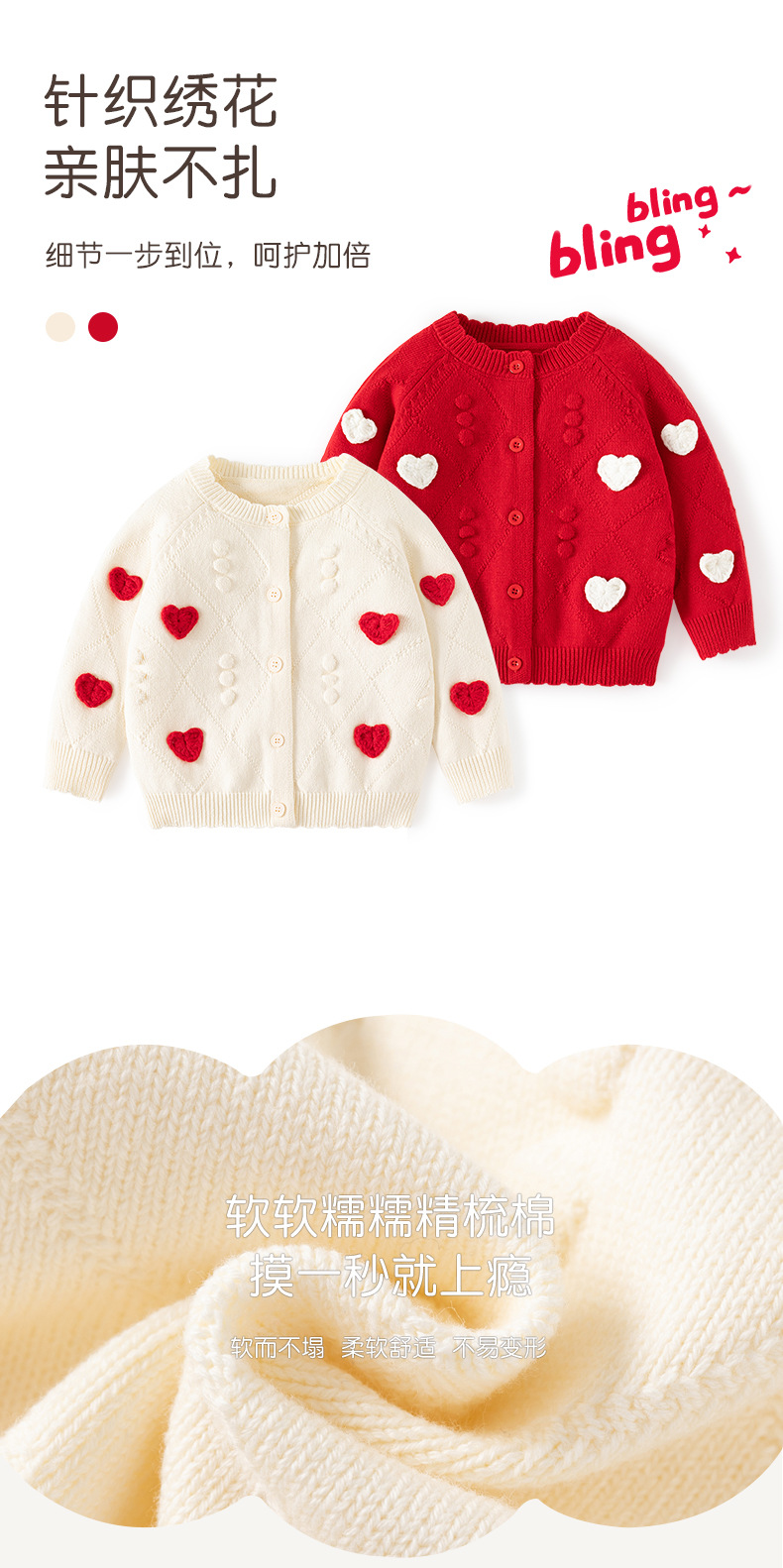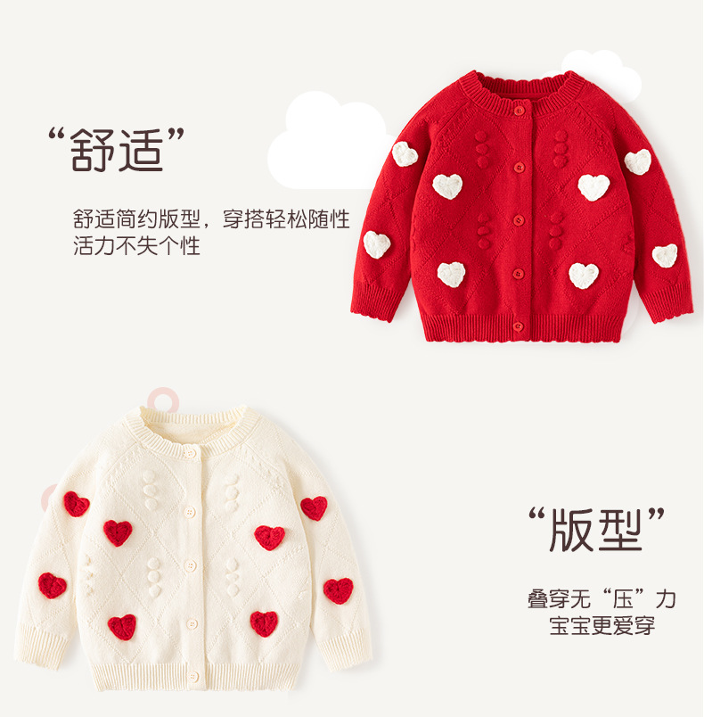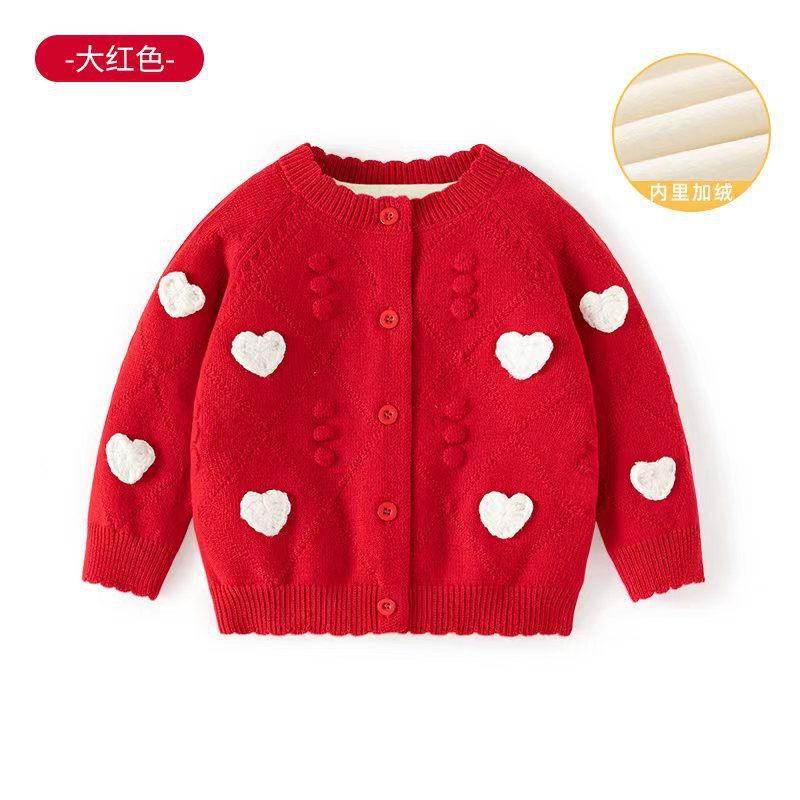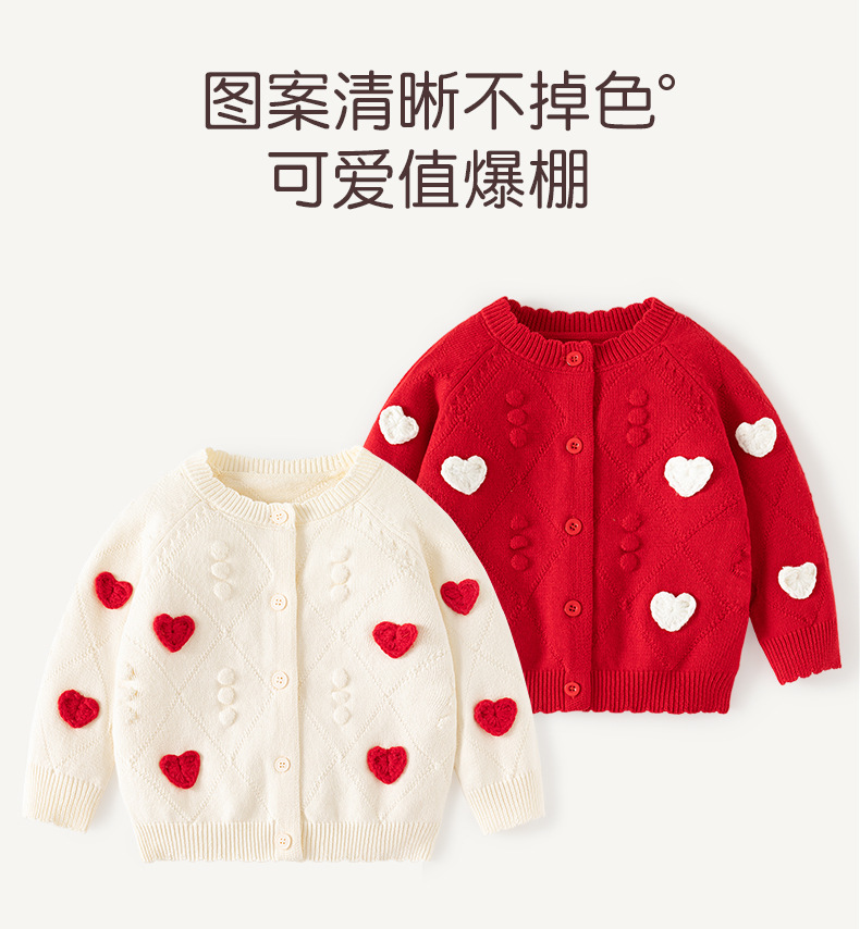 작은 하트 자수 니트 여아 가디건 스웨터 순면 A급 유아 스웨터 봄 가을 여아 상의 코트