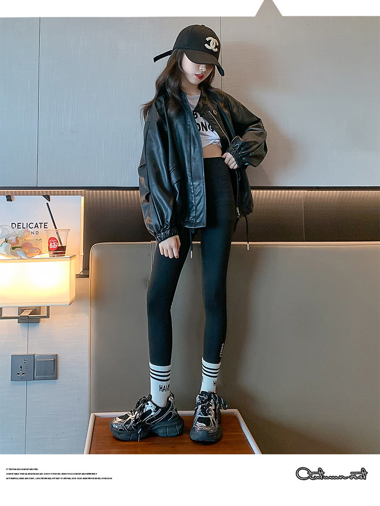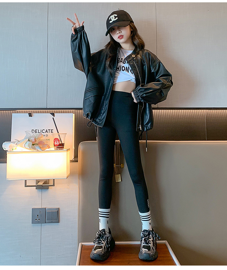소녀 코트 봄과 가을 2024 새로운 도착 가을 어린이 가죽 코트 오토바이 스타일 아기의 가죽 재킷 유행 최고 유행스토어 가기