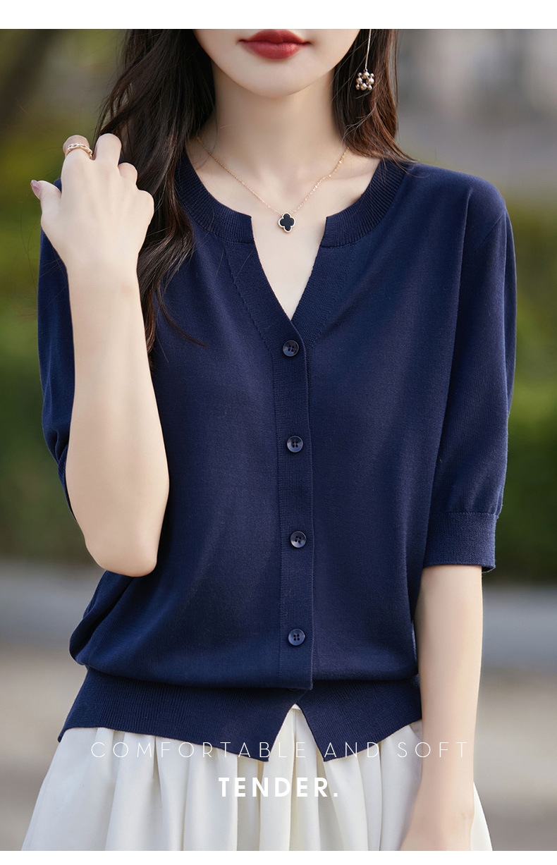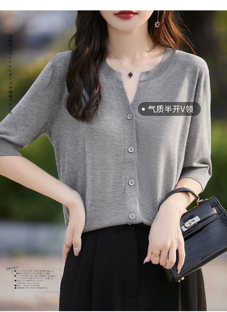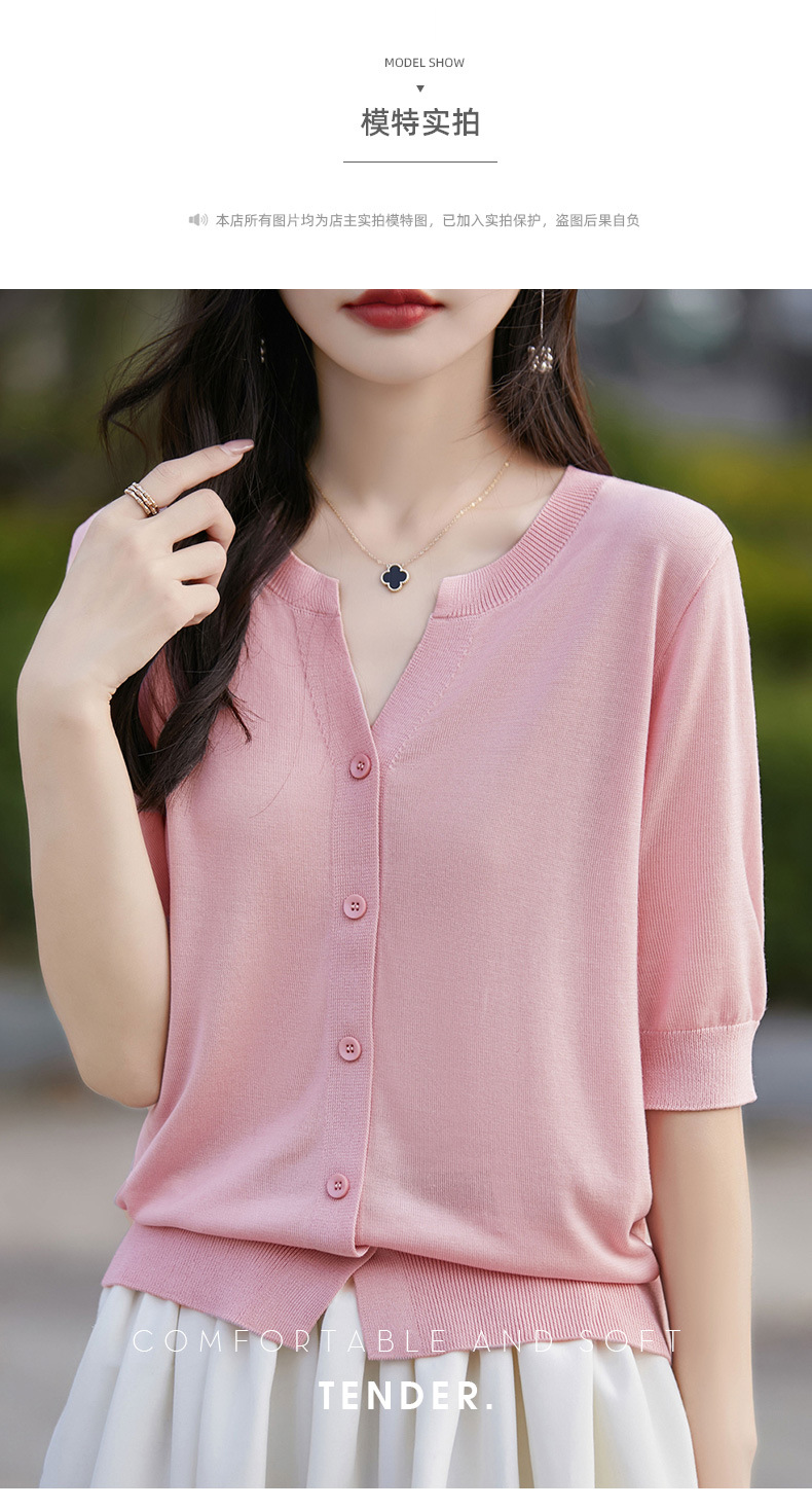 텐셀 하프 슬리브 니트 스웨터 여성용 카디건 가위 칼라 루즈 슬림 핏 새로운 스타일 심플 올 매치 하프 슬리브 탑스토어 가기