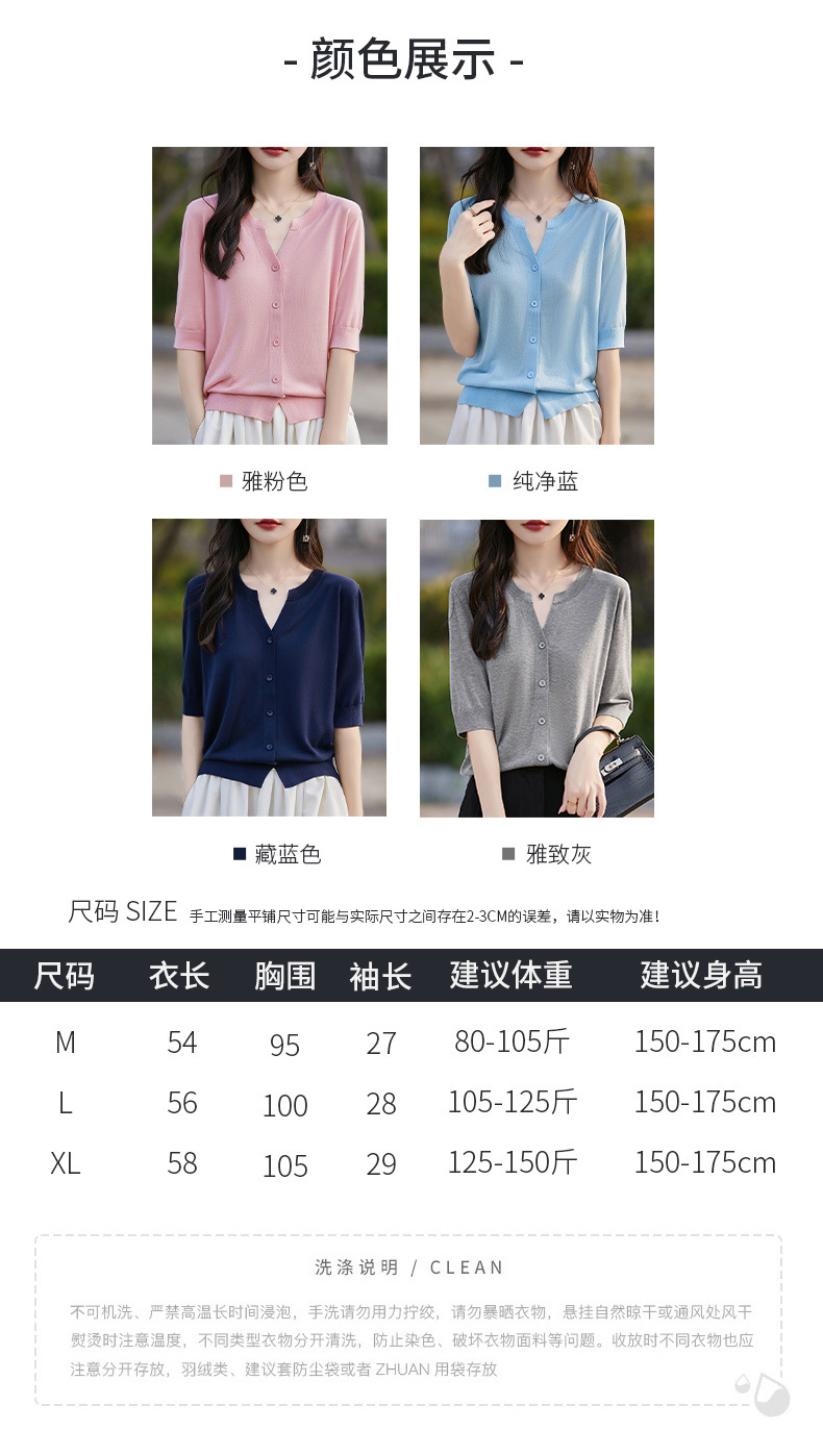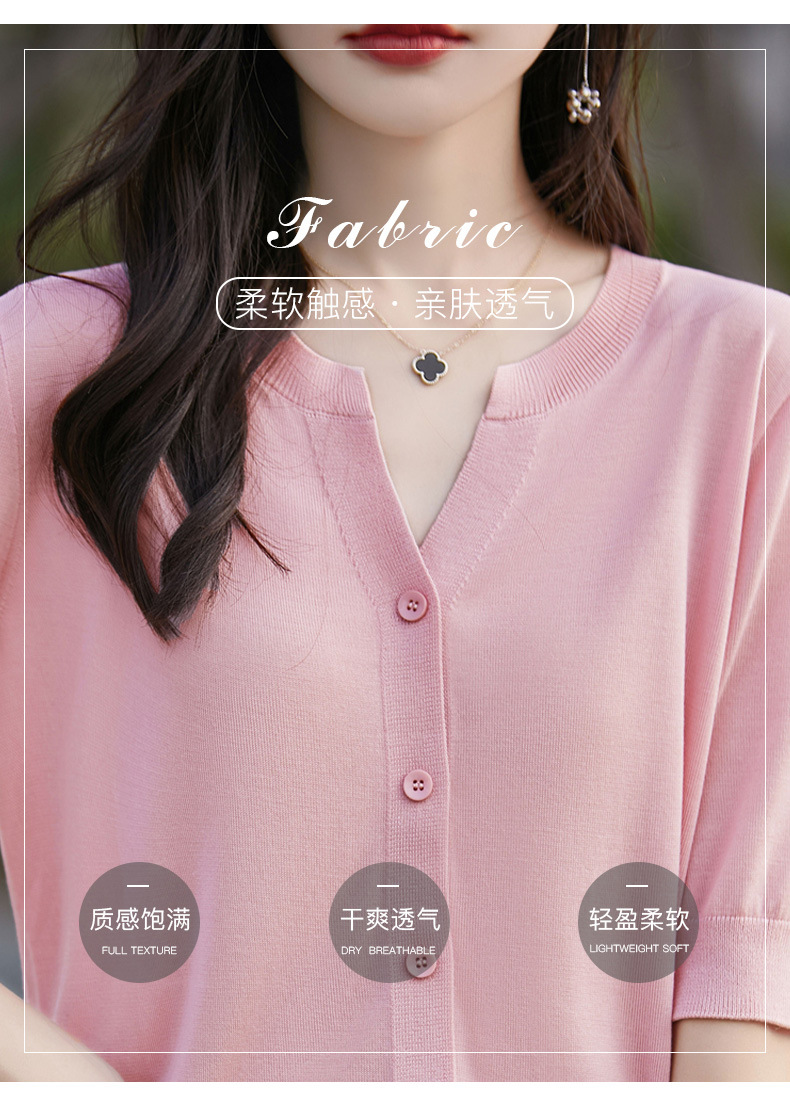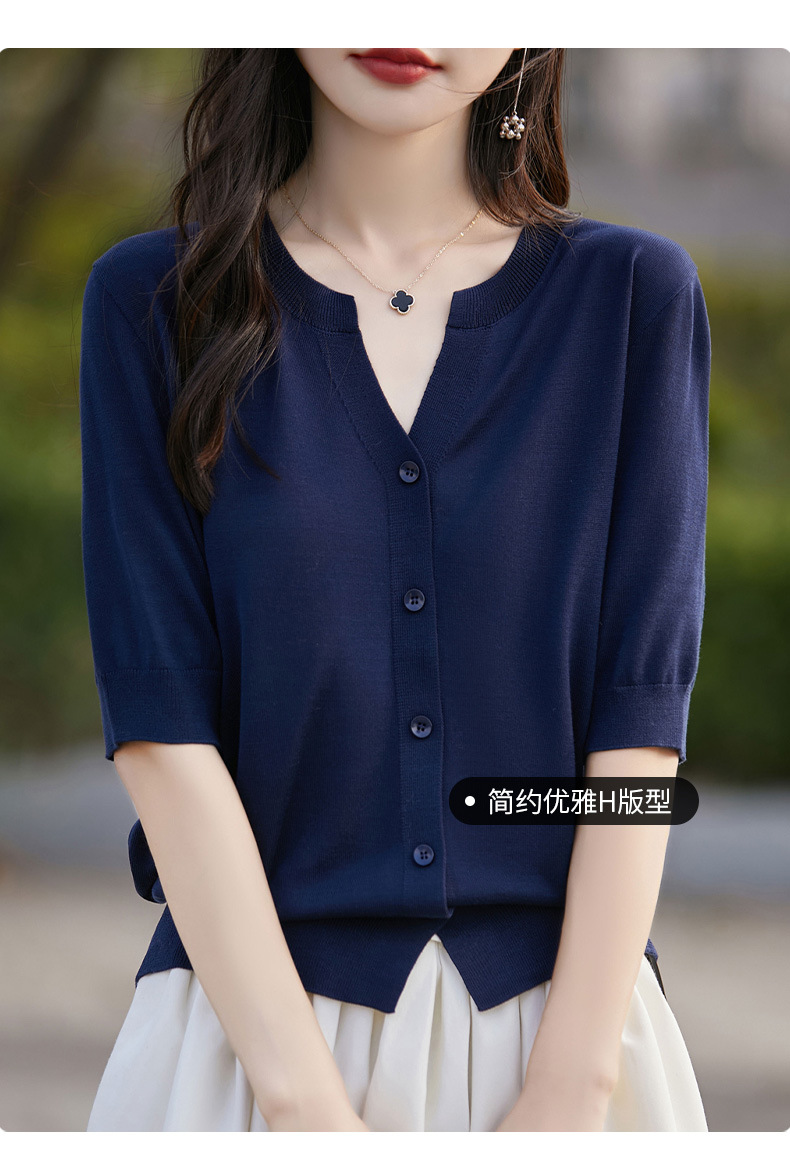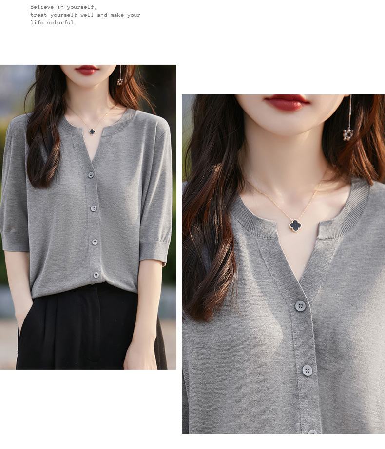 텐셀 하프 슬리브 니트 스웨터 여성용 카디건 가위 칼라 루즈 슬림 핏 새로운 스타일 심플 올 매치 하프 슬리브 탑스토어 가기
