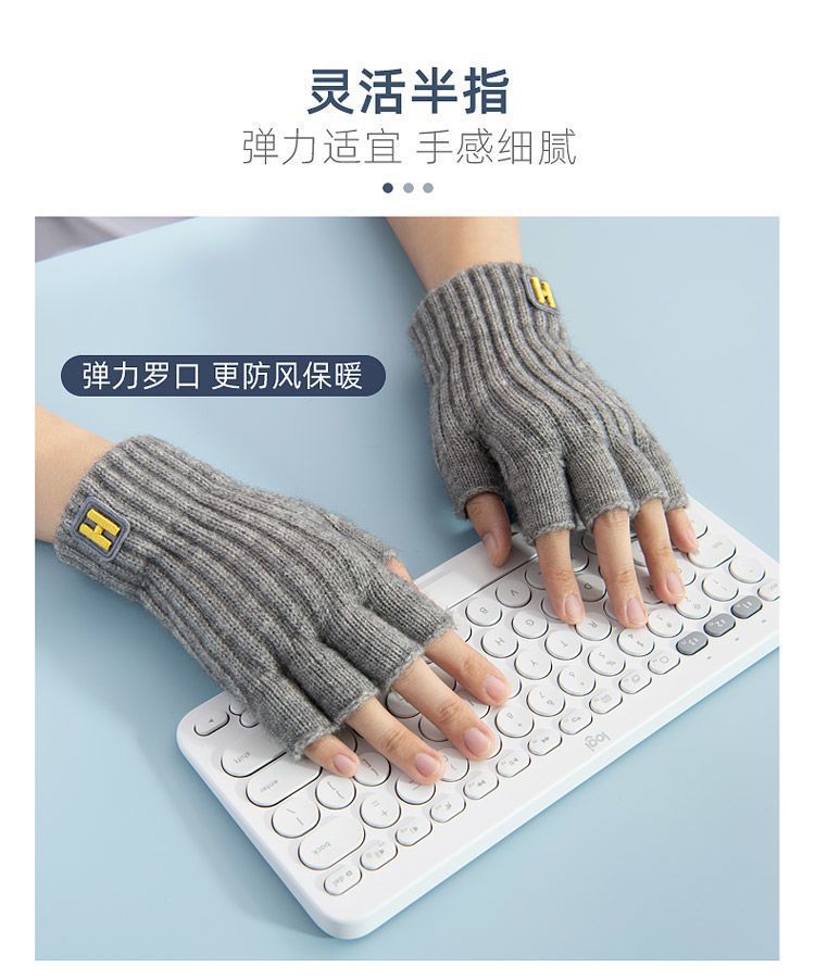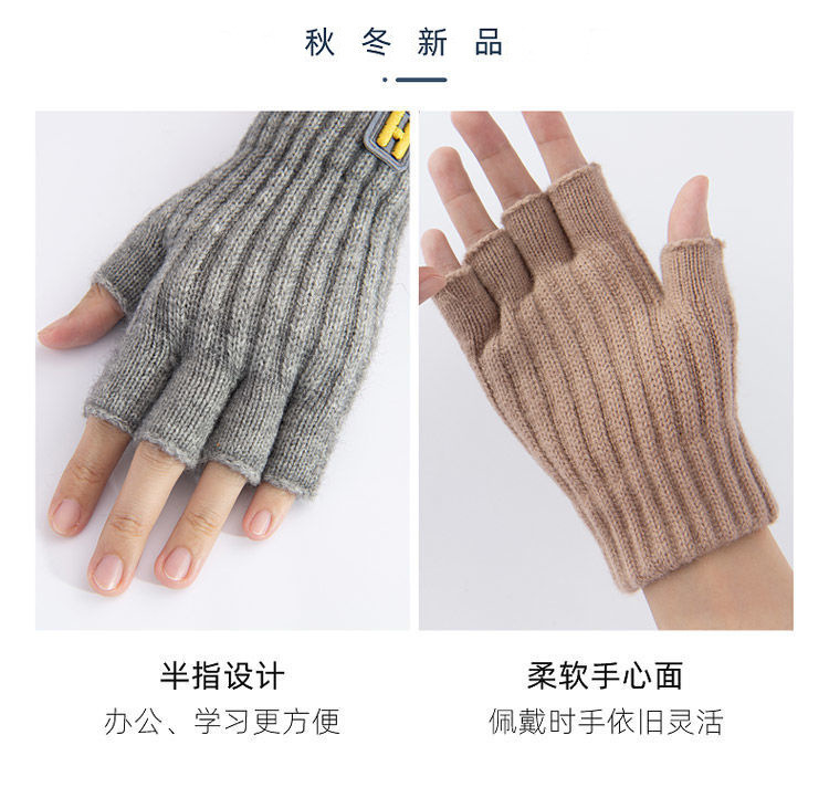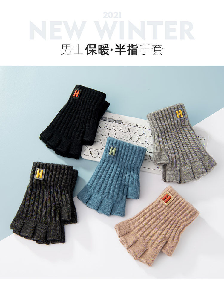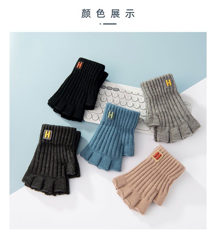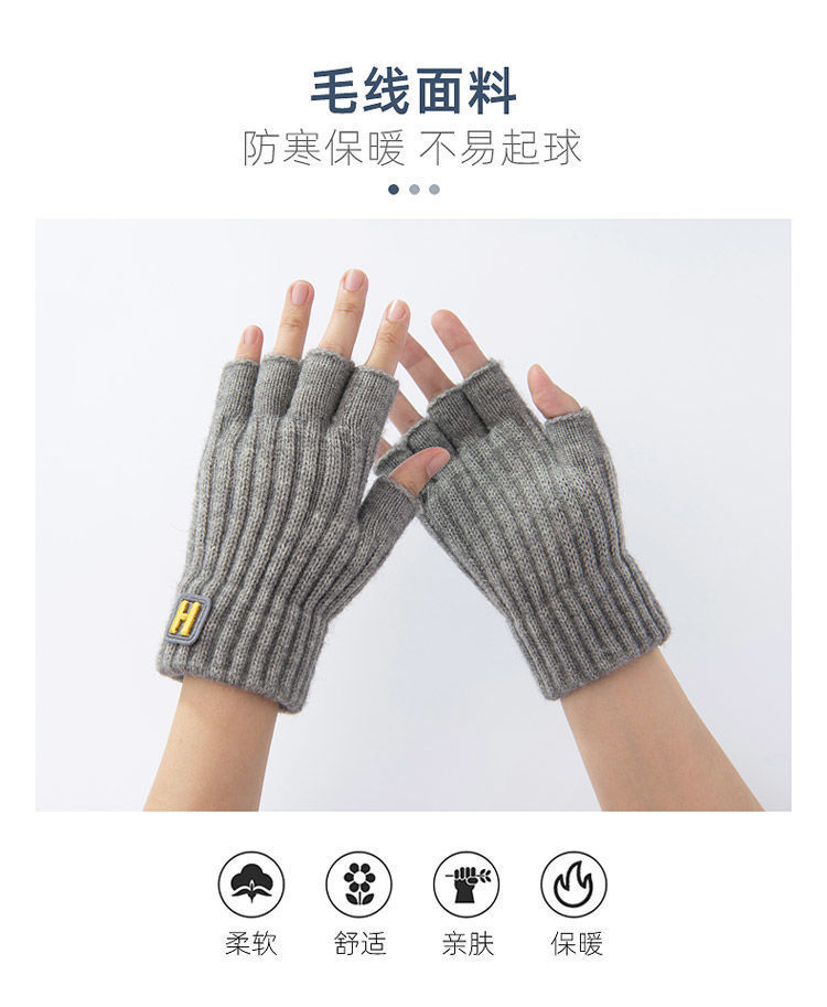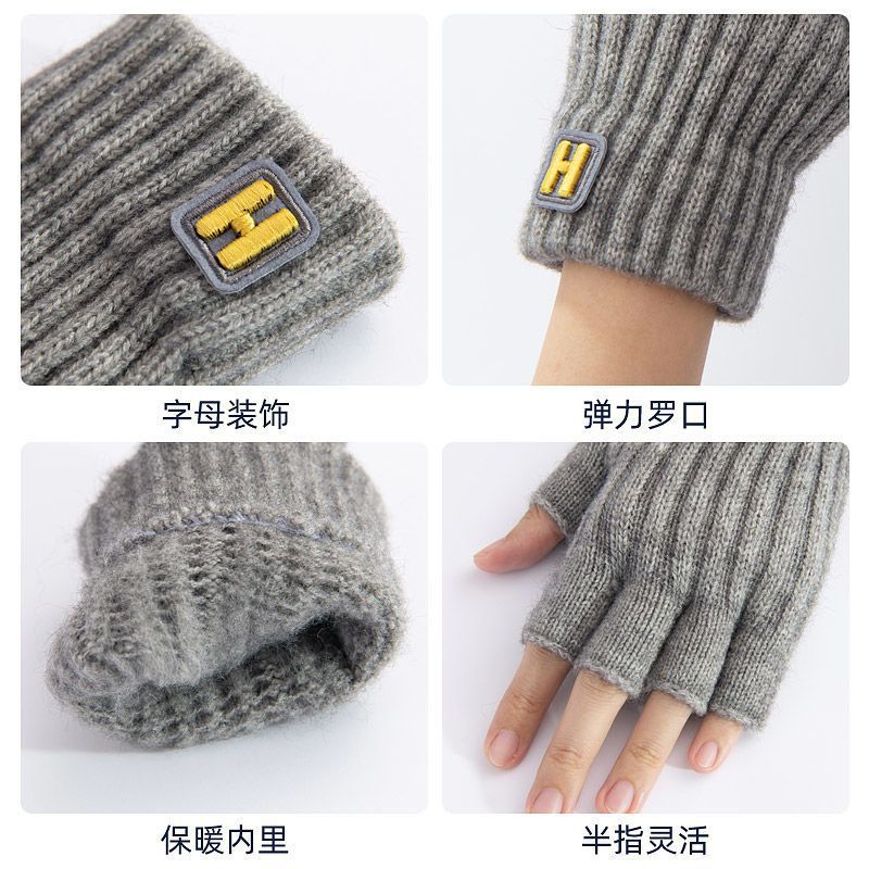 반손가락 니트 장갑, 손가락 노출형, 방한, H 라벨, 두꺼운 보온, 공장제작, 터치스크린 가능, 성인용스토어 가기