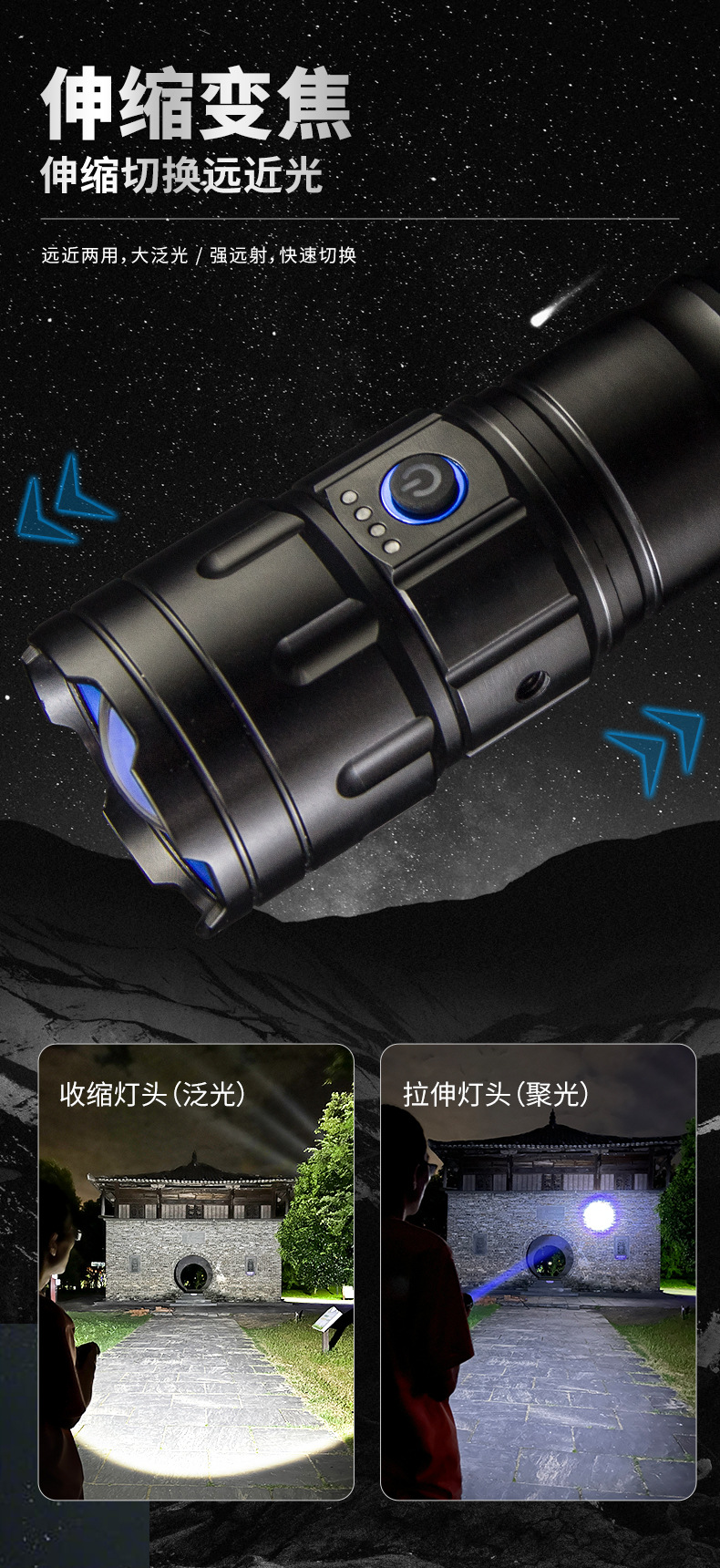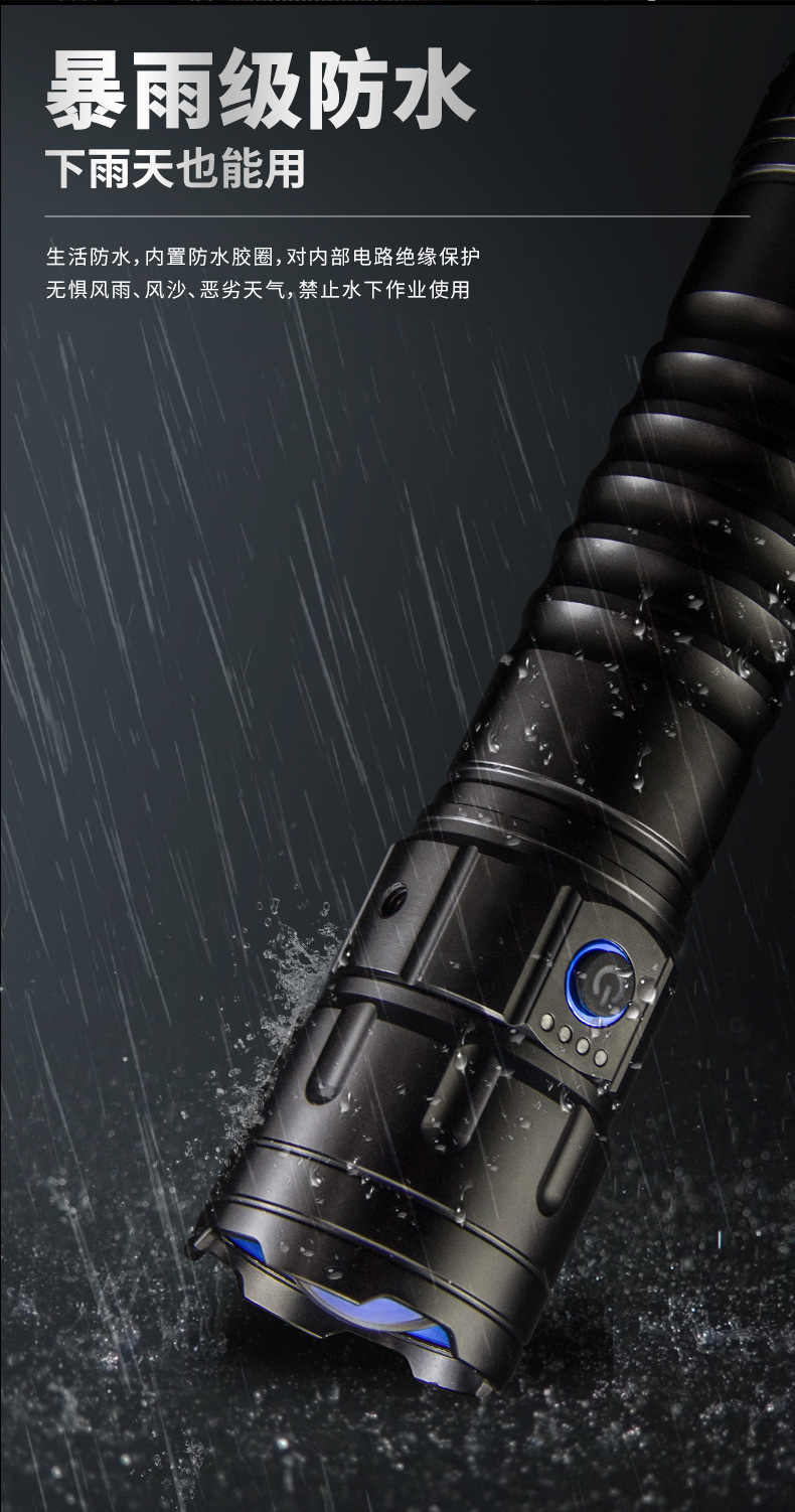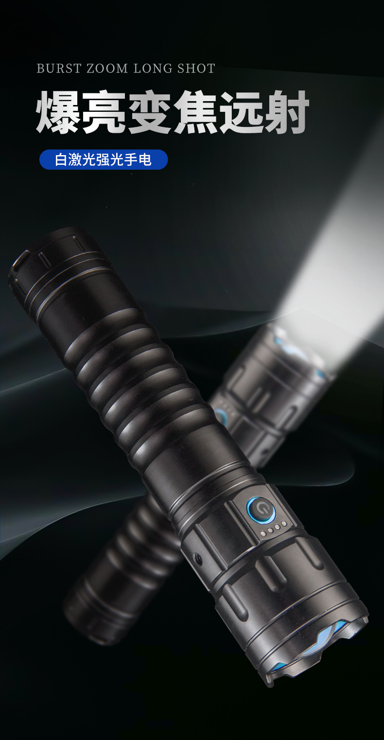국경을 넘는 강한 가벼운 장거리 줌 손전등 흰색 레이저 야외 순찰 모험 다기능 휴대용 고출력 스포트라이트