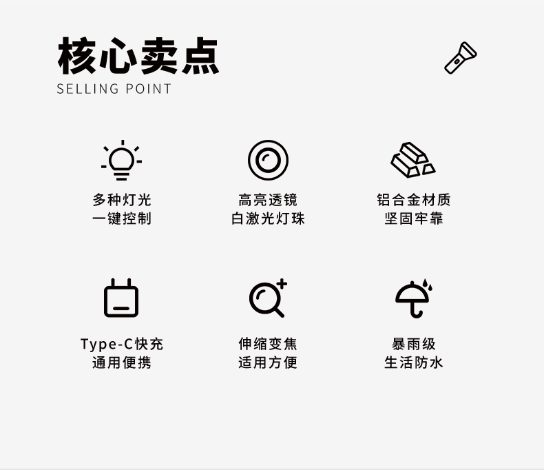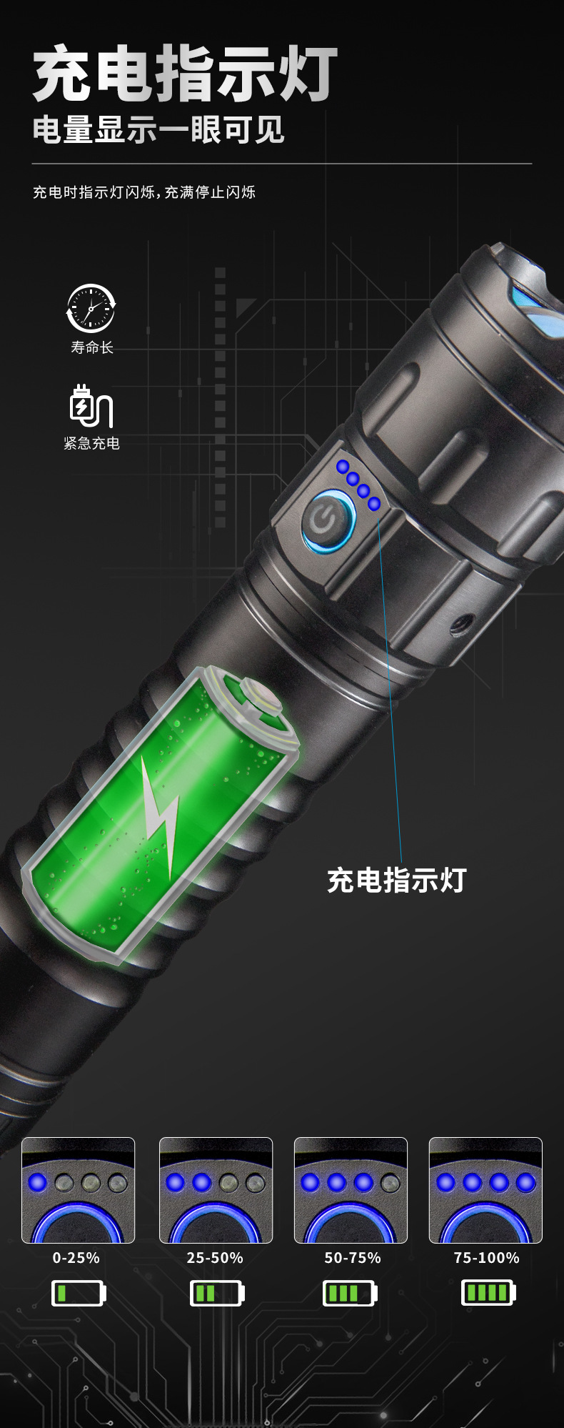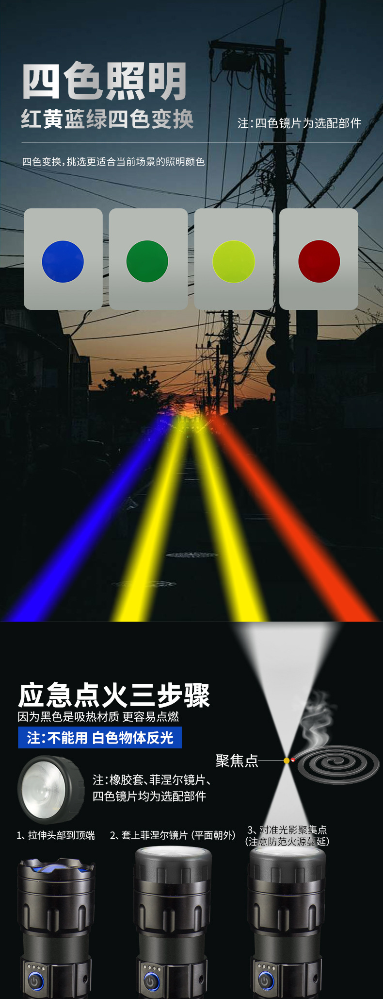 국경을 넘는 강한 가벼운 장거리 줌 손전등 흰색 레이저 야외 순찰 모험 다기능 휴대용 고출력 스포트라이트