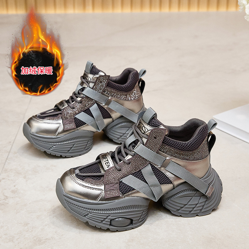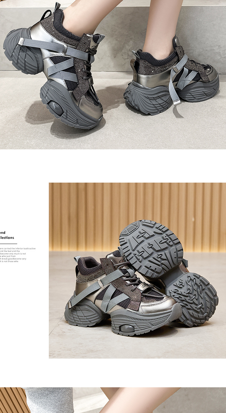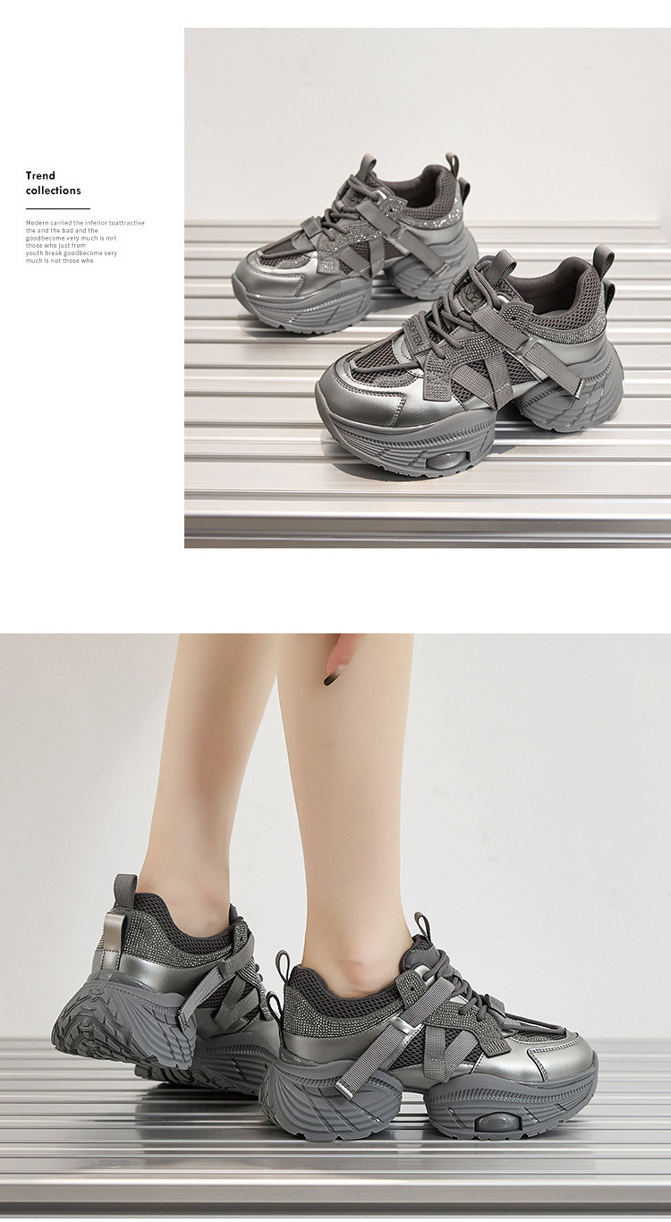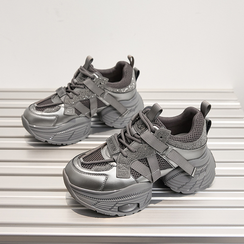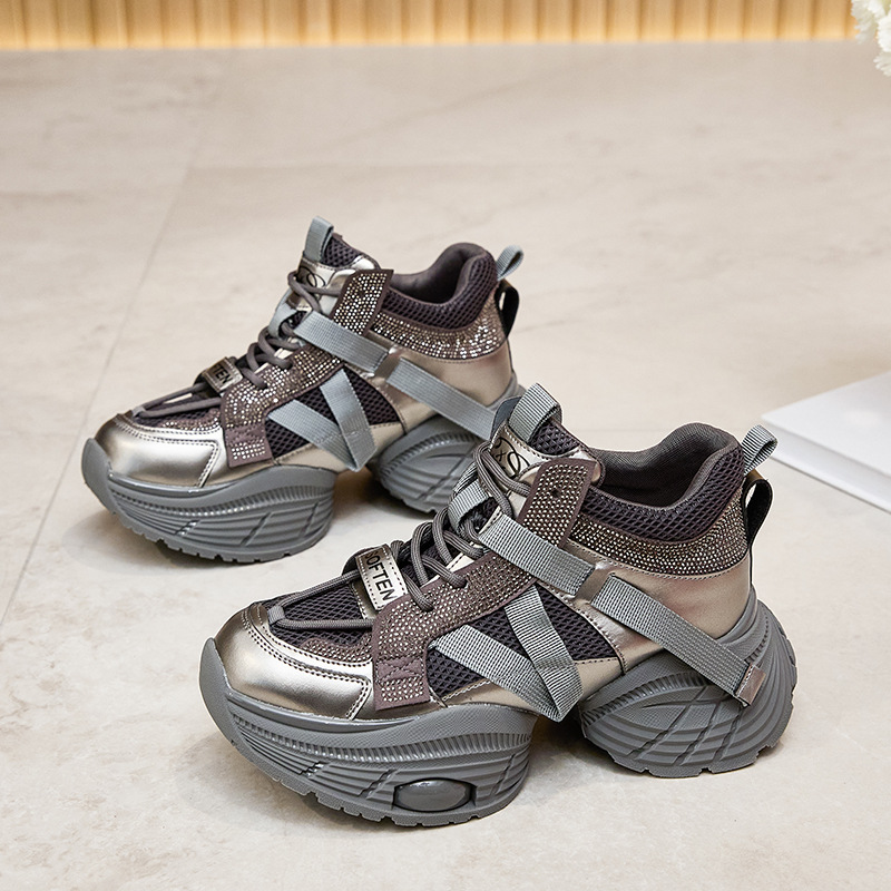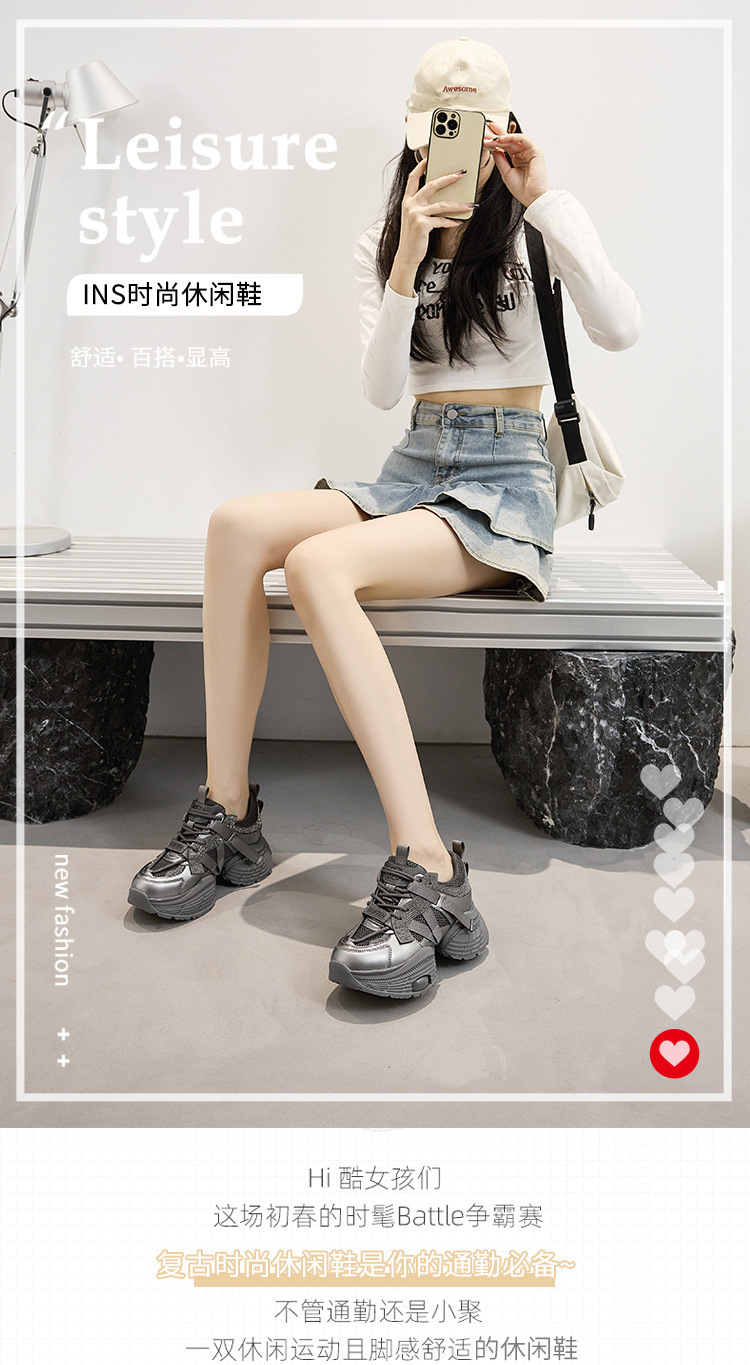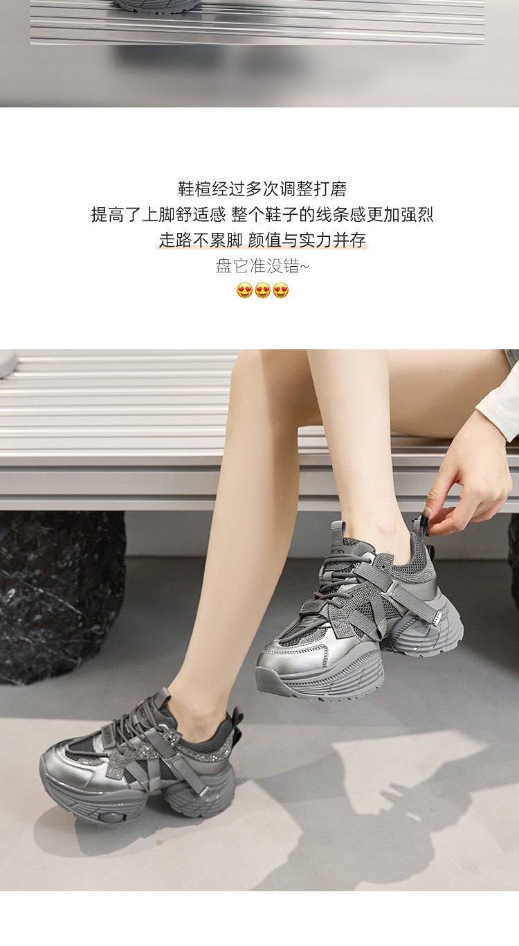 2024 스몰 사이즈 두꺼운 밑창 실버 유행 토르 신발 여성의 새로운 올 매치 캐주얼 신발 높이 증가 경량 운동화 트렌디 신발스토어 가기