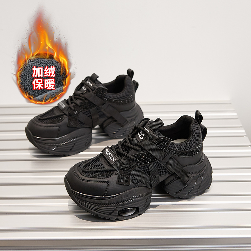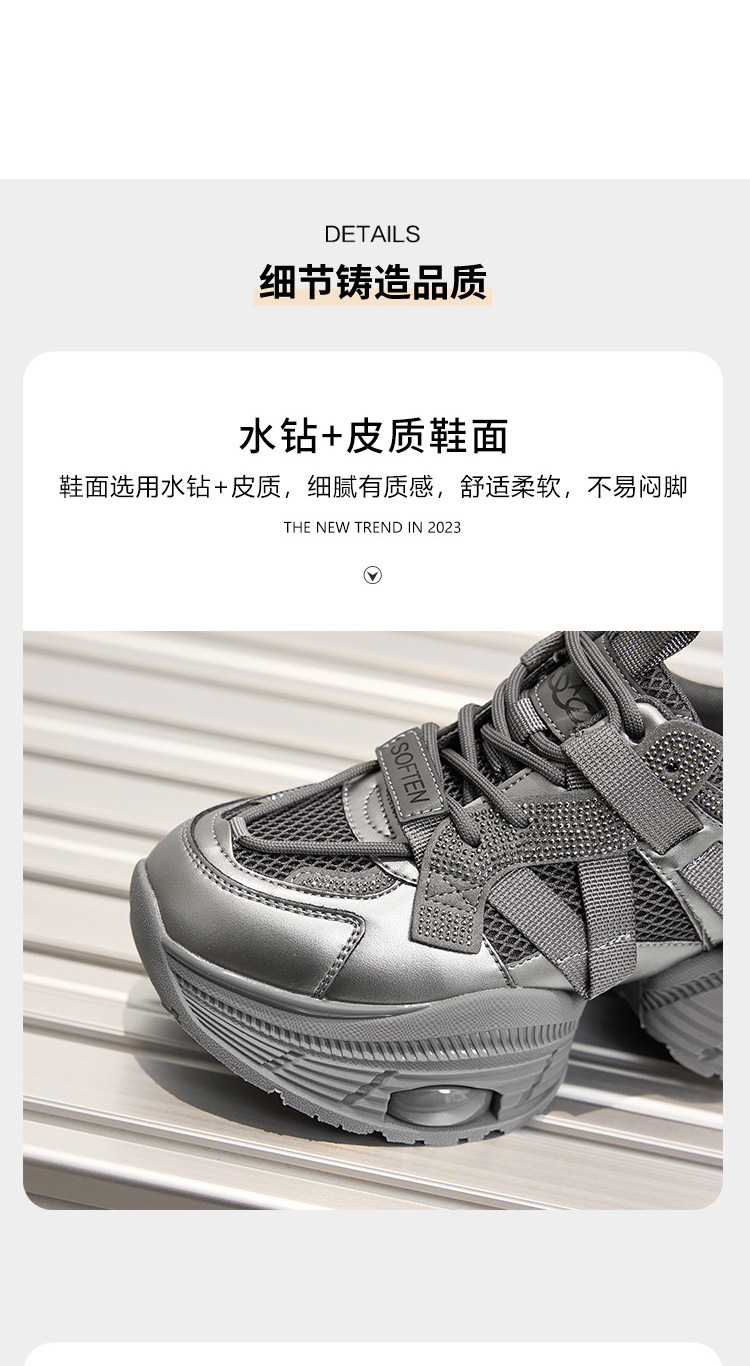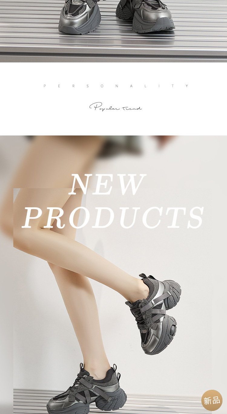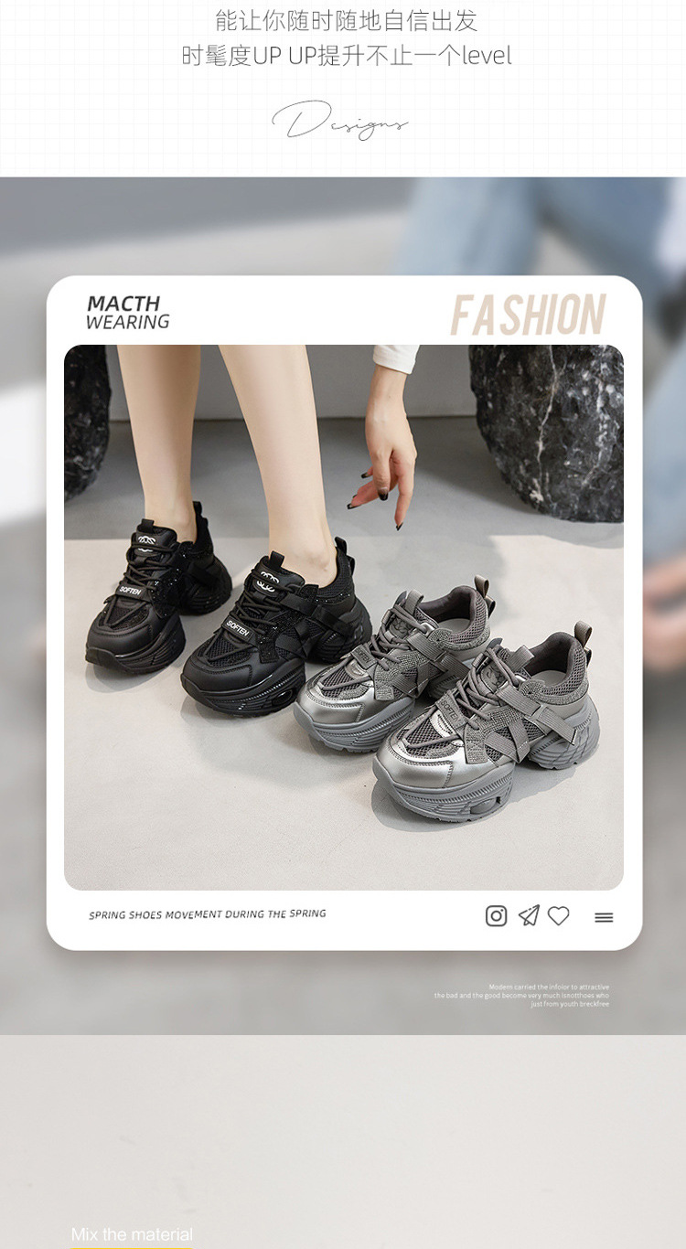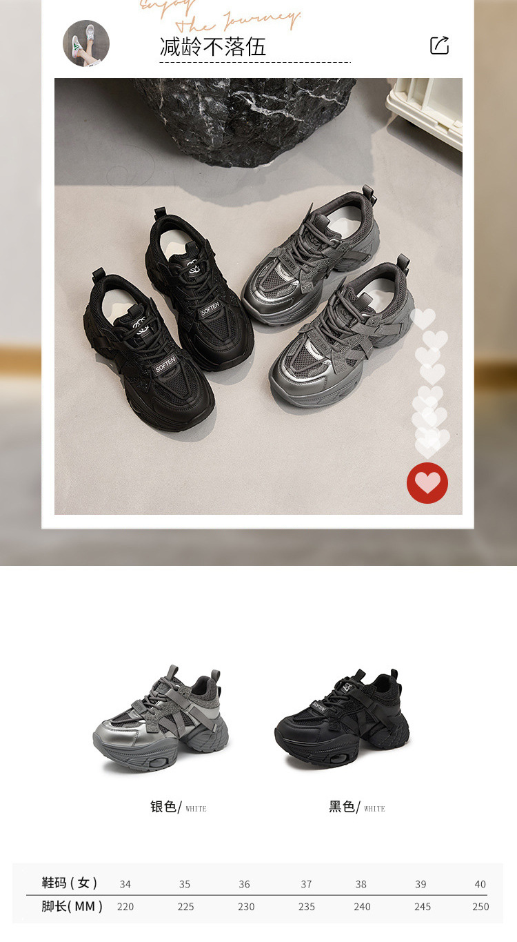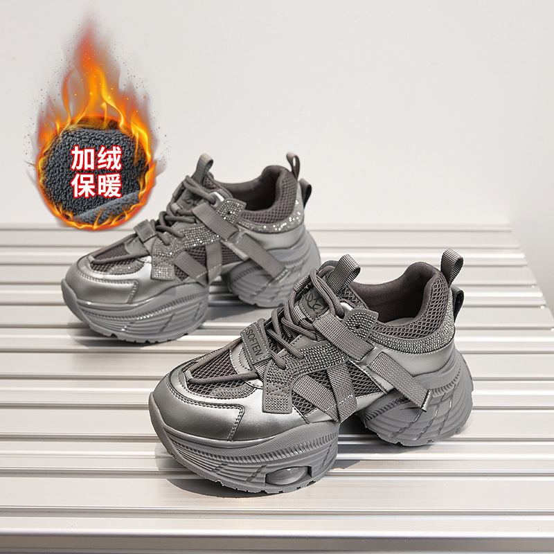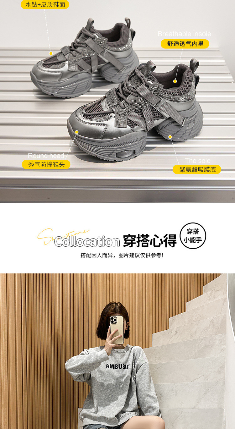 2024 스몰 사이즈 두꺼운 밑창 실버 유행 토르 신발 여성의 새로운 올 매치 캐주얼 신발 높이 증가 경량 운동화 트렌디 신발스토어 가기