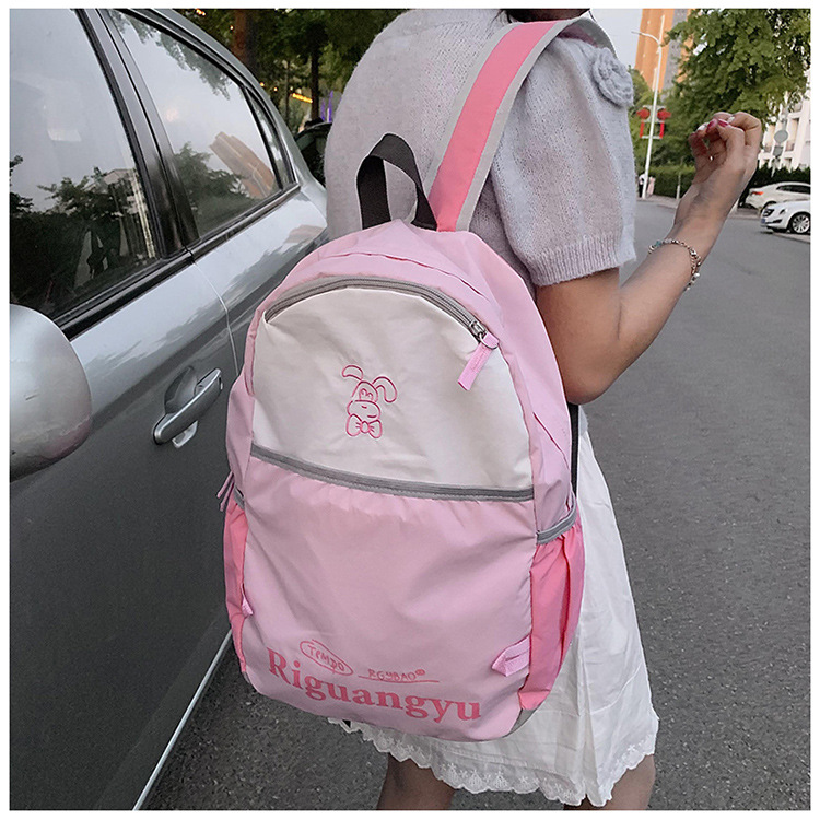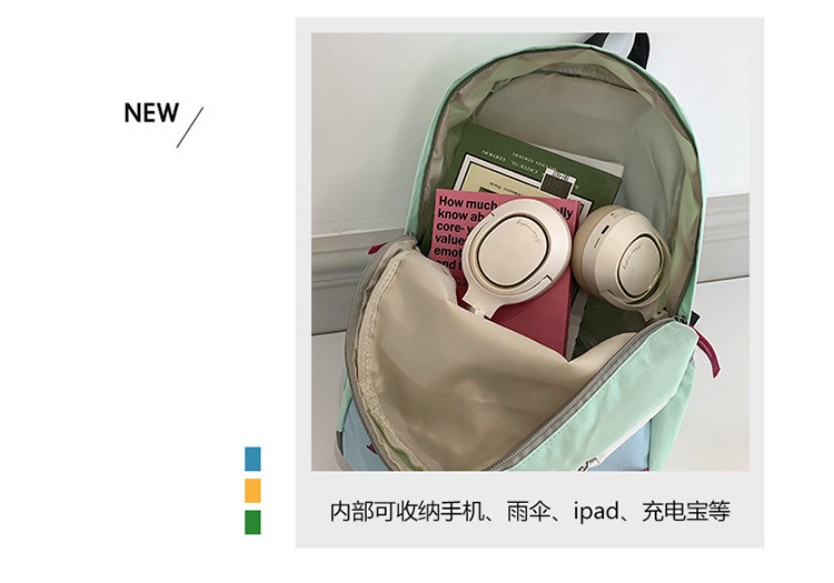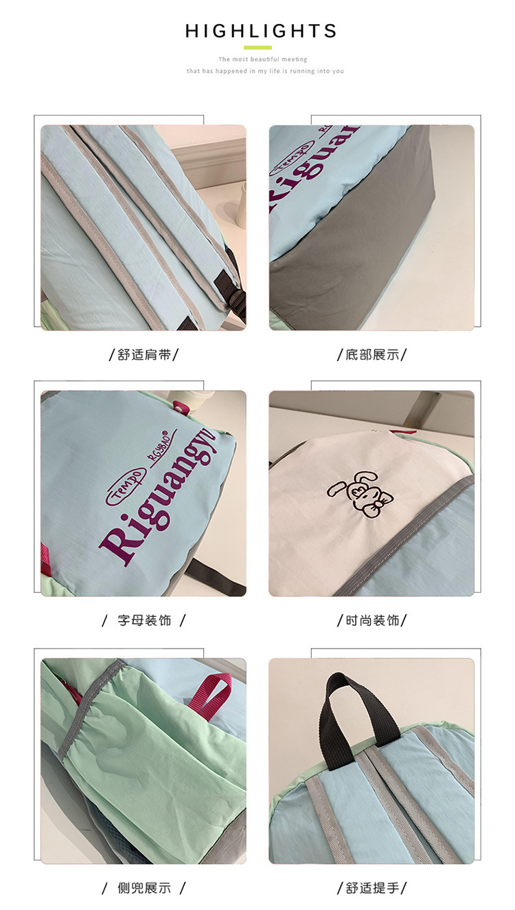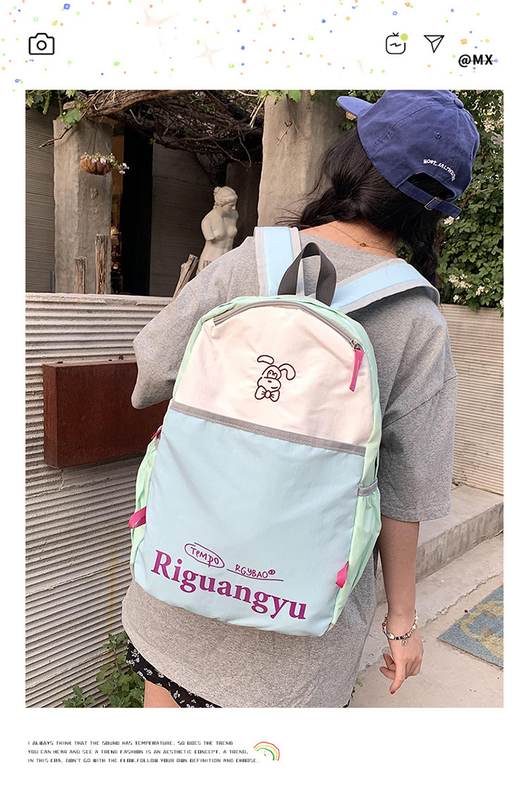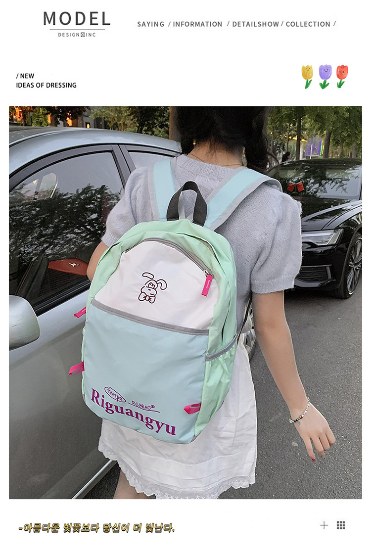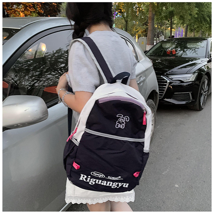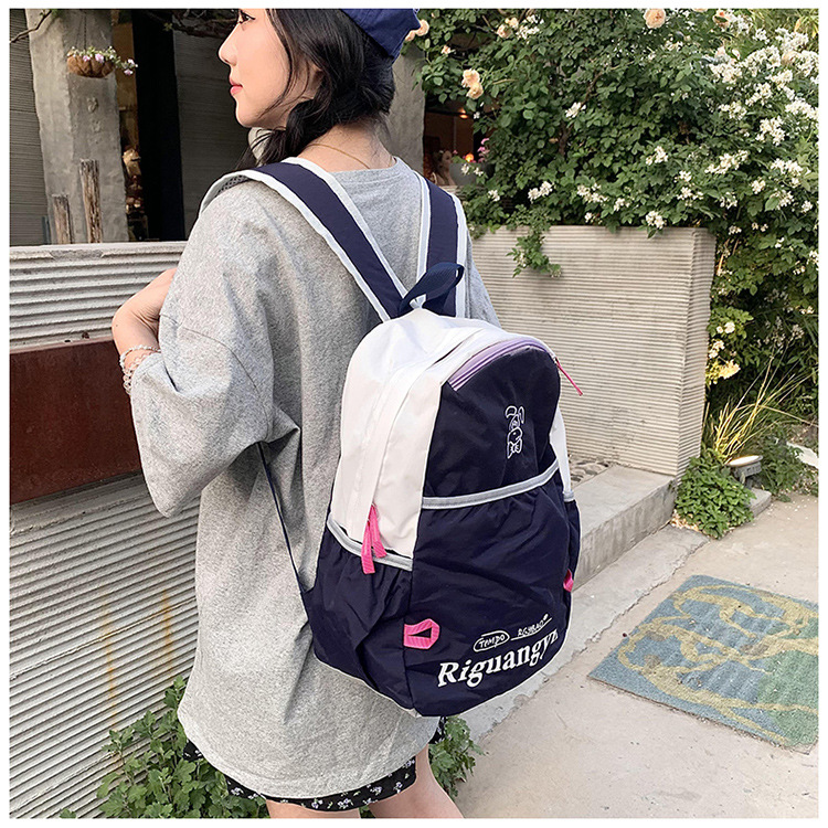 새로운 대용량 배색 레터링 학생 가방, 상큼하고 달콤하며 다용도로 활용 가능한 캐주얼 야외 여행 백팩스토어 가기