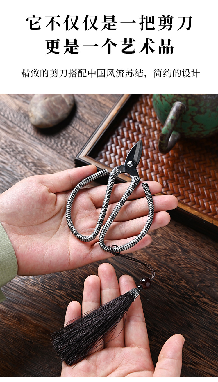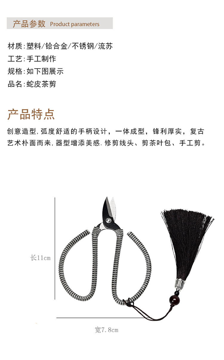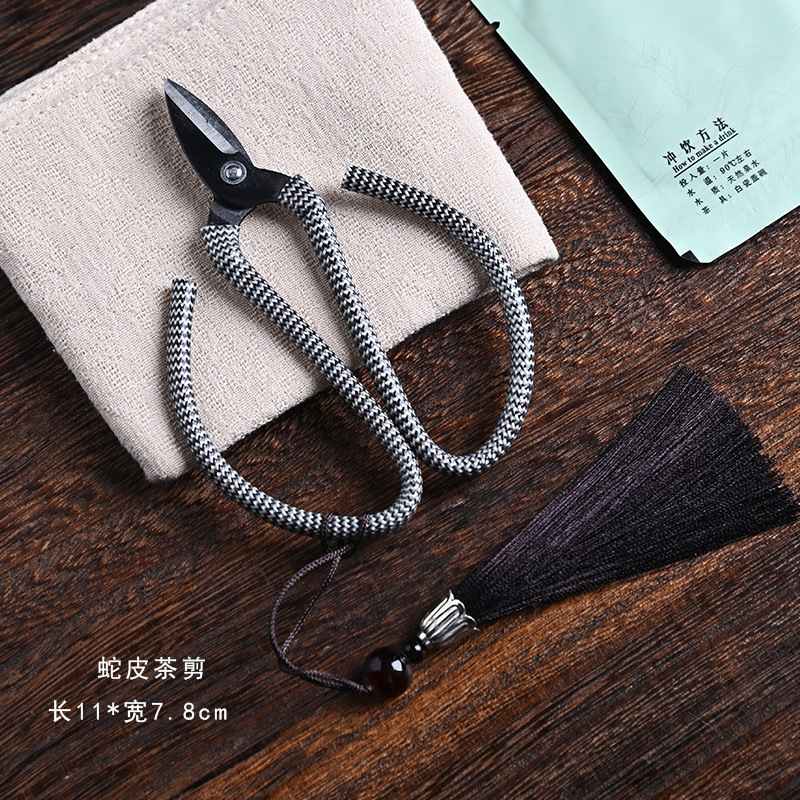 빈티지 뱀 가죽 차 가위 수제 미니 작은 가위 차 예술 차 가방 절단 Thimble 티 룸 데스크탑 장식품 도매