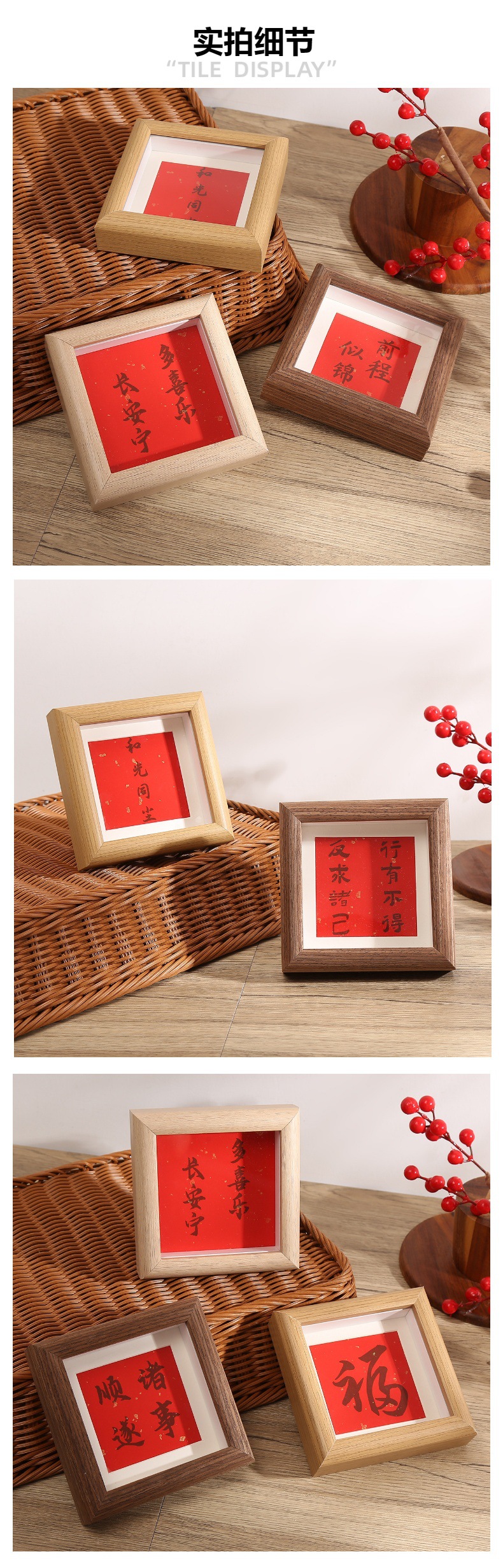 광장 4 인치 나무 중공 작은 사진 프레임 창조적 인 새로운 중국 미니 프레임 유화 스틱 창조적 인 DIY 테이블