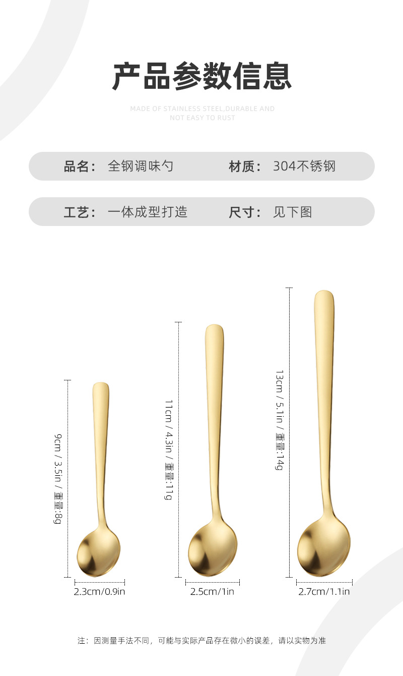 특별한 작은 304 스테인리스 양념 숟가락 소금 숟가락 황금 작은 숟가락 커피 숟가락 주방 조미료 숟가락 작은 둥근 숟가락