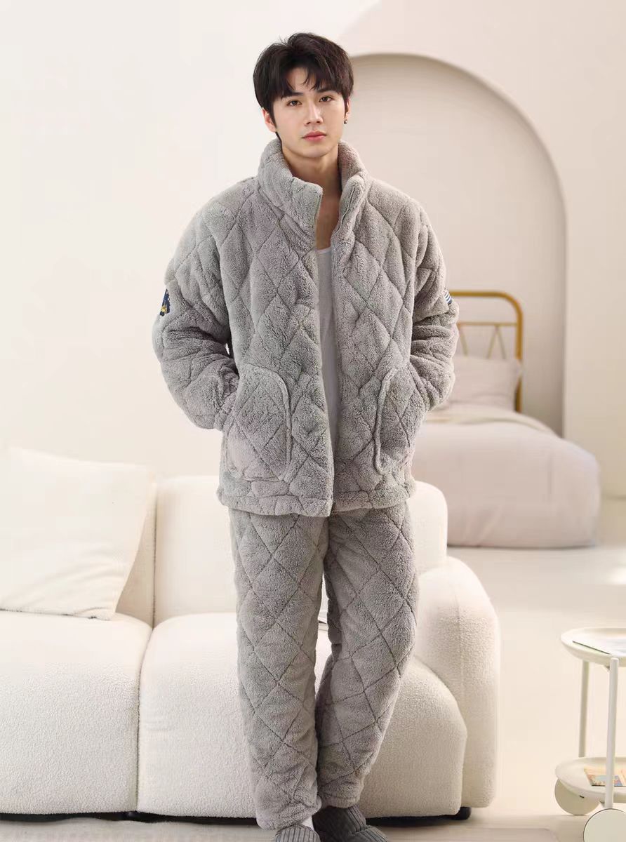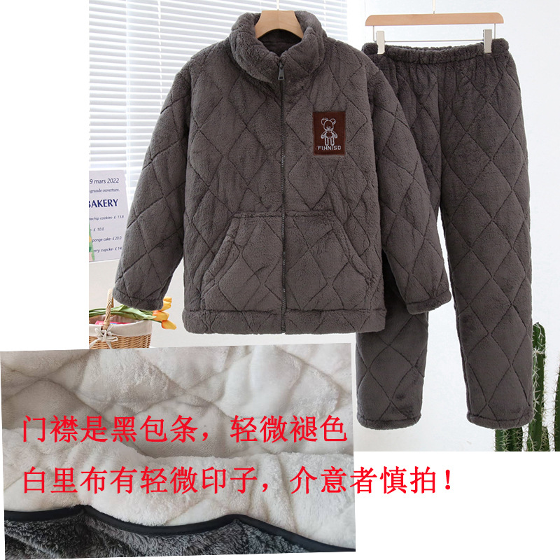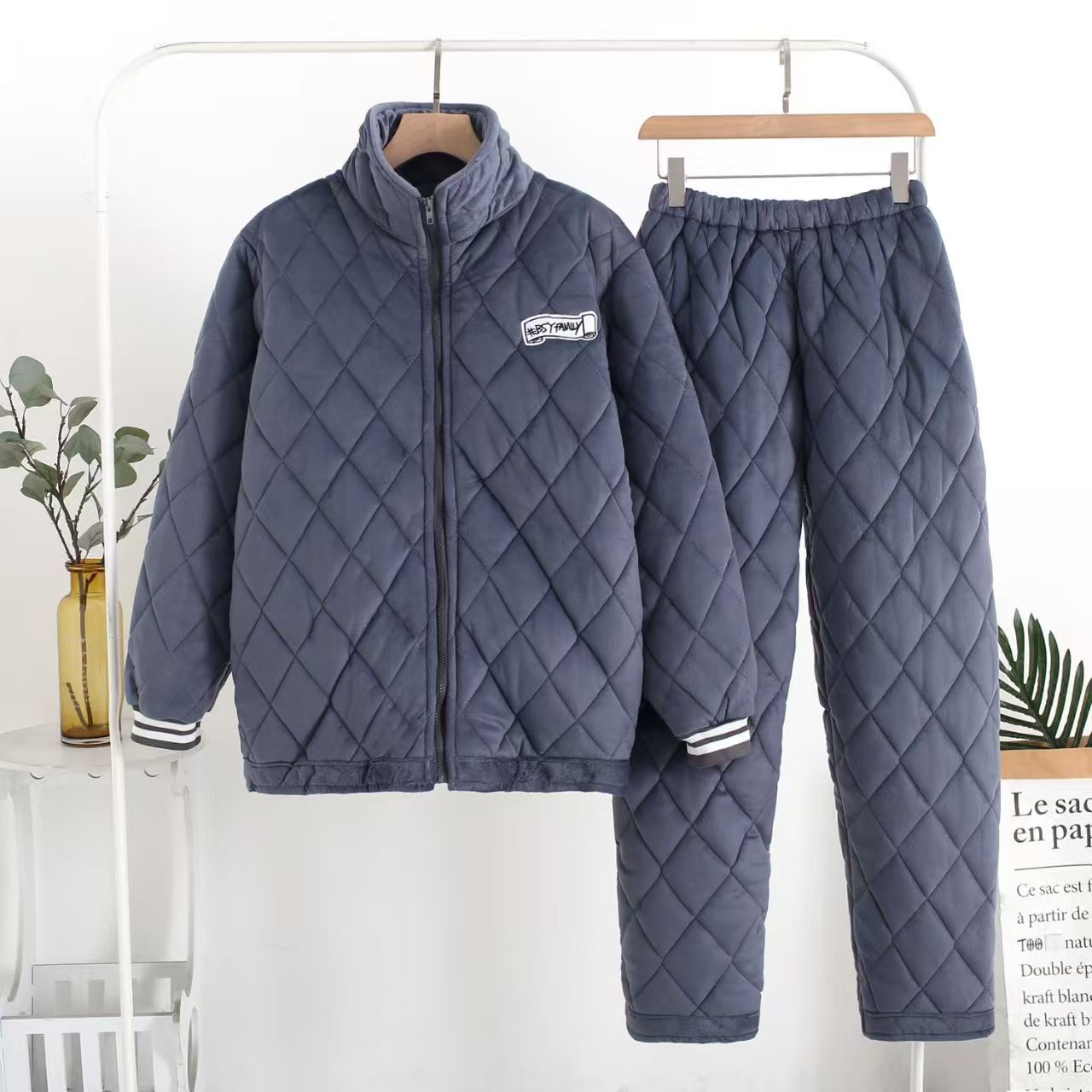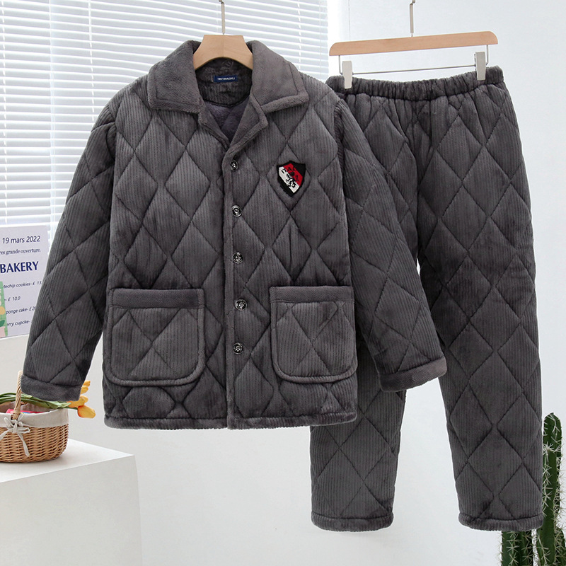남자 잠옷 3 층 퀼트 아빠의 따뜻한 두꺼운 가을과 겨울 산호 양털 느슨한 플러스 사이즈 홈 옷 세트