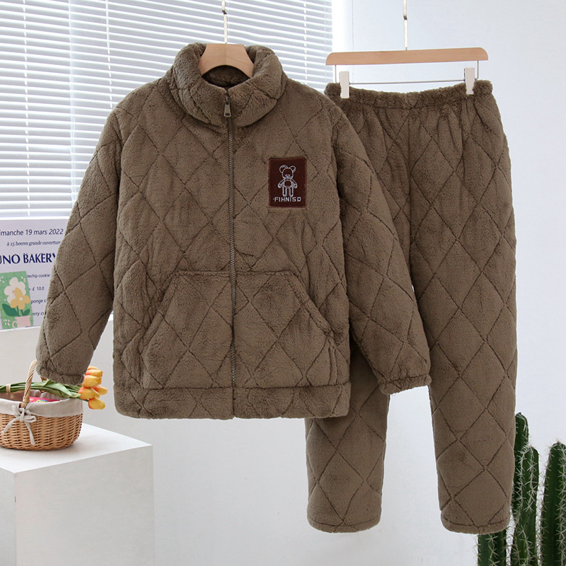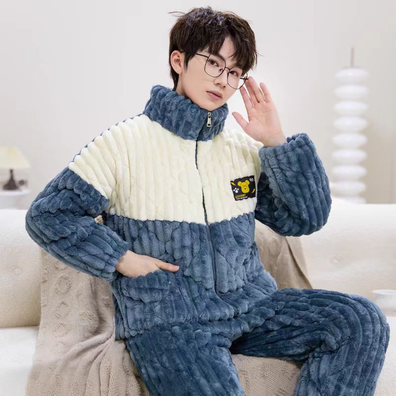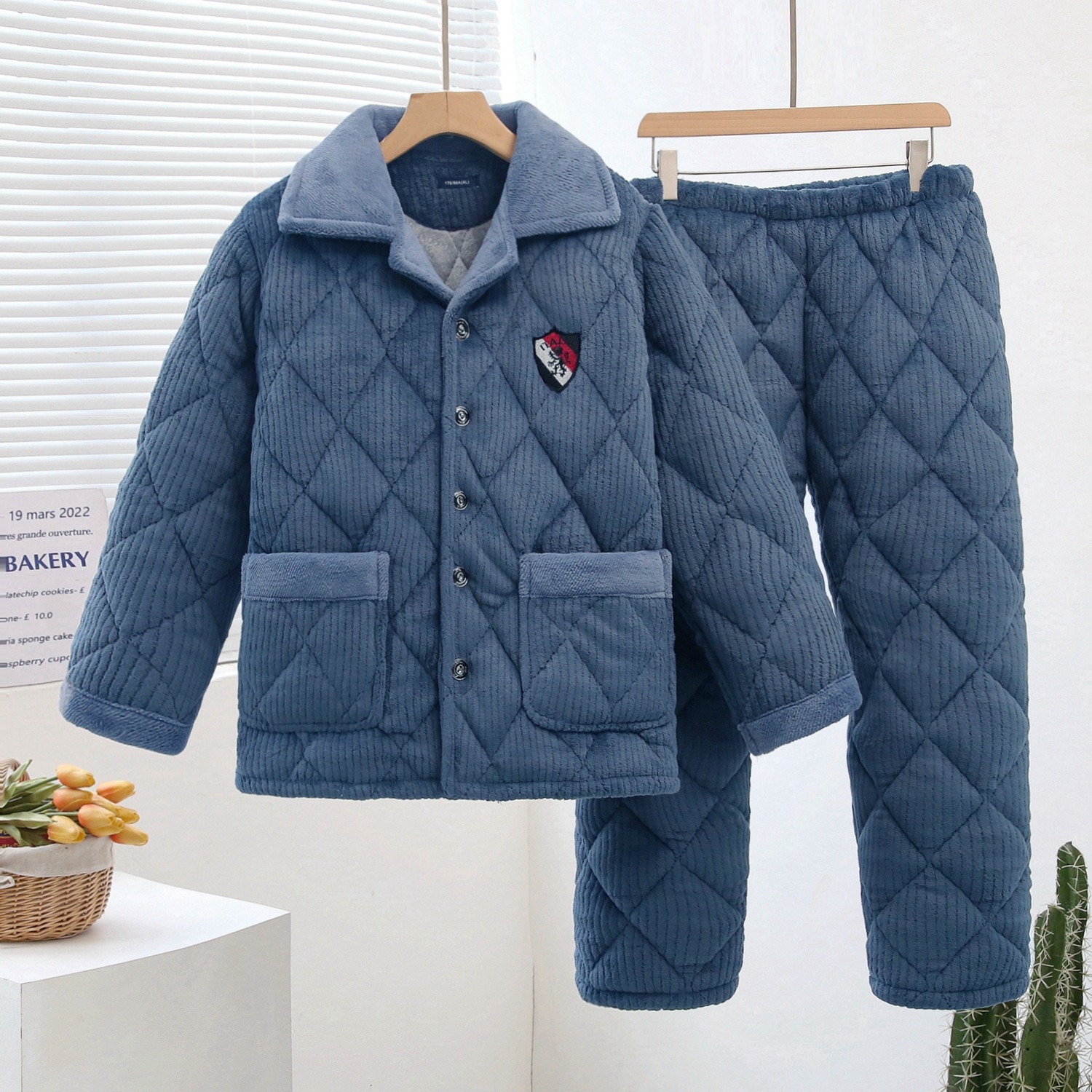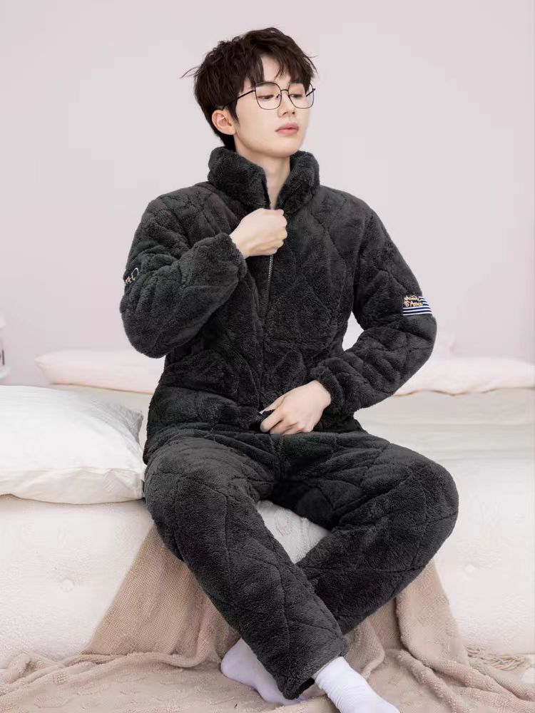 남자 잠옷 3 층 퀼트 아빠의 따뜻한 두꺼운 가을과 겨울 산호 양털 느슨한 플러스 사이즈 홈 옷 세트