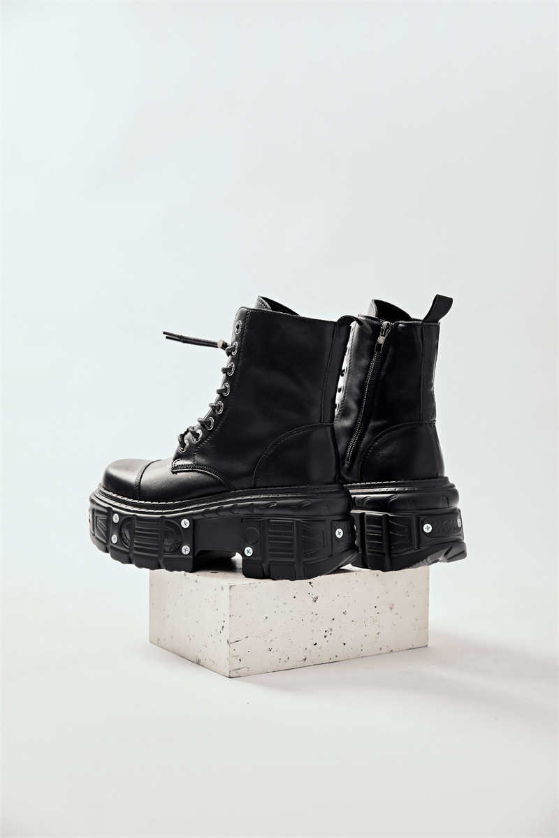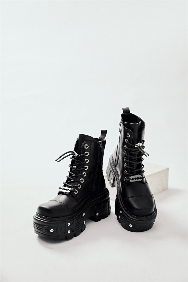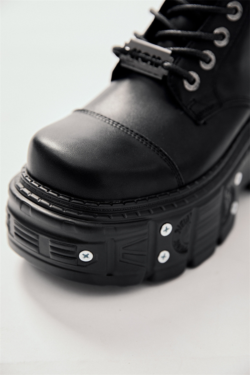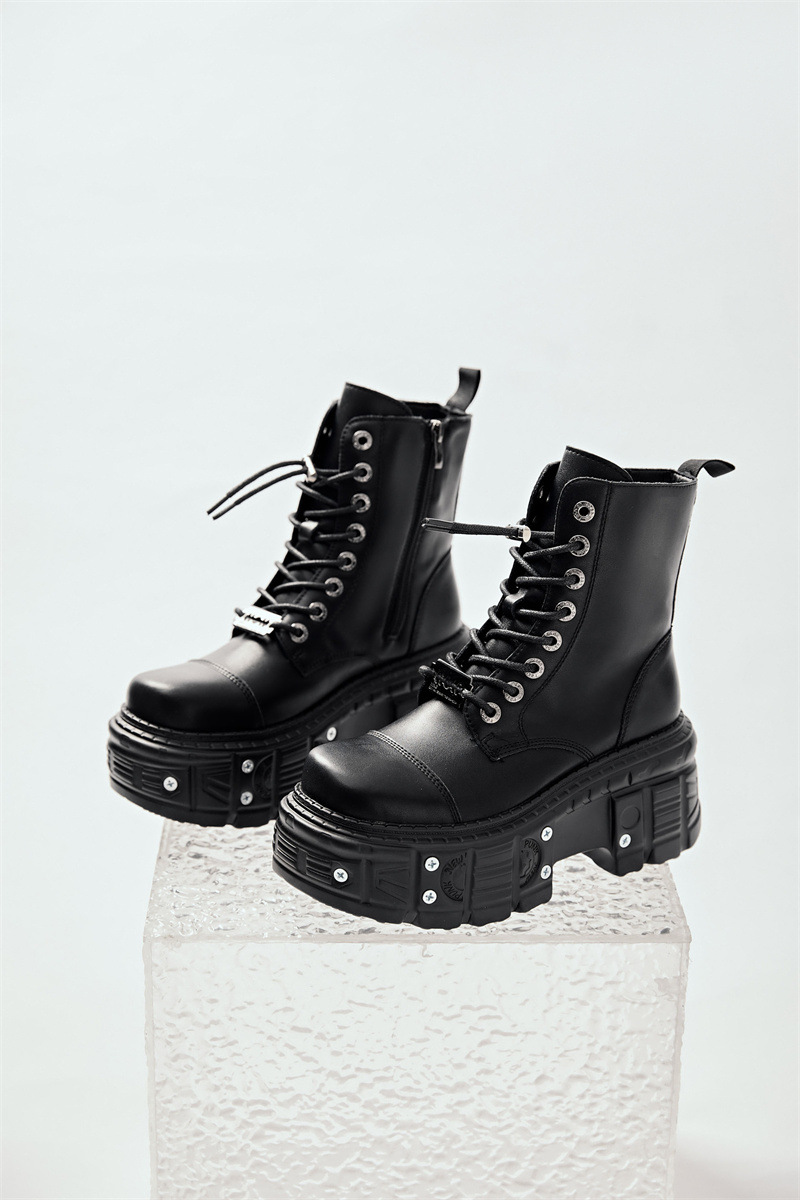 Ou Meite Dark Motorcycle, 중금속 두꺼운 밑창 크로스 보더 마틴 부츠 2024 봄 새로운 여성 펑크 가죽 신발