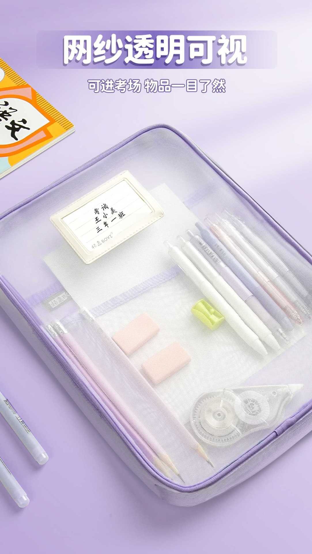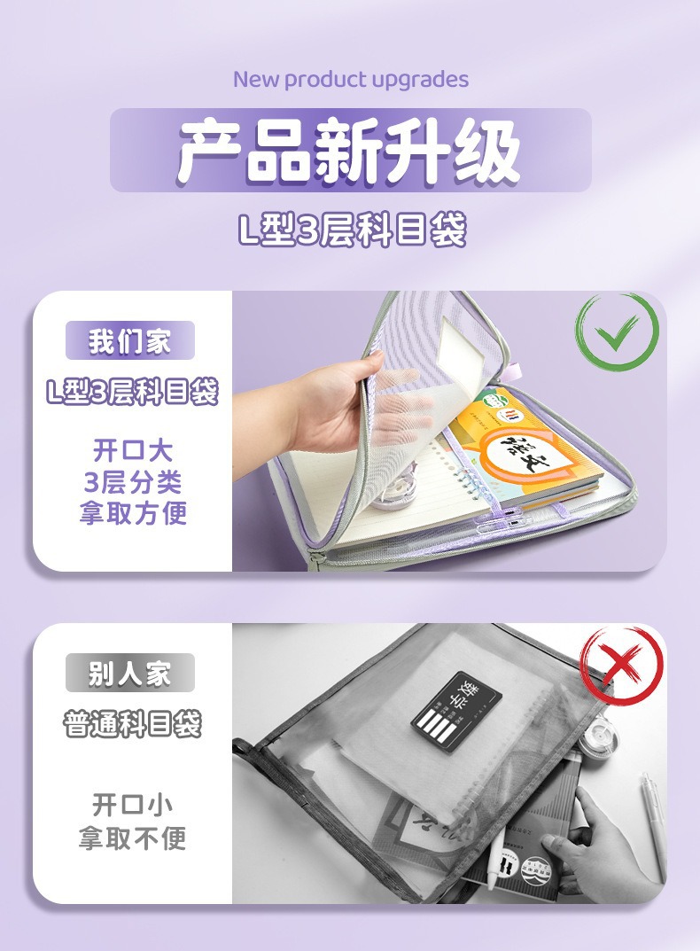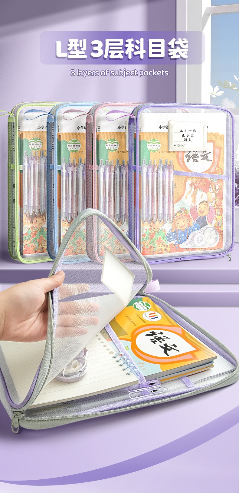 L 자형 넓어진 3 층 투명 파일 가방 메쉬 휴대용 책 가방 제목 분류 시험 종이 보관 가방 튜토리얼 가방스토어 가기