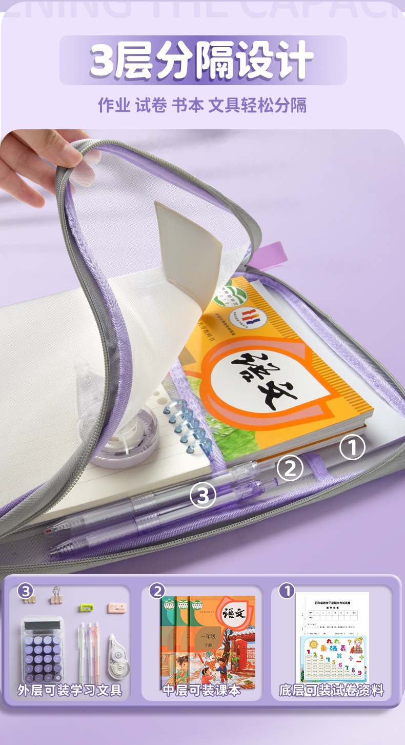 L 자형 넓어진 3 층 투명 파일 가방 메쉬 휴대용 책 가방 제목 분류 시험 종이 보관 가방 튜토리얼 가방