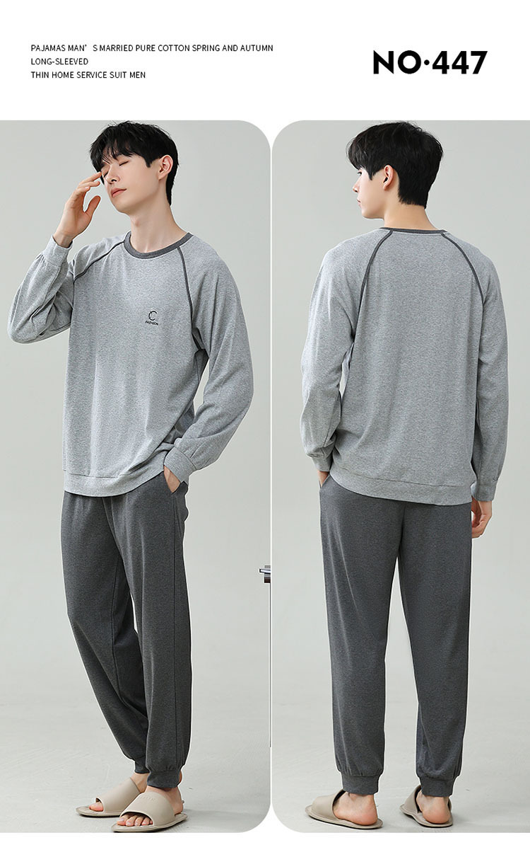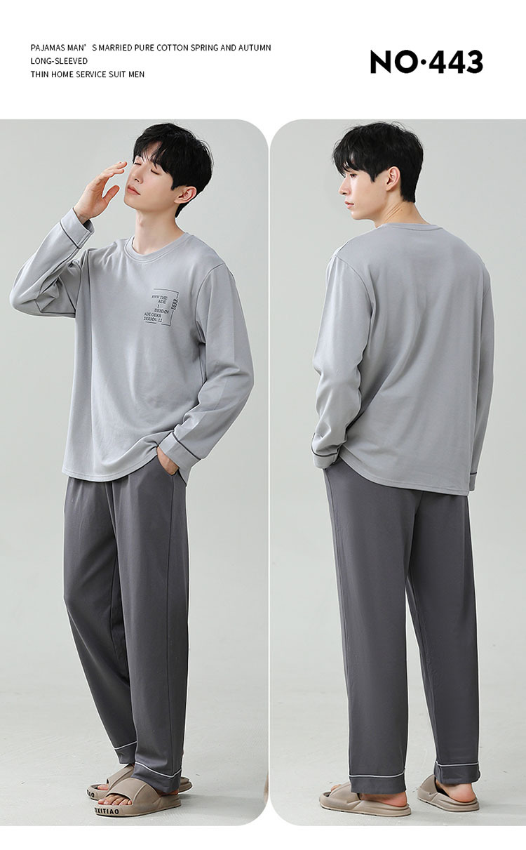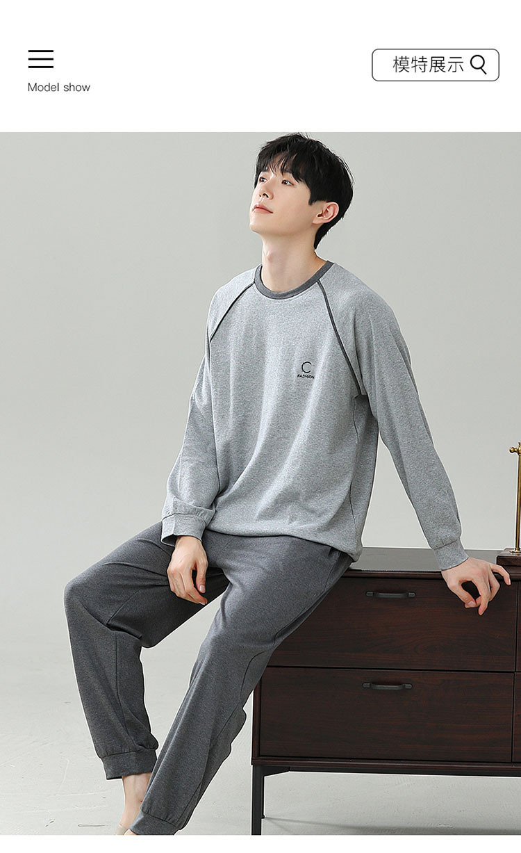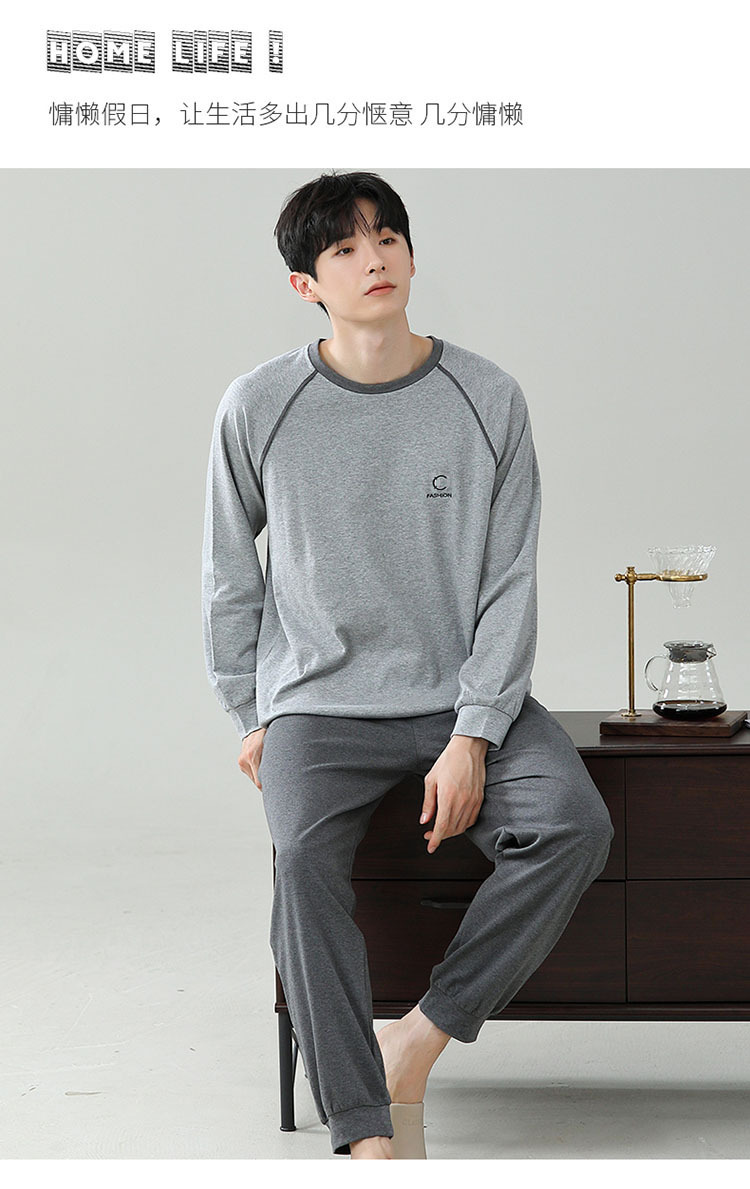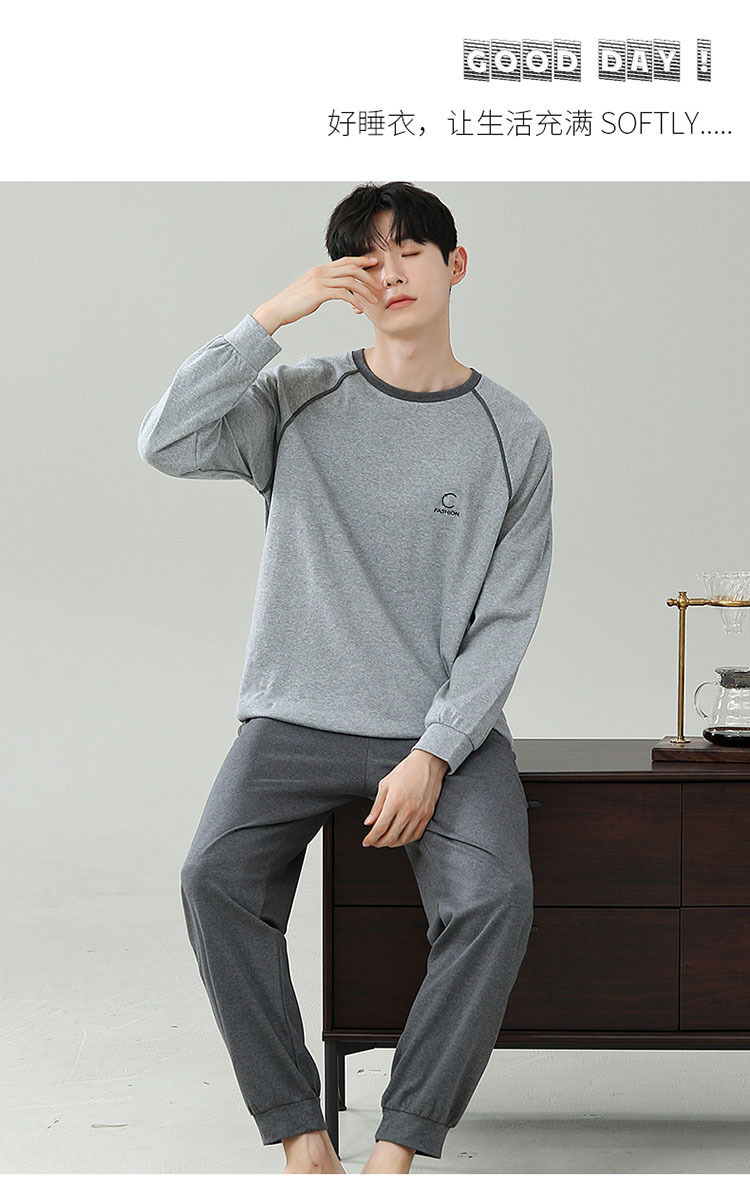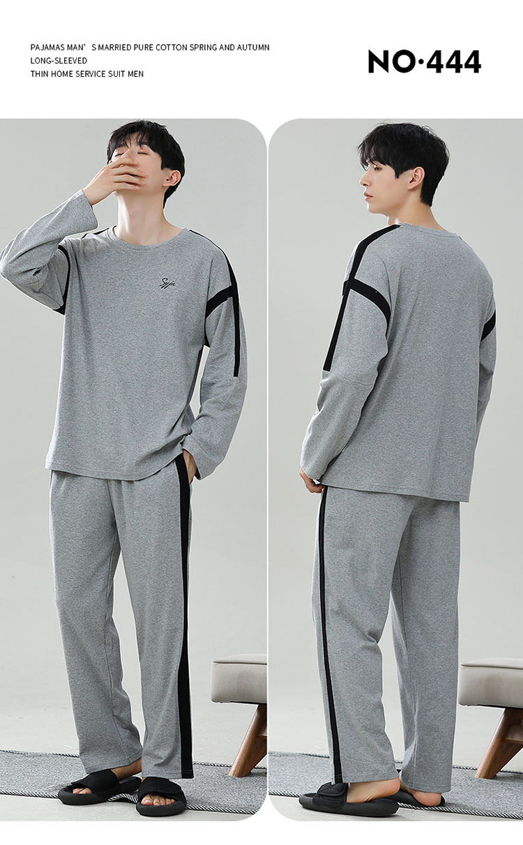 남성용 잠옷 봄 가을 신상 라운드넥 풀오버 긴팔 긴바지 세트 외출복 스포츠 스타일 홈웨어 투피스 세트스토어 가기