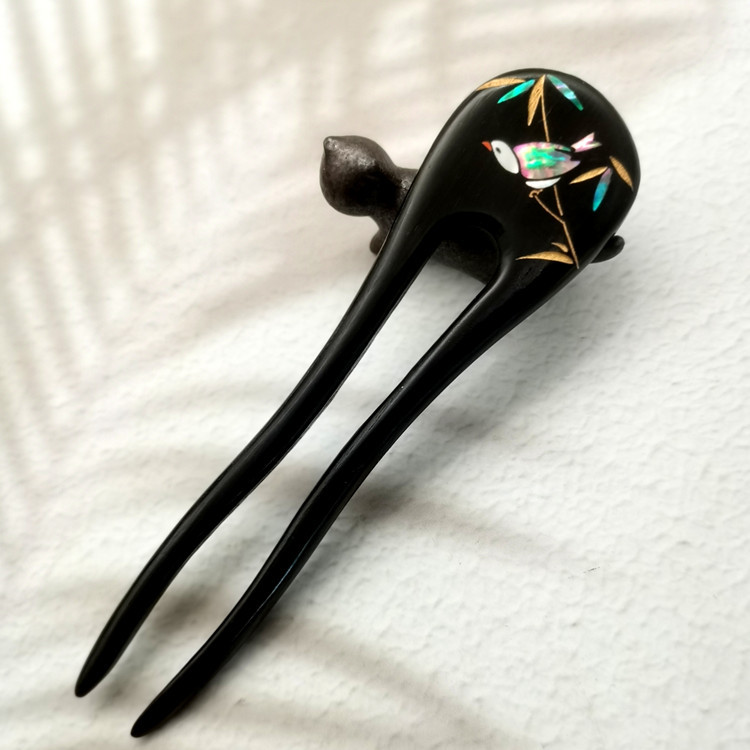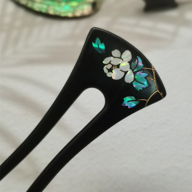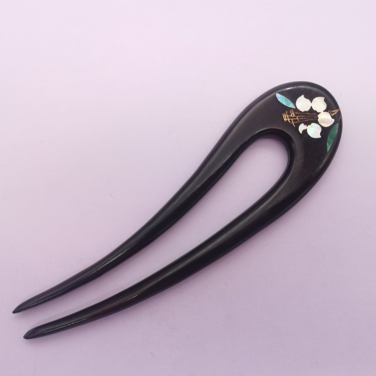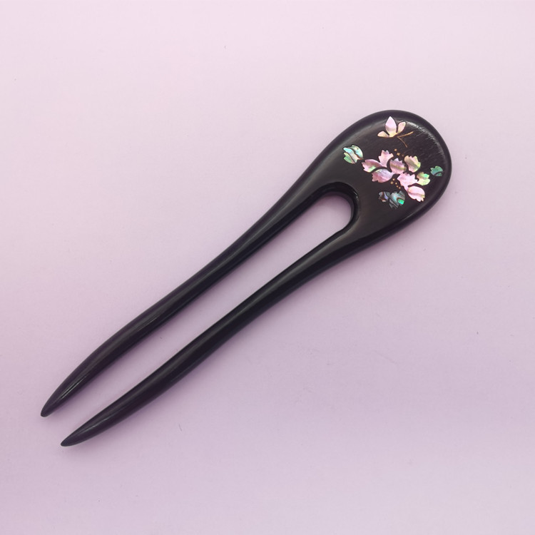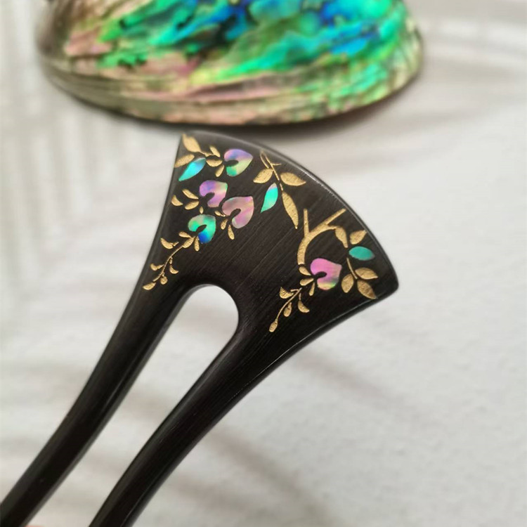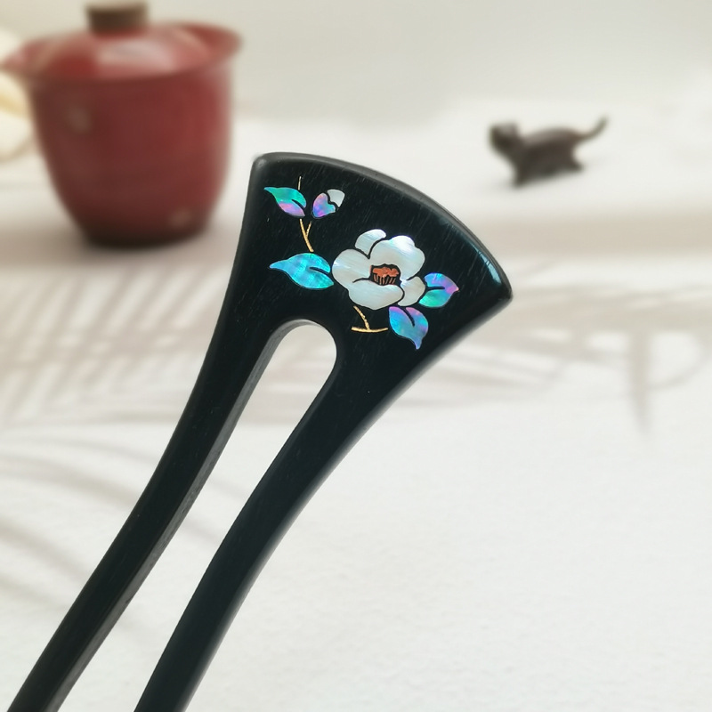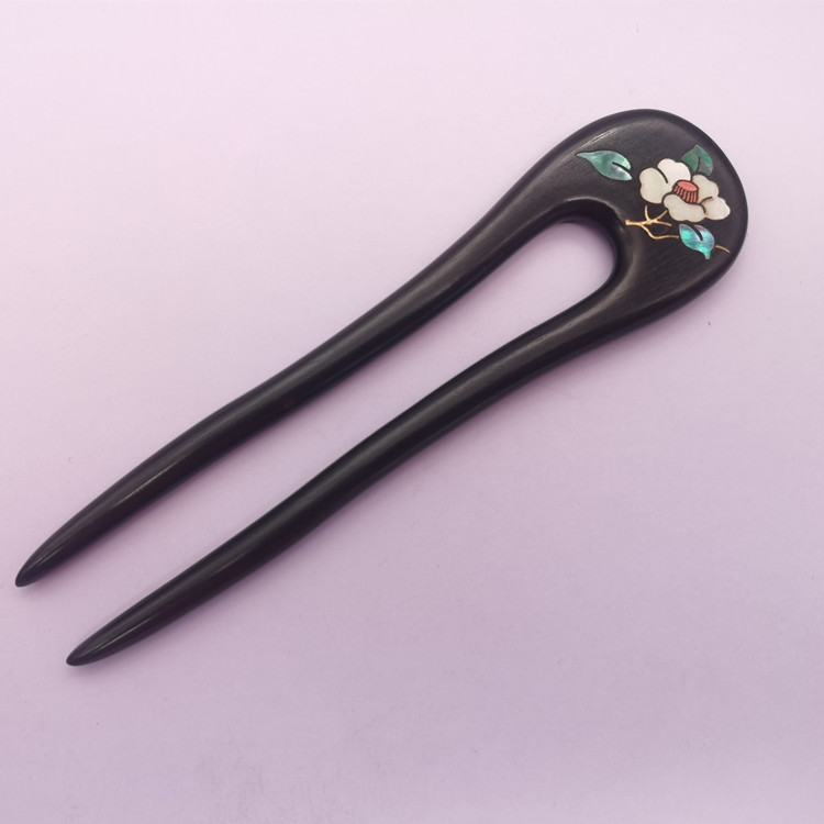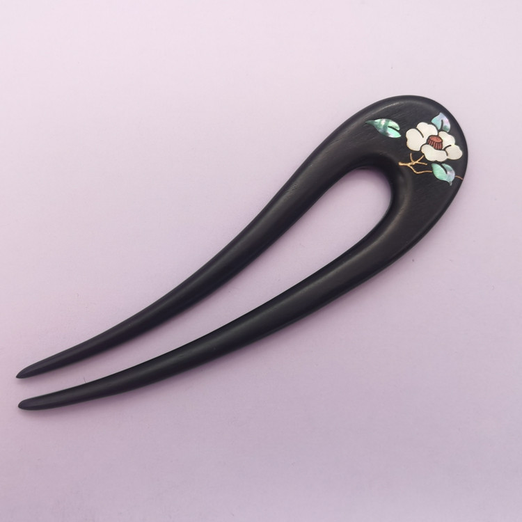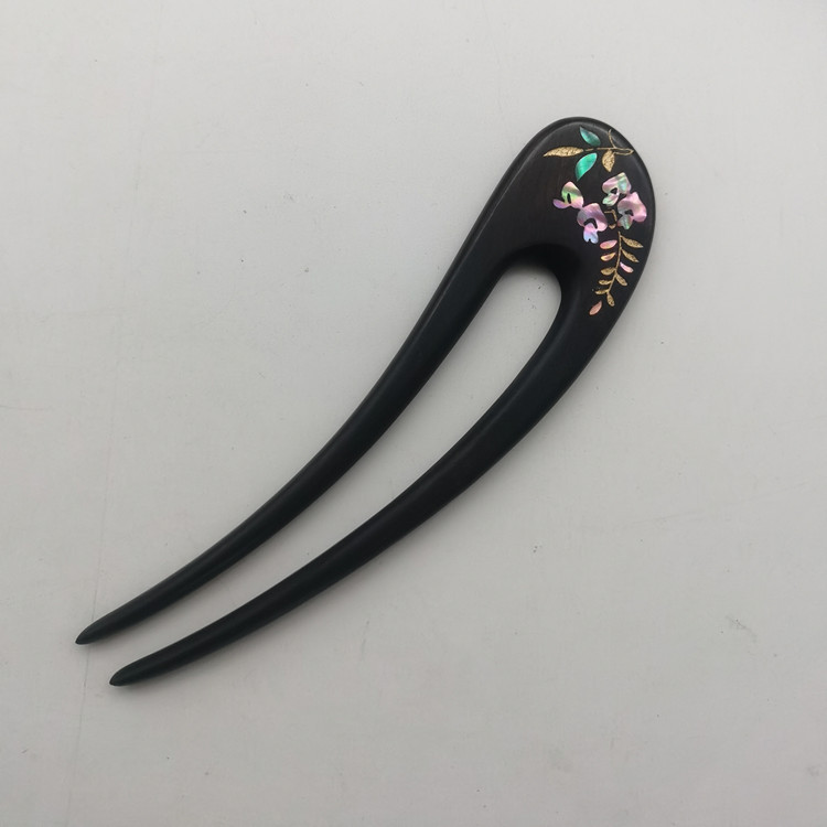 무형문화유산 문화창의품 중국식 자주색 백단목 U자형 자개 장식 고대풍 수공예 래커 페인팅 머리핀 여성용