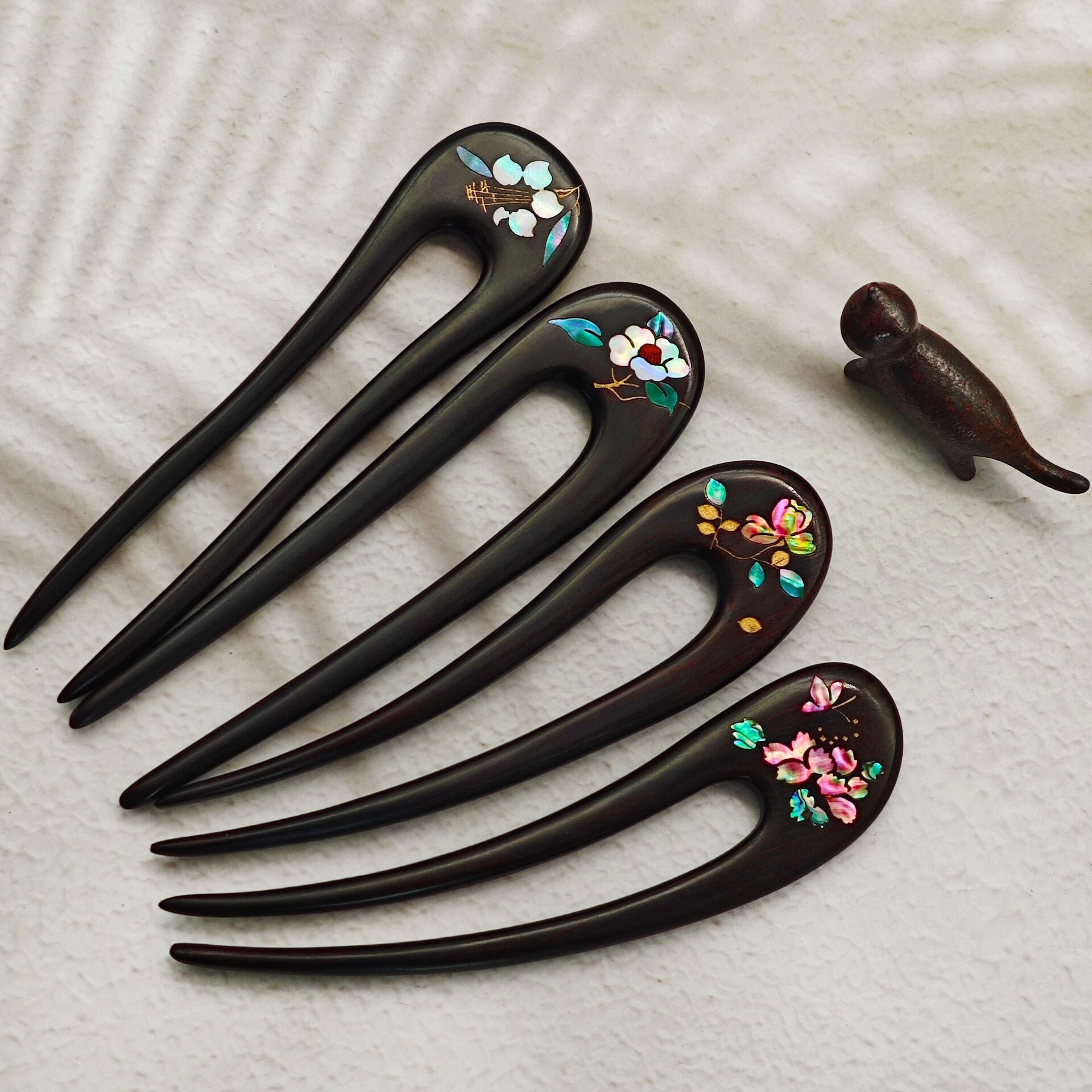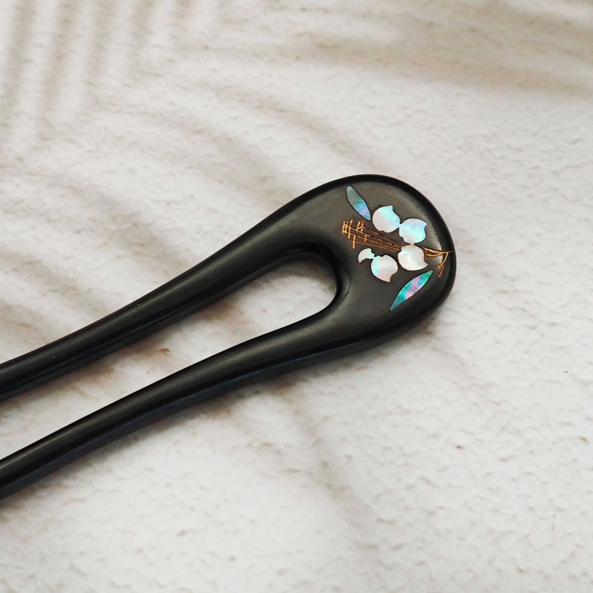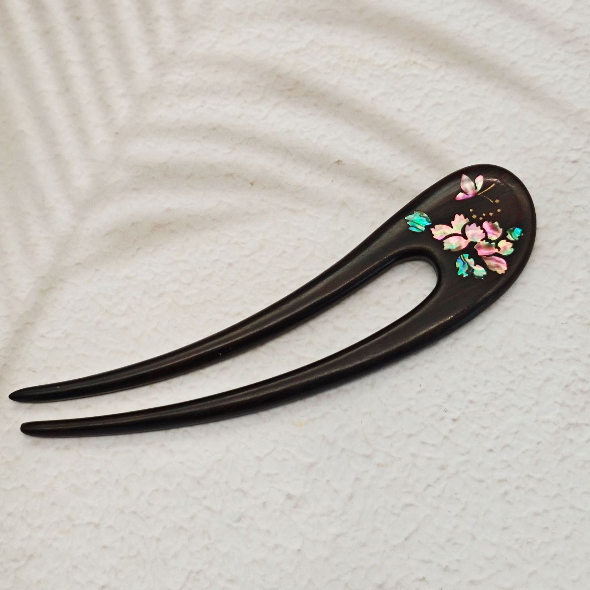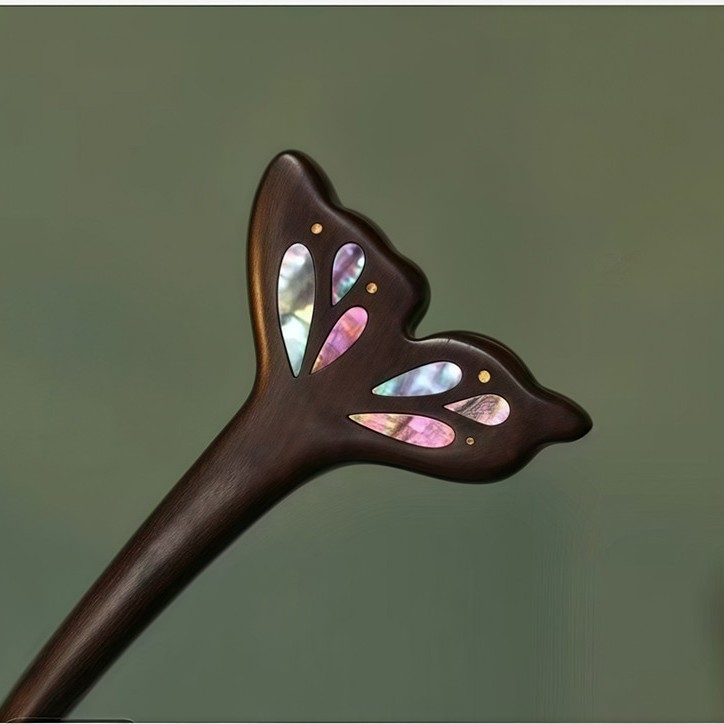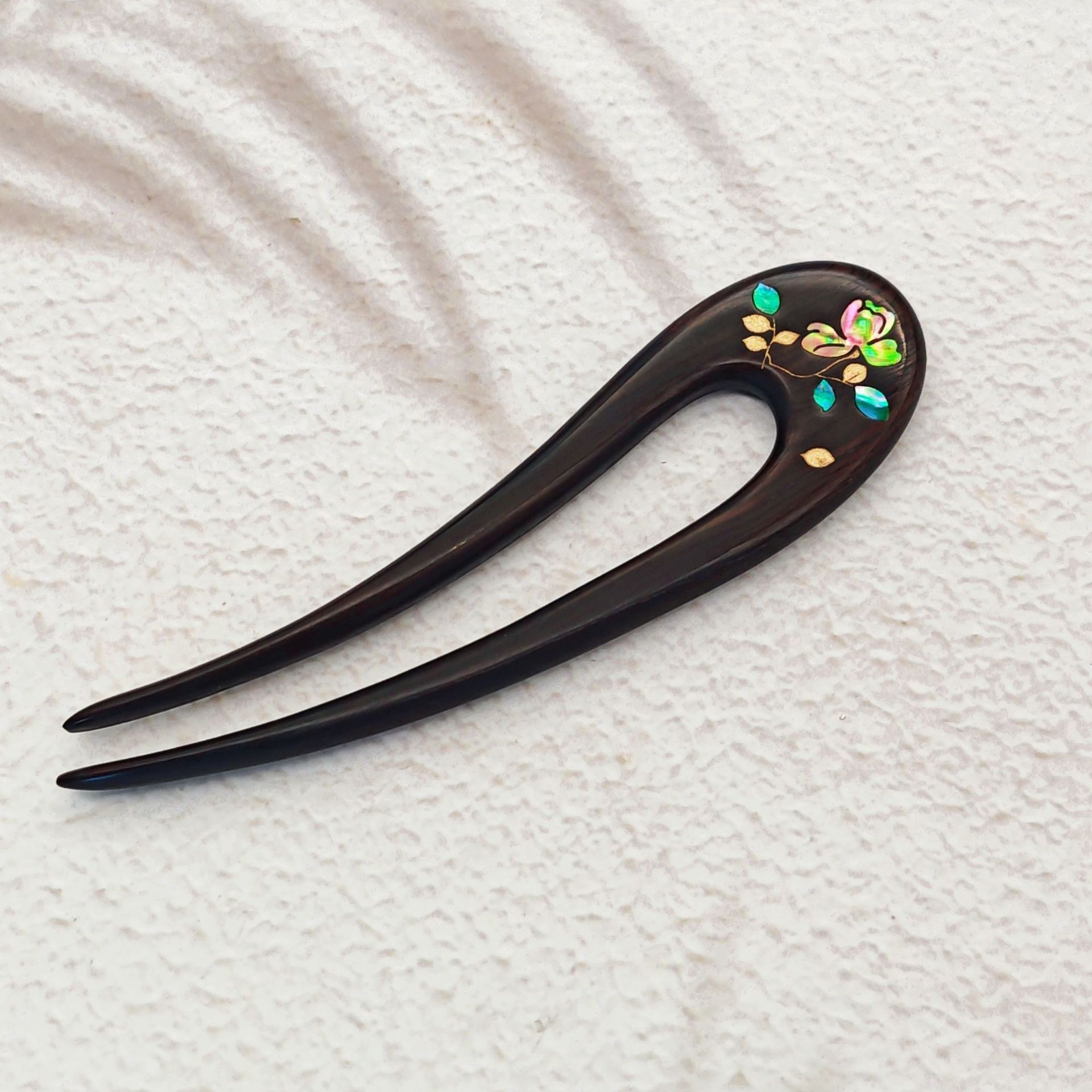 무형문화유산 문화창의품 중국식 자주색 백단목 U자형 자개 장식 고대풍 수공예 래커 페인팅 머리핀 여성용