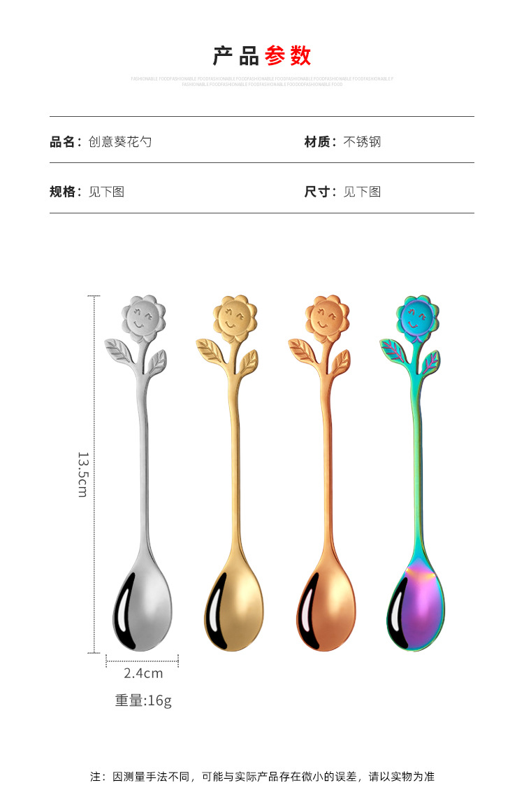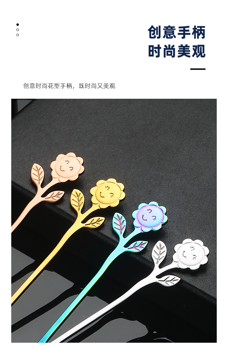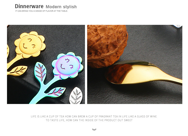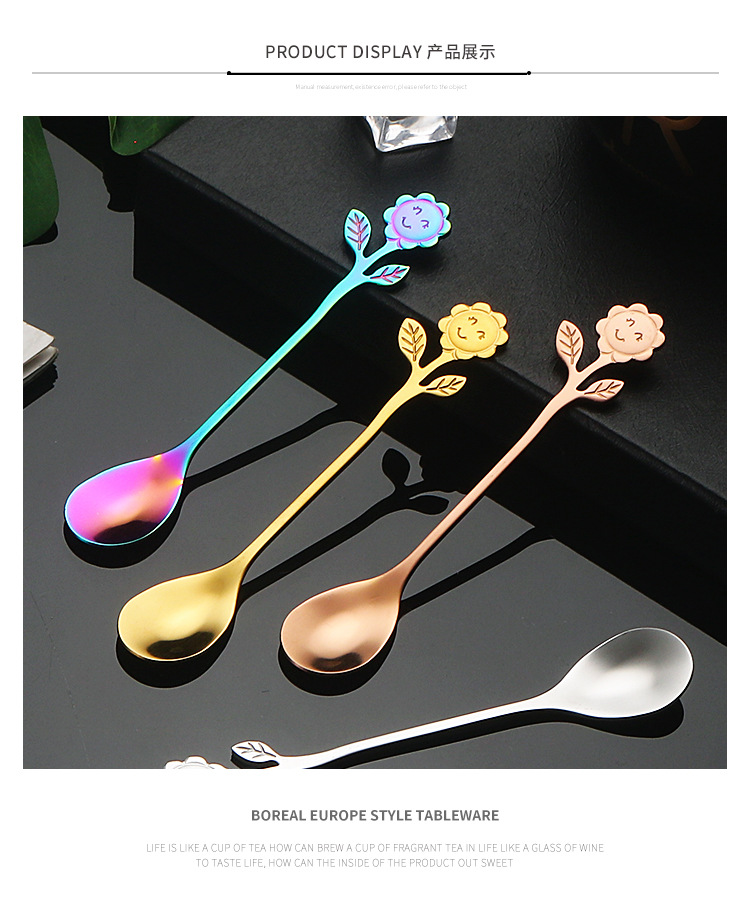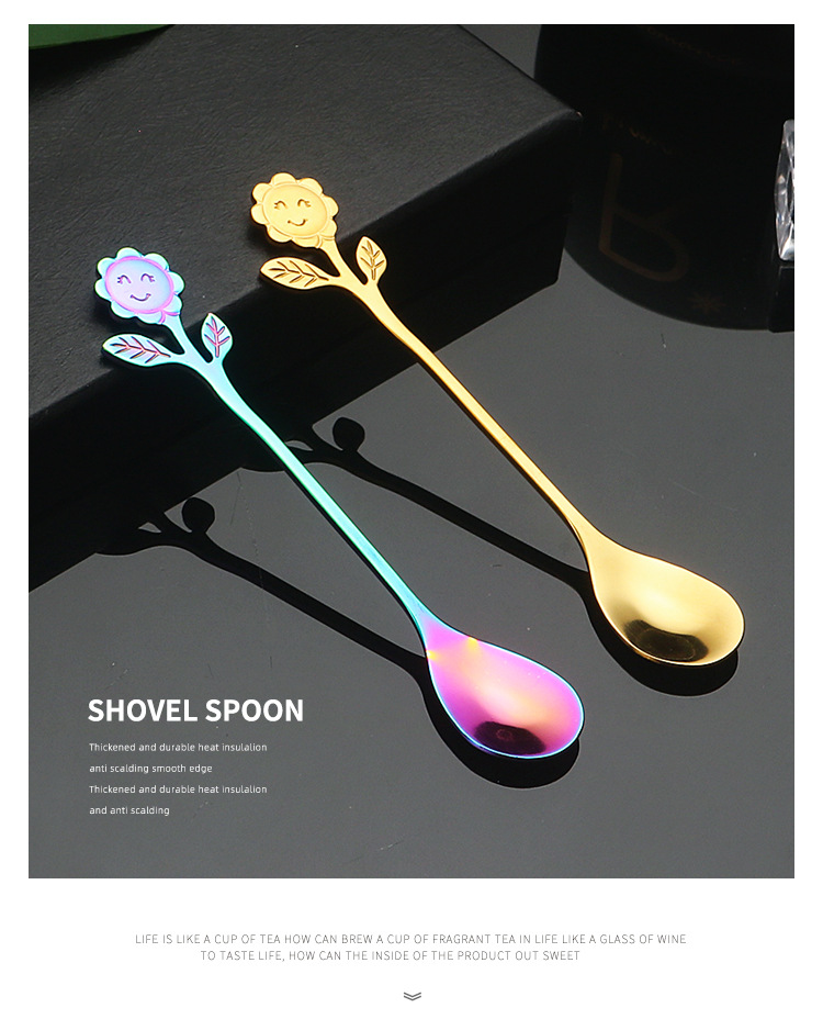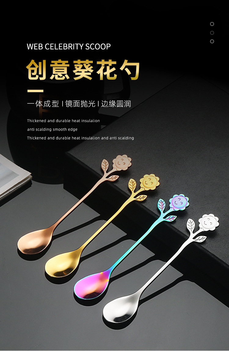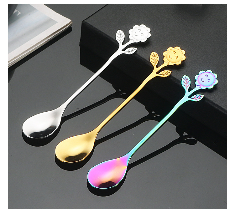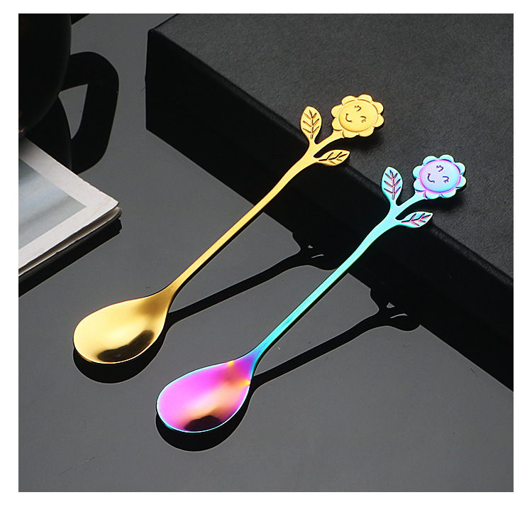 스테인리스 스틸 스푼, 인터넷 인기 웃는 얼굴 스푼, 믹싱 스푼, 해바라기 꽃 커피 스푼, 유럽풍 황금색 커피 스푼