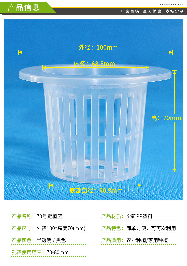 No.70 바구니 높이 70 심기 컵 블루 토일리스 문화 플라스틱 수경 수경 식물 심기 바구니 컵 둥근 뿌리 고정 장치스토어 가기