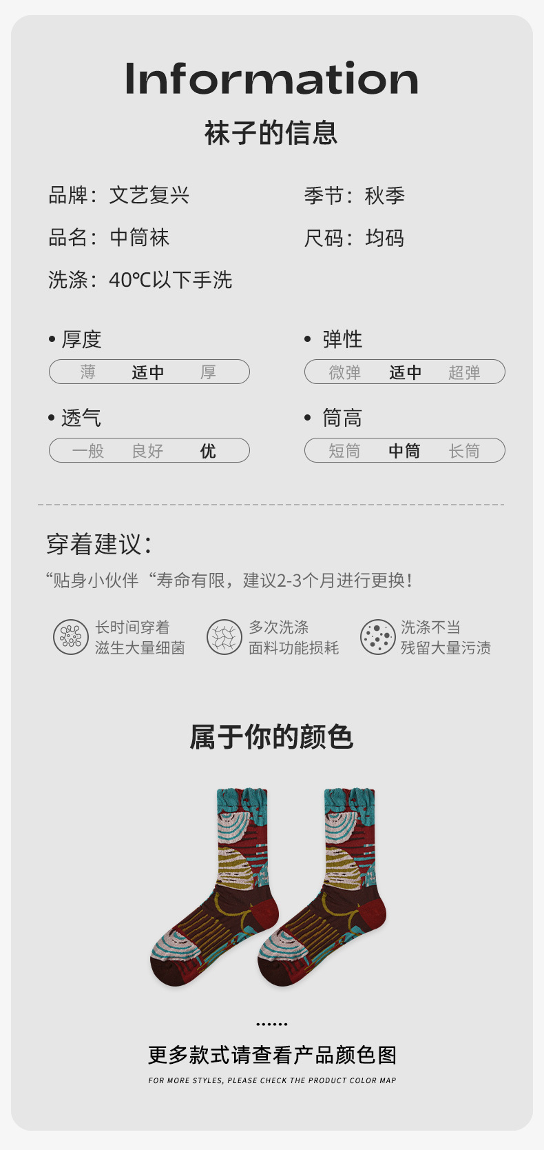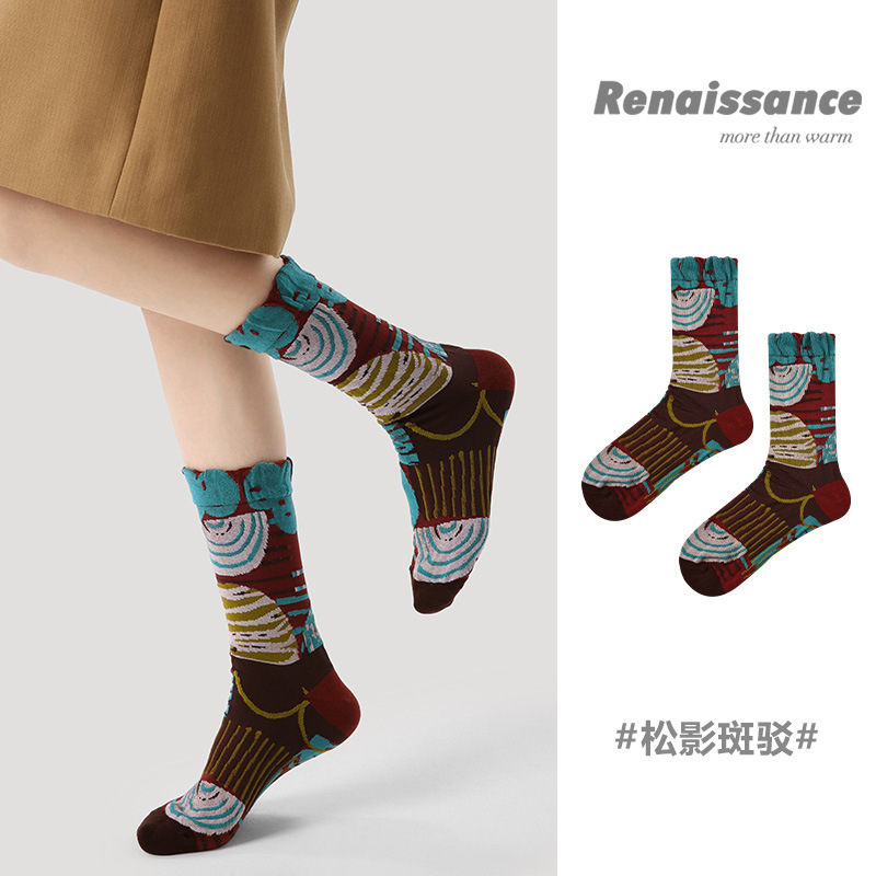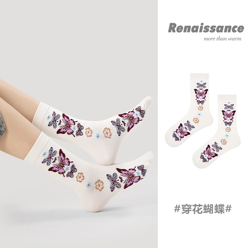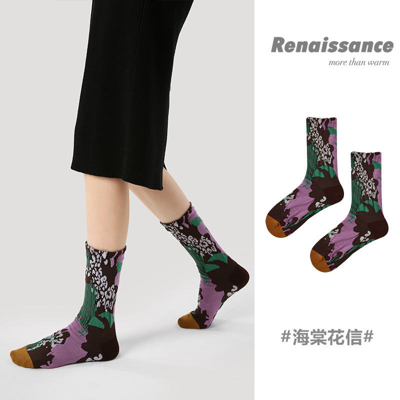 여성용 르네상스 양말 트렌디 한 봄과 가을 틈새 디자인 복고풍 궁전 스타일 스타킹스토어 가기